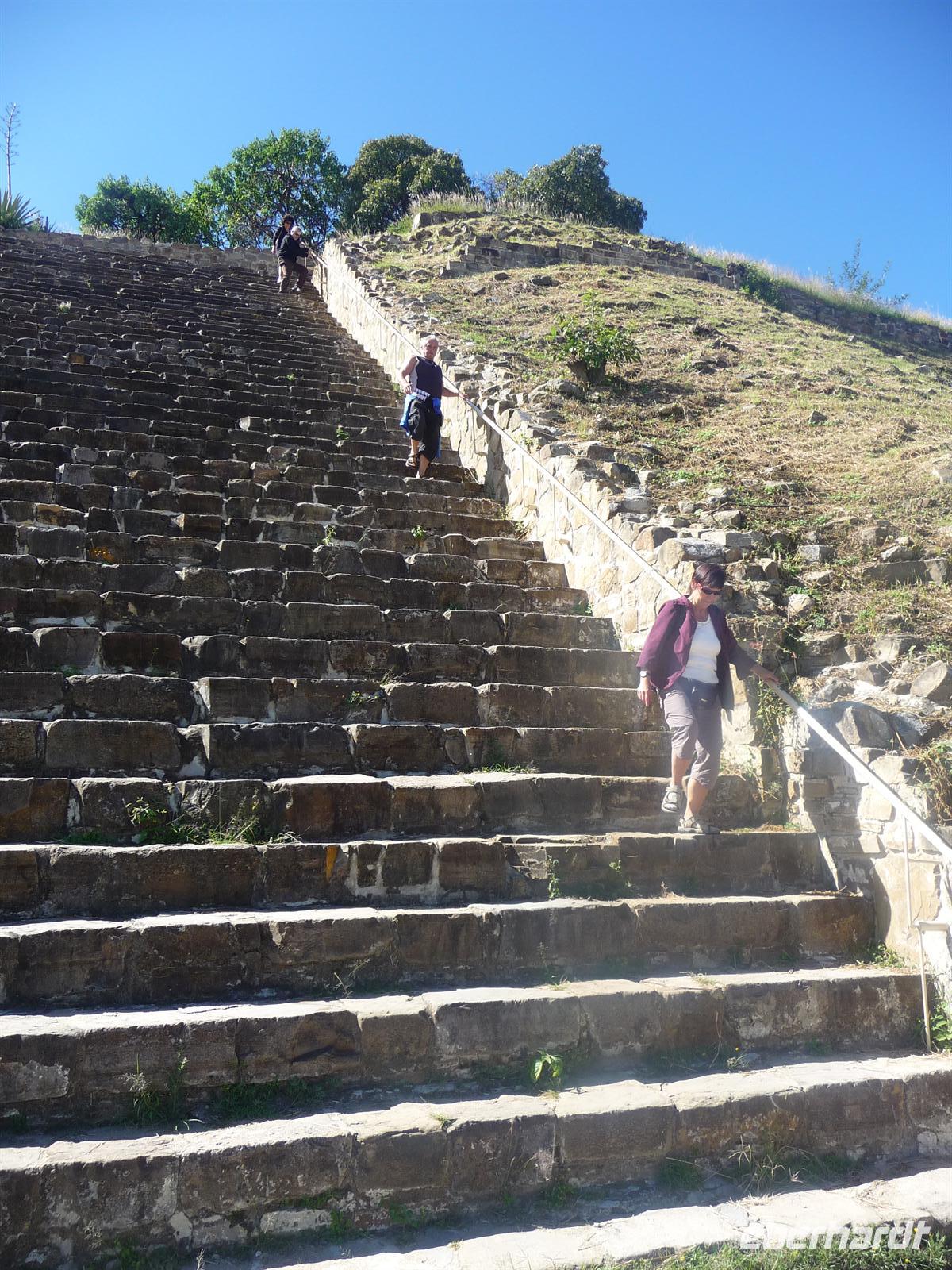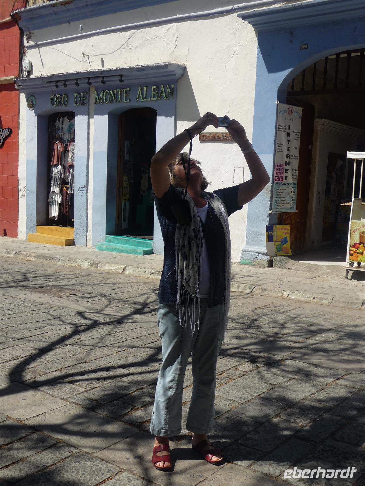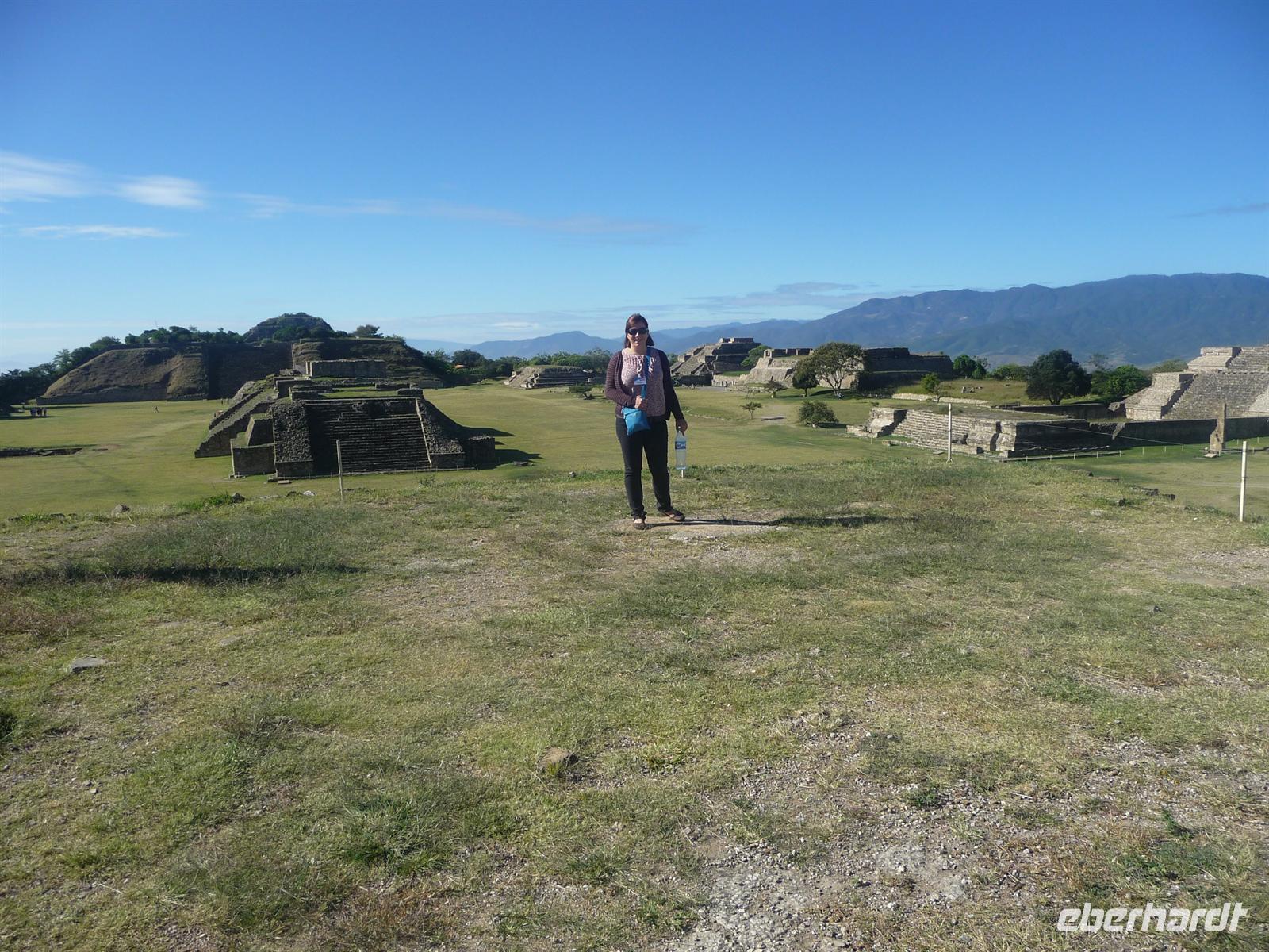 Heute Morgen waren alle schön ausgeschlafen und fit beim Frühstück. Und das Schöne war, wir sollten noch eine Nacht in dem Hotel bleiben und so konnten wir unsere Koffer im Hotel lassen. Es ging los zur Ausgrabungsstätte Monte Alban, gleich außerhalb von Oaxaca. Wir alle haben nicht so etwas erwartet! Auf einem Berg fanden wir eine gigantisch große und richtig beeindruckende alte Ruinenanlage. Es war wirklich toll: Diese überdimensional große Anlage, hoch oben, mit alten Pyramiden in einer tollen Landschaft - wir waren alle begeistert. Einige kletterten noch auf die Pyramide und genossen den Blick von oben, aber uns allen hat es so gut gefallen - traumhaft. Und dann fuhren wir nach Oaxaca zurück, nur 15km und besuchten die Stadt.