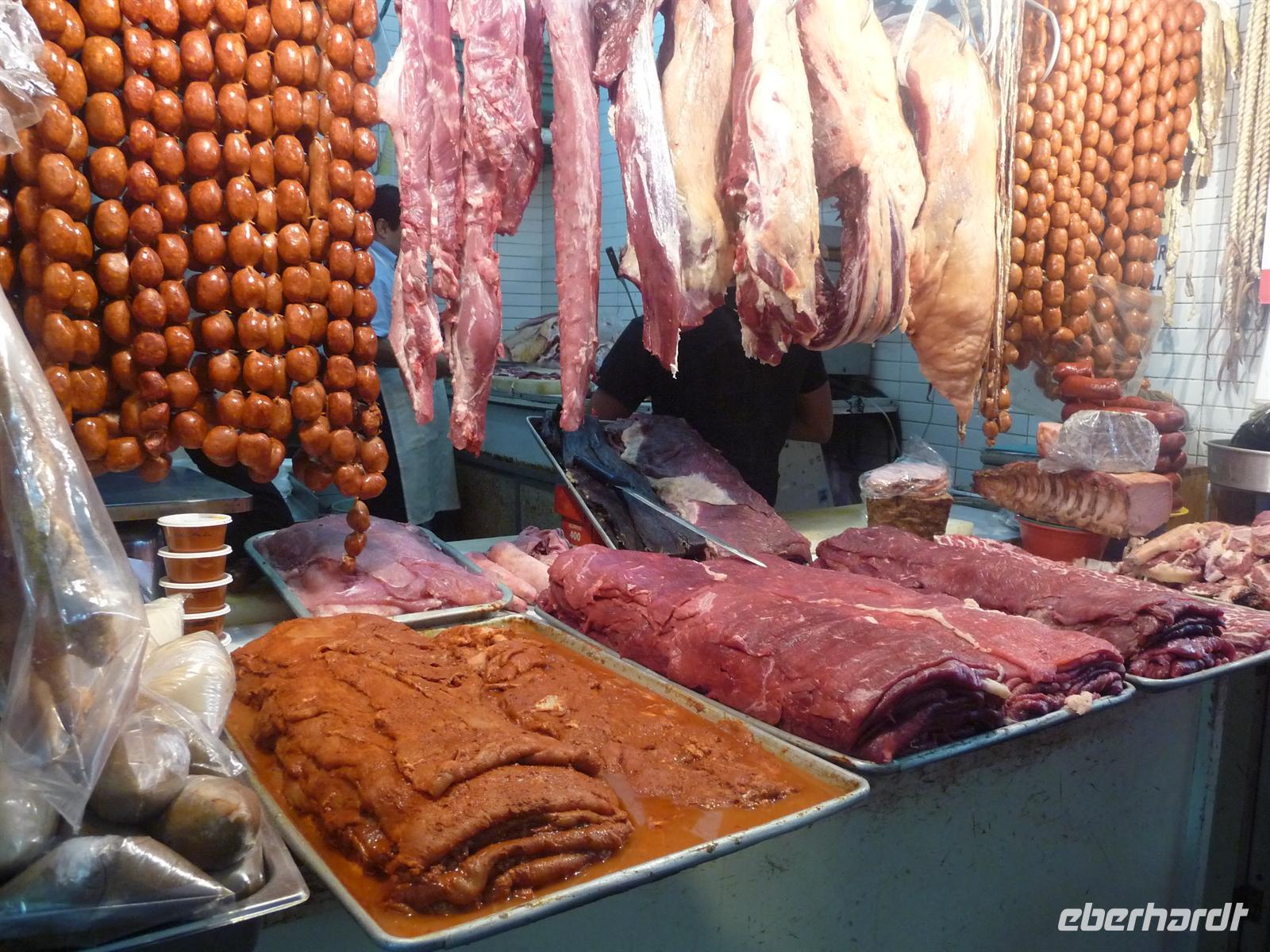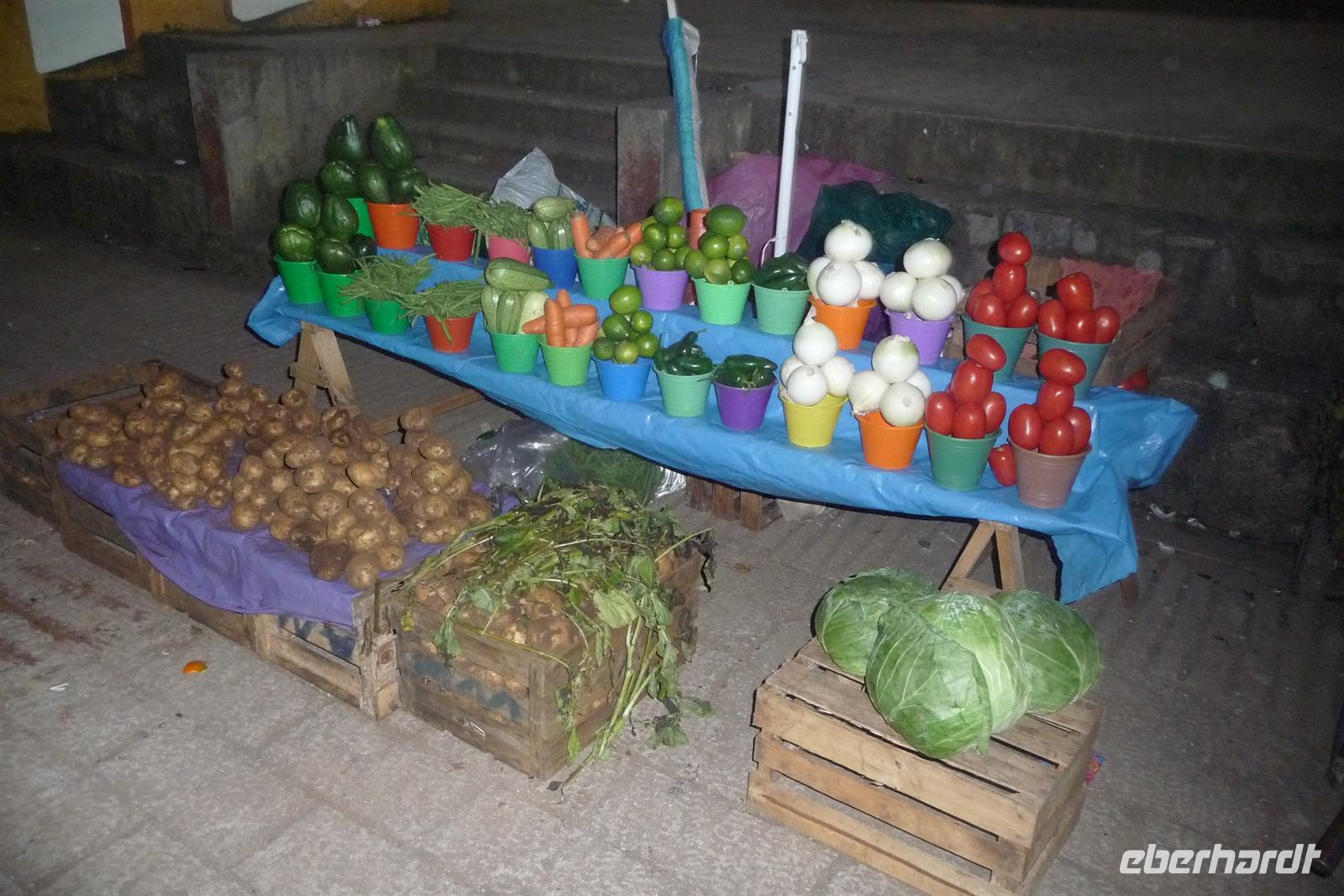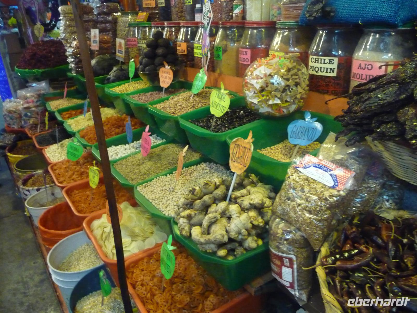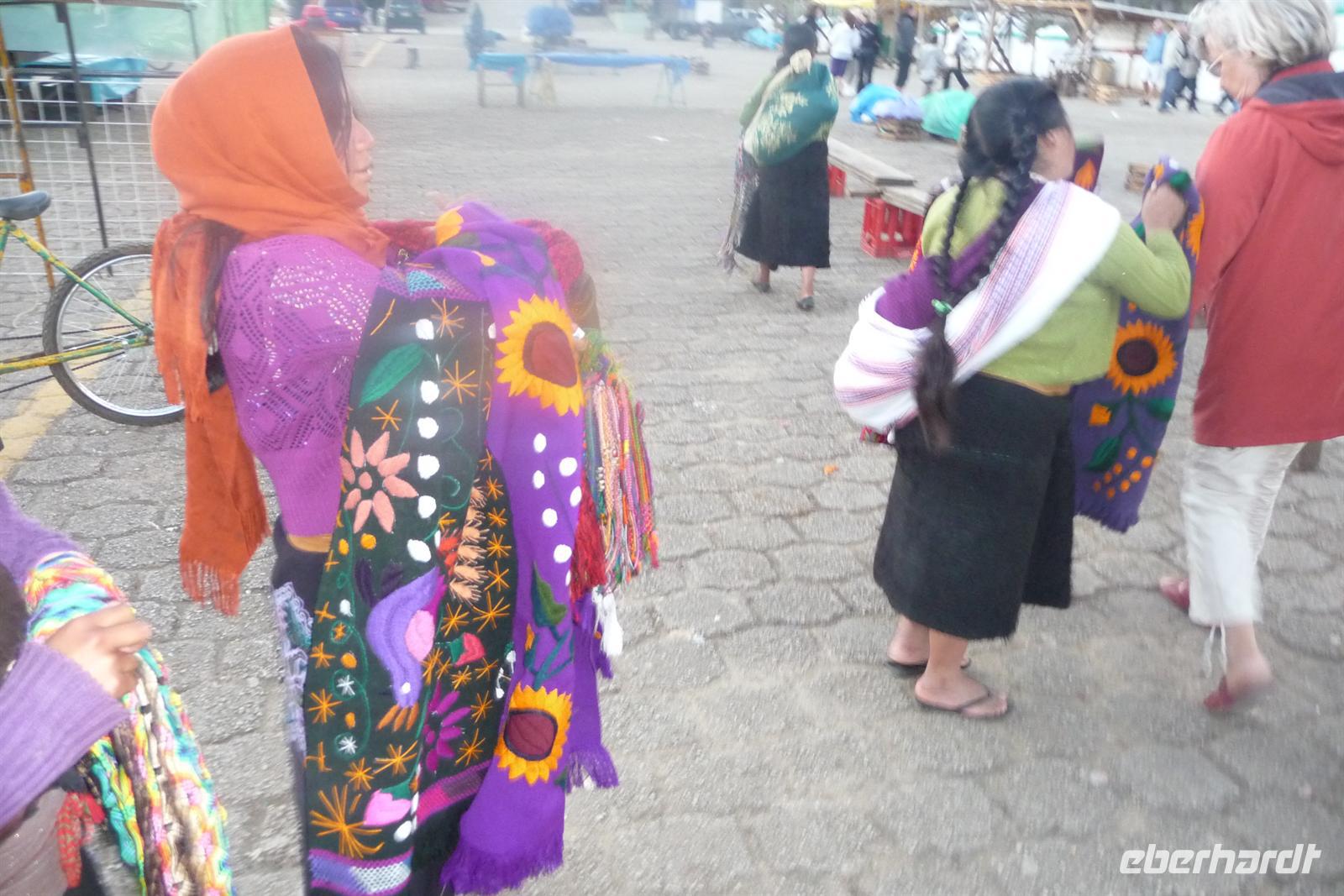 Und dann auf den Markt!!! Es gab alles - mexikanische Gewürze, Fleisch, Fisch, Baumwollschals, Blusen, Leder…. Und so schlenderten wir erst zusammen, und dann alleine durch den tollen Markt. Es war sehr interessant, die „alten“ Indianerfrauen verkaufen so tolle Sachen.