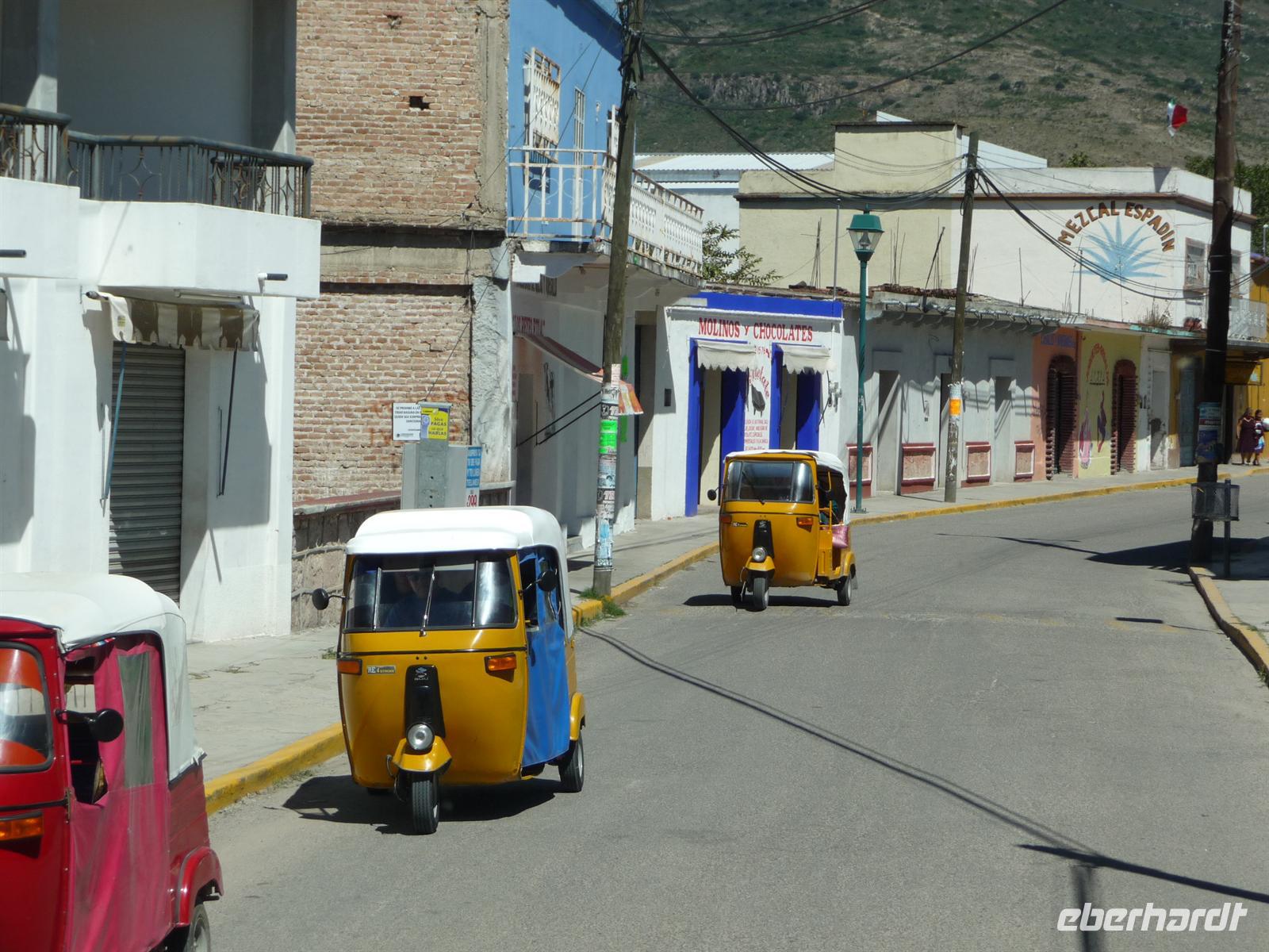 wollten den Zocolo und die Kirche besuchen, jedoch sind die Gassen hoch zum Zocolo zu eng für den Bus und so nahmen wir Taxis. Es war witzig, wir konnten mit den für Mexiko typischen Käfer-Taxis fahren. Immer 3 Personen rein und los gings! Oben am Zocolo (Marktplatz) war ein buntes Treiben: Schulkinder, Ältere, Touristen…es war echt schön. Die Kirche konnten wir wegen einer Beerdigung nicht besuchen, dafür genossen wir aber einen tollen Blick über die Stadt und die Berge und schlenderten etwas um den Marktplatz herum, bevor wir alle zusammen durch die Gassen runter zum Bus zurückliefen - ein schönes Städtchen mit seinen verwinkelten Gassen!