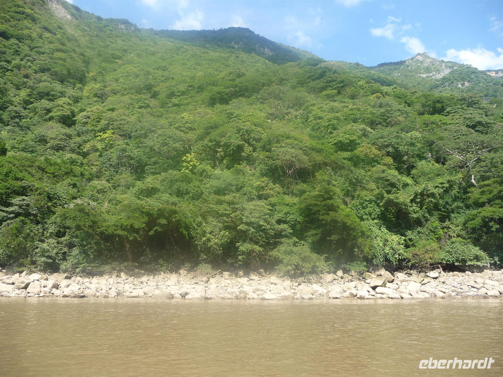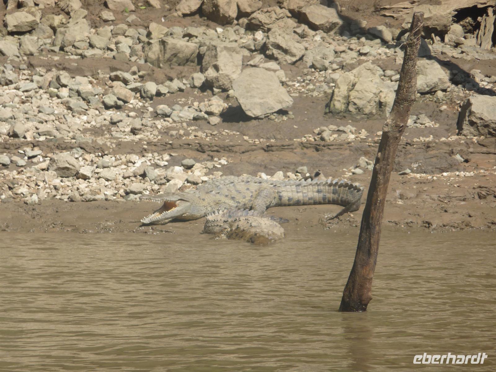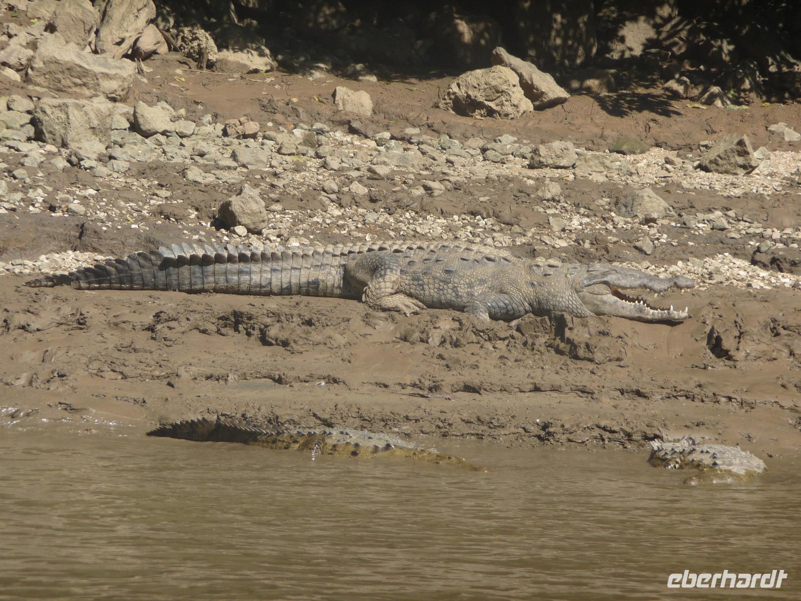 Nach dem Frühstück im Hotel Calli begutachteten wir erstmal die Hotelanlage, denn gestern sind wir spät abends angekommen und es war schon dunkel. Und dann starteten wir pünktlich um 8 Uhr unsere heutige Fahrt. Als erstes stoppten wir in einem Dorf und deckten uns wieder mal mit Wasser ein, bei den Temperaturen auch dringend notwendig. Die Busfahrten waren für uns sehr interessant, denn es gab links und rechts so viel zu sehen - tolle Landschaften, Kinder am Straßenrand und viele kleine Dörfer. Mittags sind wir schließlich in Chiapa de Corzo angekommen, wo wir am Dorfplatz ausstiegen und zu einem Restaurant liefen, wo unser Mittagessen auf uns wartete. Hier sollten wir eigentlich Buffet bekommen, jedoch wurde uns Essen serviert. Es gab auch Live-Musik und das Essen war auch gut, aber hier war es das erste Mal dass es uns irgendwie nicht so gut gefallen hat. Der Service war nicht so toll wie wir es von andern Lokalen in Mexiko nun schon gewöhnt waren. Aber gut, das Essen war lecker… Dafür wurde der Nachmittag um so besser, denn wir begaben uns alle auf ein besonderes Abenteuer. Eine Schnellboot-Fahrt in der Sumidero Schlucht in Chiapa de Corzo. Wir wurden von kleinen Tranfer-Fahrzeugen vom Dorfplatz abgeholt und zum kleinen Hafen chauffiert. Und dann gings los: Schwimmwesten an und ab ins Boot. Es war ein ganz normales Schnellboot, welches wir nur für uns hatten. Wir fuhren los, ab in die Schlucht, Es war ganz schön schnell, und daher auch echt windig - aber ein warmer Wind. Wir fuhren auf „Schokoladenwasser“ wie es Laura nannte - das braune Wasser des Flusses. Aber es war traumhaft schön, wahnsinnig hohe Klippen, bewachsen mit Bäumen und Sträuchern und viele Flussbetten. Apropo Flussbetten: dort machten es sich welche bequem!!! KROKODIELE, KROKODIELE, KROKODIELE. Wir haben ja schon damit gerechnet, diese Kreaturen zu treffen. Aber so viele. Wir haben 12 von den eindrucksvollen Urzeit-Tieren gesehen und sind ganz nahe rangefahren. Und ein ganz großes war auch dabei, viele kleine und mittlere. Einer unserer Gäste sagte: sind die echt? Ja und dann sahen wir den Beweis: Einige bewegten sich, krochen ins Wasser und verschwanden in dem brauen Wasser, einige rissen ihr Maul auf und andere kamen aus dem Wasser an Land. Es war für uns alle ein Erlebnis. Dann ging es weiter durch die Schlucht, vorbei an wunderschönen Landschaften zu einem Wasserfall, unter den wir fast drunter gefahren sind und vom Wassernebel erfrischt wurden. Nun ging es zurück durch die Schlucht, zurück in die Sonne und noch mal vorbei an den Kroks!