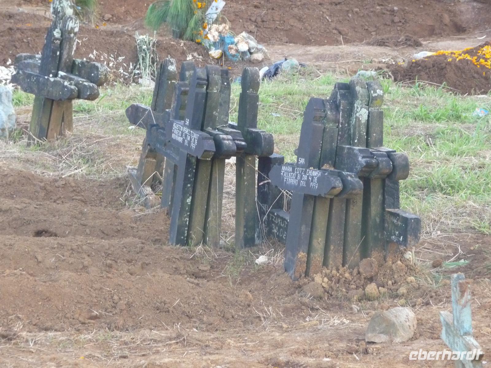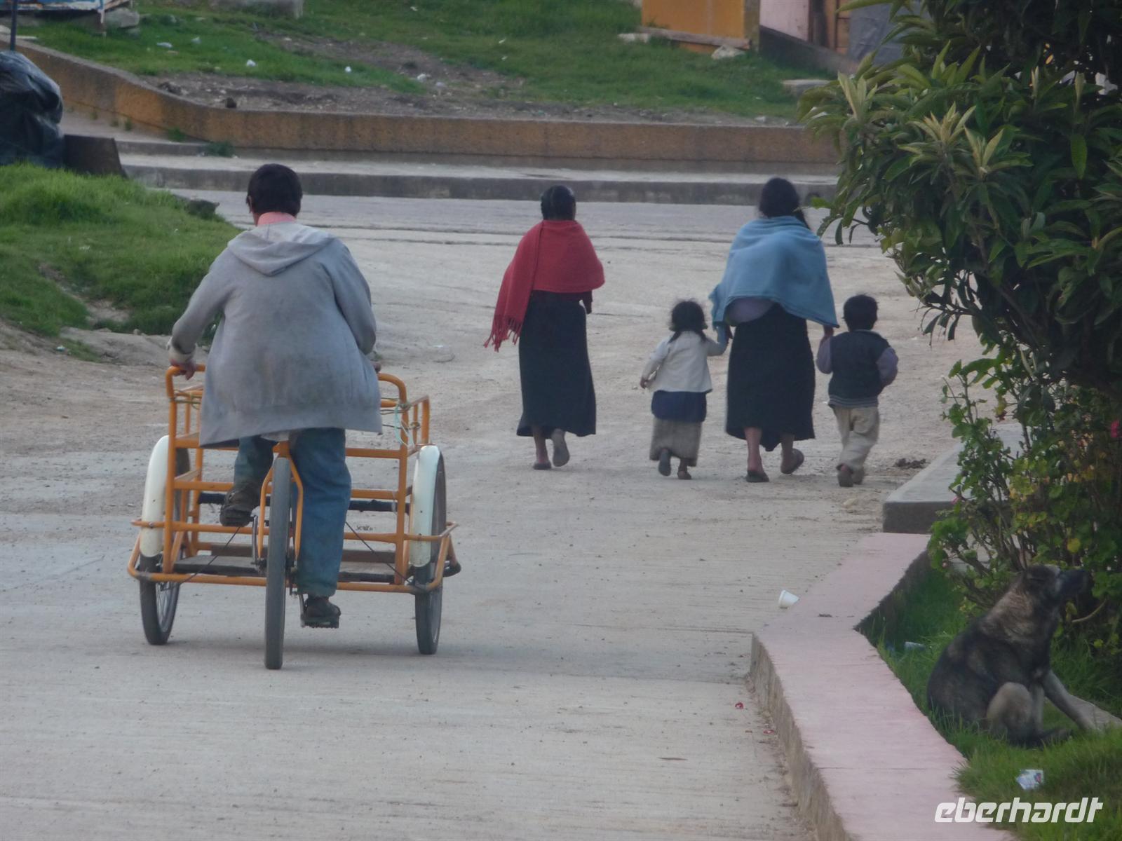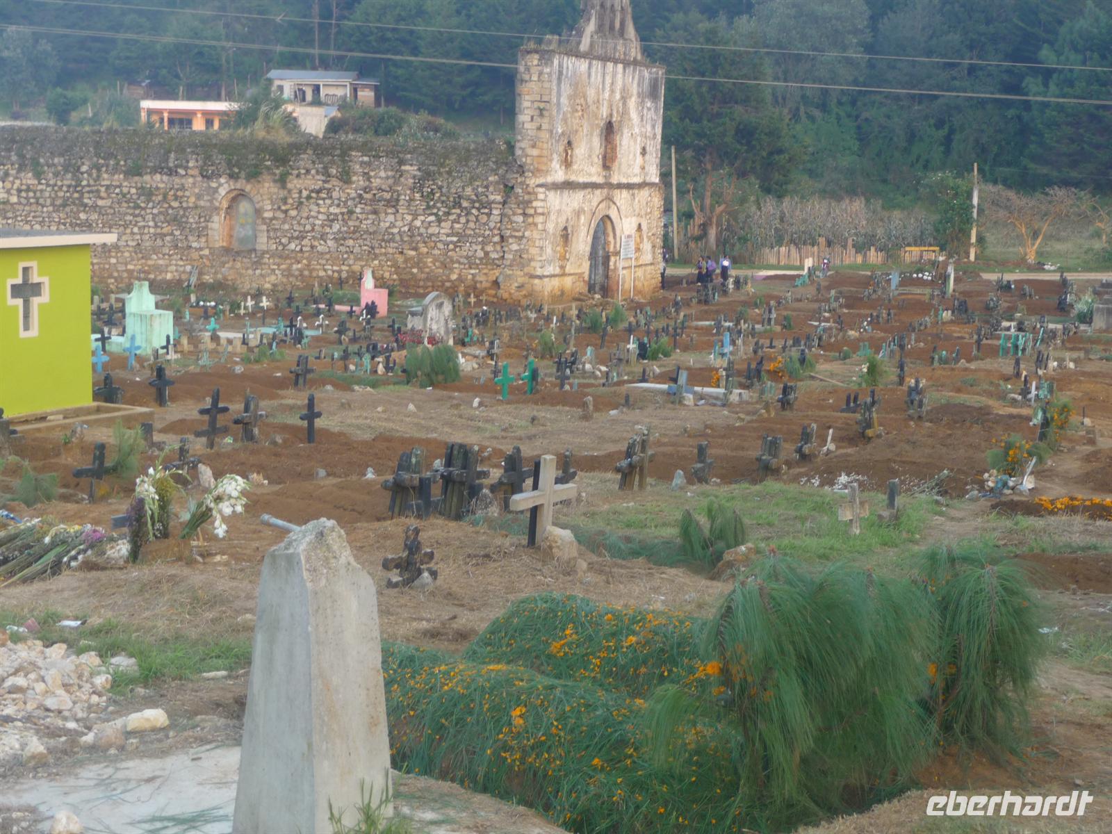 Alle sind wir heil wieder angekommen und wurden wieder zu unserem Bus gebracht. Aber dort erwartete uns das nächste Spektakel. Der Bus ist nicht angesprungen. Oh oh dachten wir, da galt nur warten. Aber unser Busfahrer hat von irgendwo her Ersatzteile besorgt und dann ging es weiter. Einige wollten Kaffee trinken gehen, aber als der Kaffee schon bestellt wurde spring de Bus wieder an und wir liefen schnell aus dem Kaffee raus und ab in den Bus. Schließlich wollten wir ja weiter Richtung San Cristobal de las Casas. Aber wir fuhren erst noch nach San Juan de Chamula, einen kleinen Indianerdorf hoch oben auf 2000m Höhe. Es war hier echt kalt, brrrrr haben wir gleich etwas gefroren. Aber wir waren von dem traditionellen Dorf so beeindruckt, dass dies nicht so schlimm war. Wir haben nicht erwartet, dass es noch so „indianisch“ sein wird. Die Mamas trugen die Kinder in einem Tuch auf dem Rücken, wie wir es noch oft sehen werden, Frauen verkaufen in alten Kleidern Obst auf dem Markt, süße Kinder bettelten um Süßes oder Geld - es war beeindruckend! Und dann besuchten wir die Kirche im Ort: der Boden war mit Piniennadeln ausgelegt, überall stehen Kerzen auf dem Boden, keine Bänke, alle sitzen auf dem Boden und beten in ihrer indianischen Sprache, ein Schamane hat einen Mann „gesegnet“…es war eine tolle Atmosphäre, so anders. Und dann draußen warteten schon wieder die kleinen und großen Kinder auf uns, in ihren traditionellen Kleidern oder auch lumpigen Jogginghosen und rissen und die Kekse aus der Hand. Schließlich wurde es dunkel und wir machten uns auf den Rückweg zum Bus. Auf dem Weg dorthin habe ich für die Gäste leckere Bananen und Orangen auf dem Markt gekauft - so günstig und so lecker!