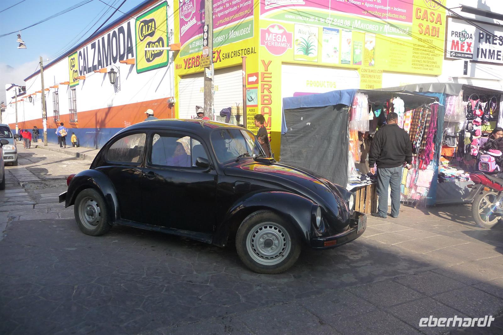 Nun kamen wir um 20 Uhr in San Christobal de las Casas an. Der Bus kann leider nicht bis zum Hotel fahren, da die Gassen in diesem kleinen Kolonialstädtchen zu eng sind. So liefen wir zum Hotel und unsere Koffer wurden in einem Mini-LKW transportiert. Es war ein tolles kleines charmantes Hotel mit Himmelsbetten mitten in der Altstadt. Nach dem wir alle unsere Zimmer gefunden hatten, machten sich einige von uns noch mal auf zu einem kleinen Bummel durch die Straßen. Es wirkte alles so gemütlich, kleine Cafes und Läden überall, Straßenmusiker mit langen Haaren und vieles mehr auf 2113m Höhe mitten in der Sierra.