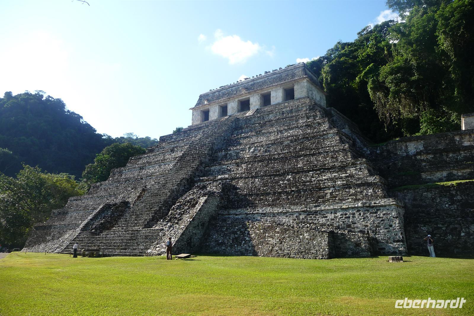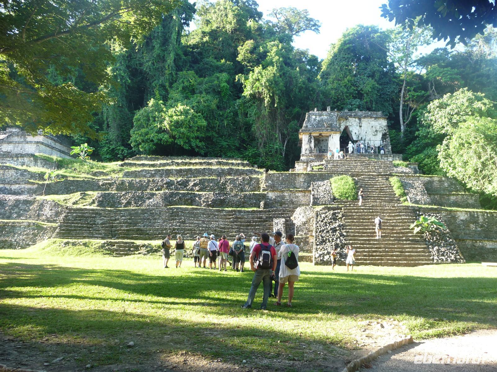Nach dem tollen Frühstück machten wir uns auf den Weg zur Ruinenanlage in Palenque. Es war nicht weit vom Hotel entfernt. Aber mitten im Dschungel! Dort angekommen spazierten wir durch die relativ große Anlage der Maya - wir waren echt sehr beeindruckt was diese Menschen vor so vielen Jahren gebaut haben. Im Hintergrund überall Urwald, und wir hörten die Brüllaffen „brüllen“, es war sehr beeindruckend. Wir wanderten durch die Ruinen, die teilweise vom Urwald „eingenommen“ wurden. Schließlich stiegen wir eine ziemlich steile Treppe runter um durch den „tiefen“ Urwald zum Bus zurückzuwandern. Es war ein toller Ausflug. Gleich im Anschluss stoppten wir noch bei einer tollen Kautschukplantage. Wir sahen wirklich wie Kautschuk oder Latex aus dem Baum rausgelaufen ist - war schon richtiger Gummi. Und auch die ganze Anlage hat uns sehr gut gefallen, der Plantagenchef hat uns rumgeführt.