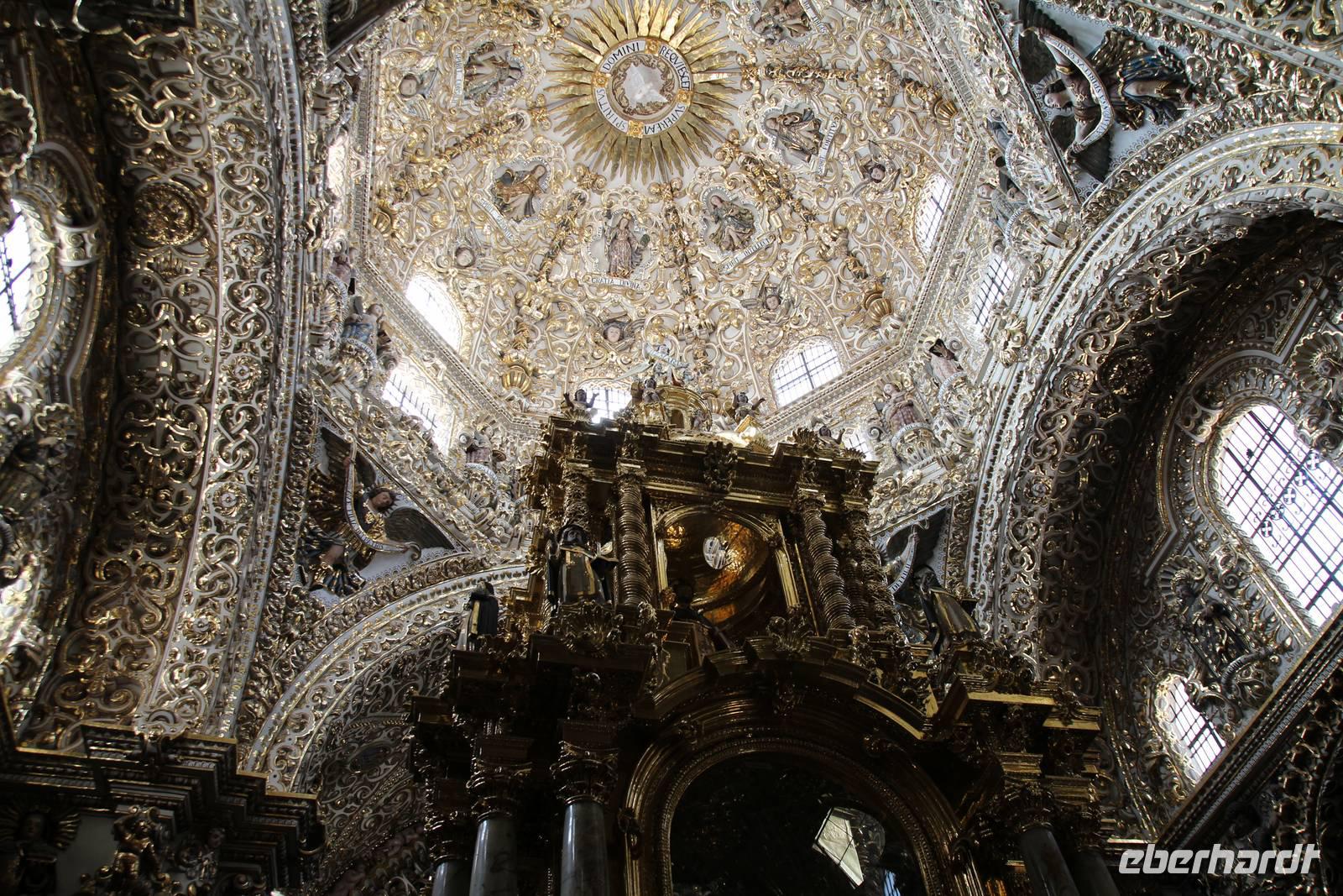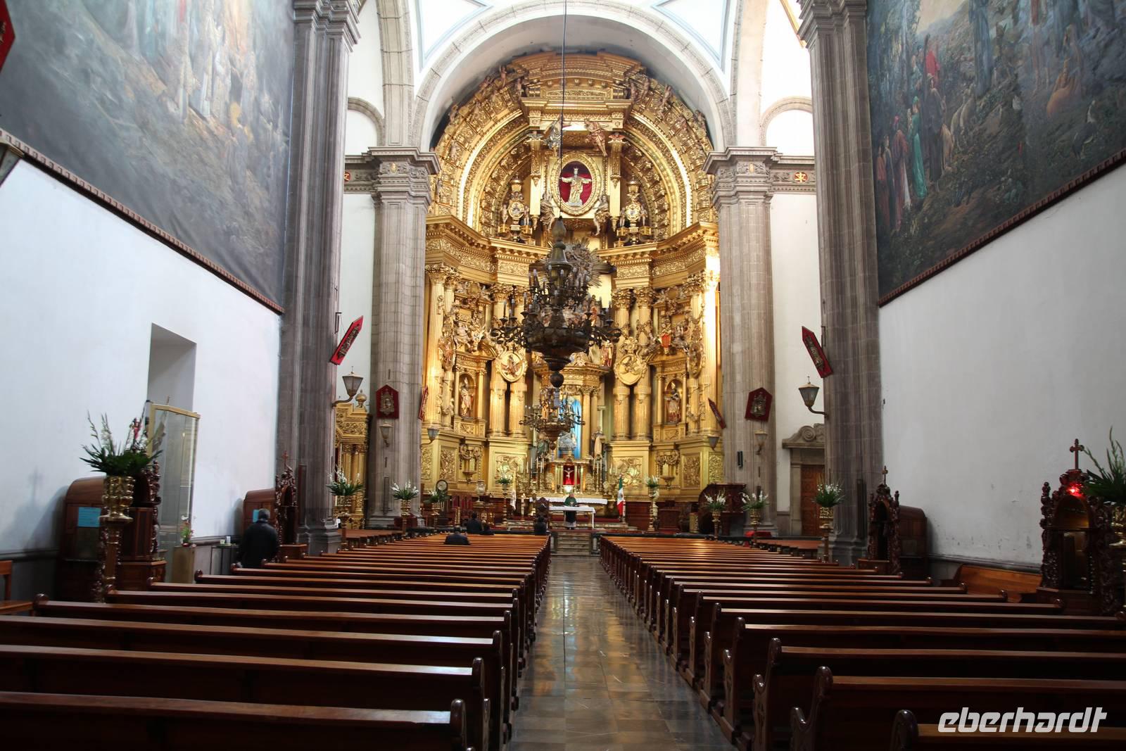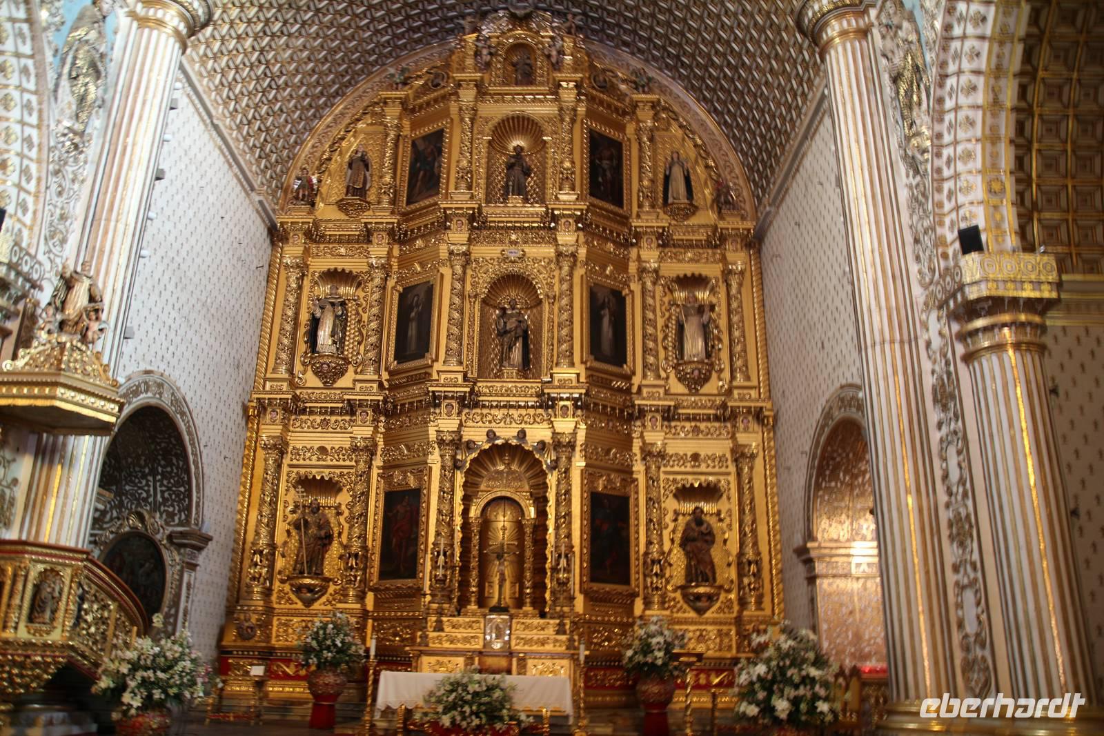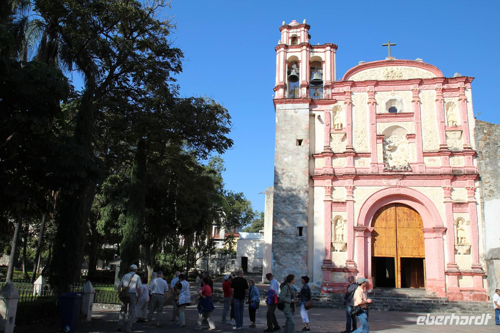 In Puebla stiegen wir an der Schmetterlingskapelle aus, die wir als erste besichtigten. Anschließend führte uns Ruth weiter zum Zuckerbäckerhaus und über den Markt bis zum Zócalo. Hier besichtigten wir noch die Kathedrale, bevor sich unsere Wege für die Mittagsstärkung trennten.