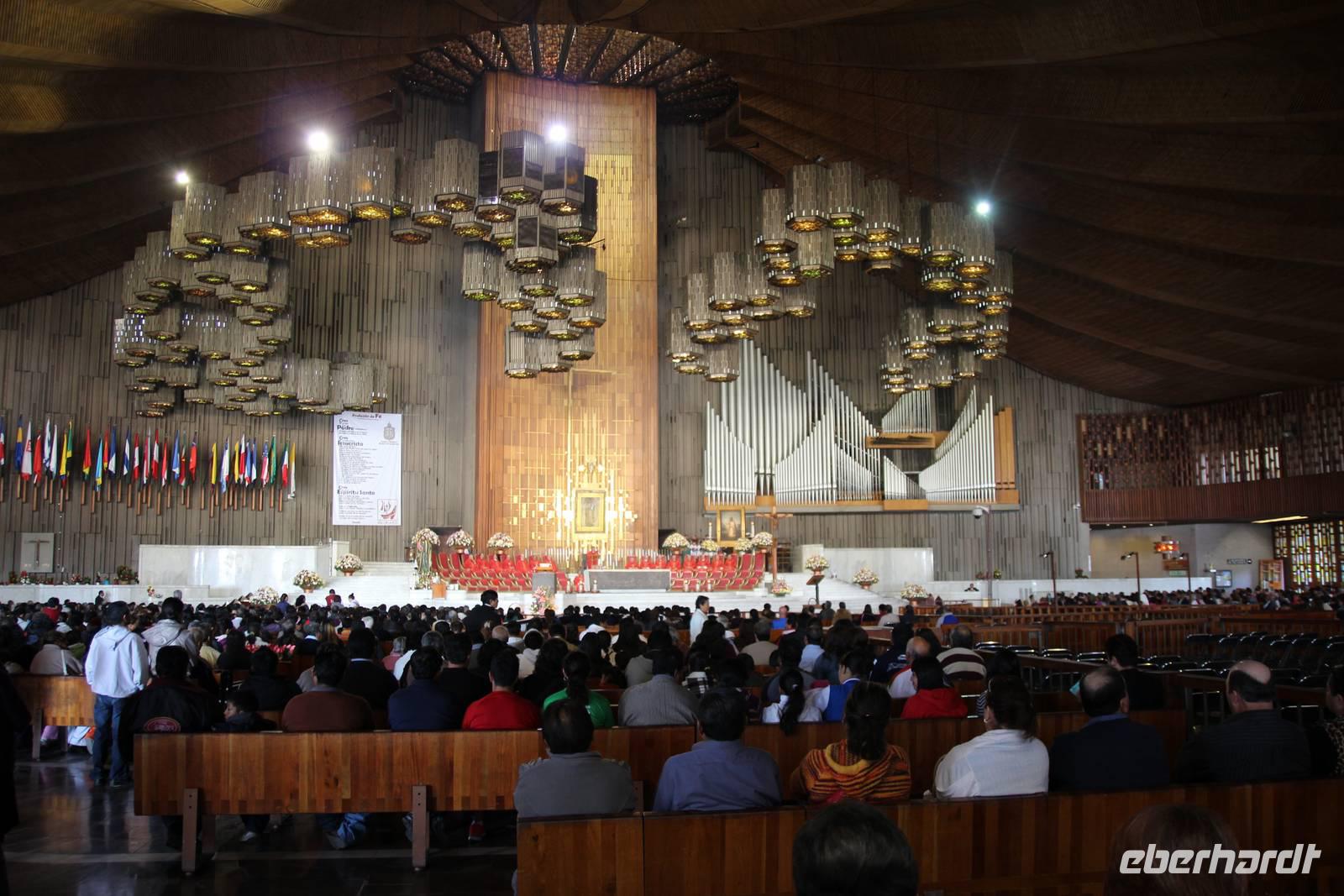 Vorbei am Platz der drei Kulturen erreichten wir nach einer knappen Stunde die Basilika von Guadalupe. Zunächst gingen wir in die neue Basilika, wo gerade eine Messe stattfand, bevor wir uns auch im weiteren Gelände umsehen konnten. Bei unserem Verlassen, konnten wir dann noch einige Rituale beobachten.