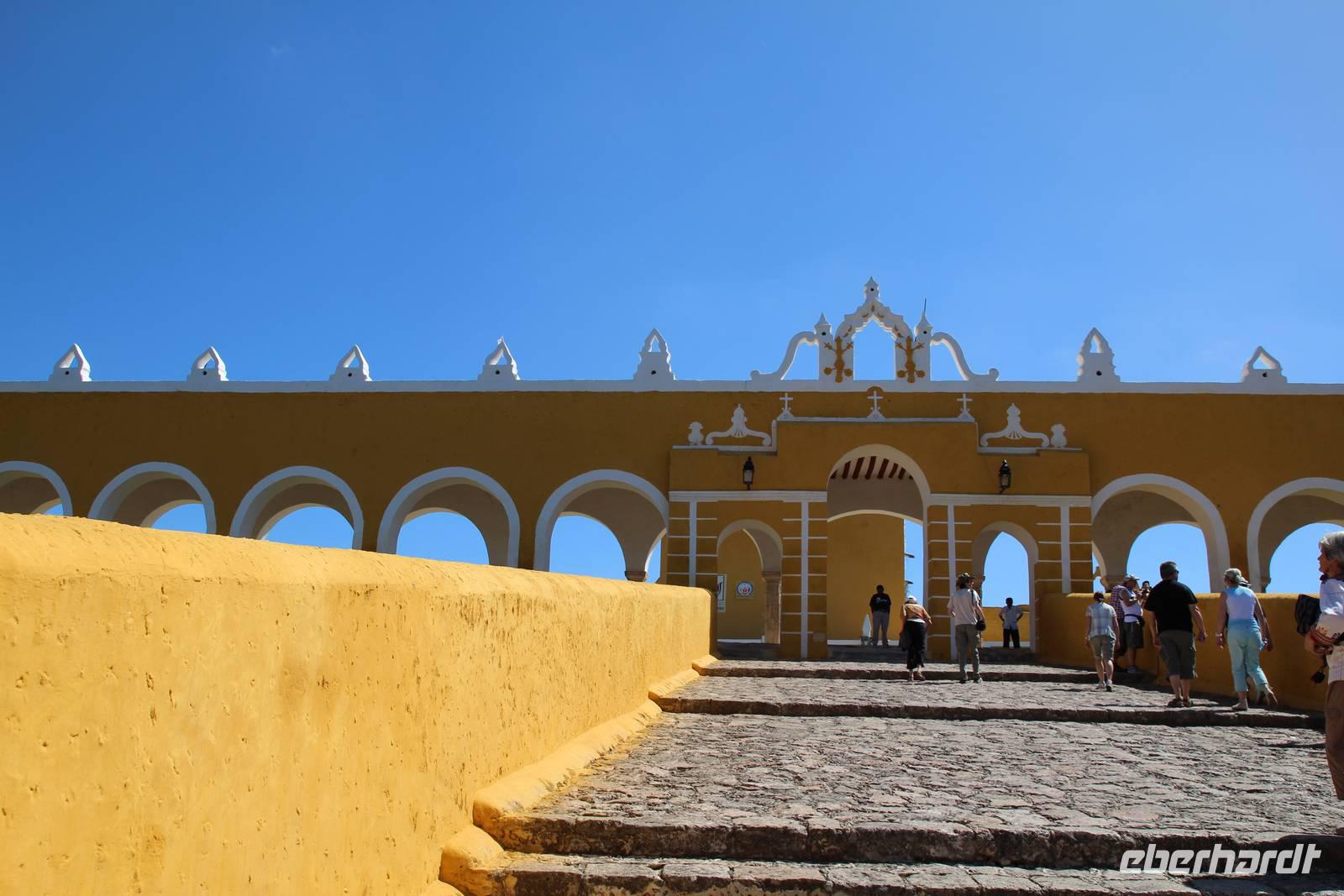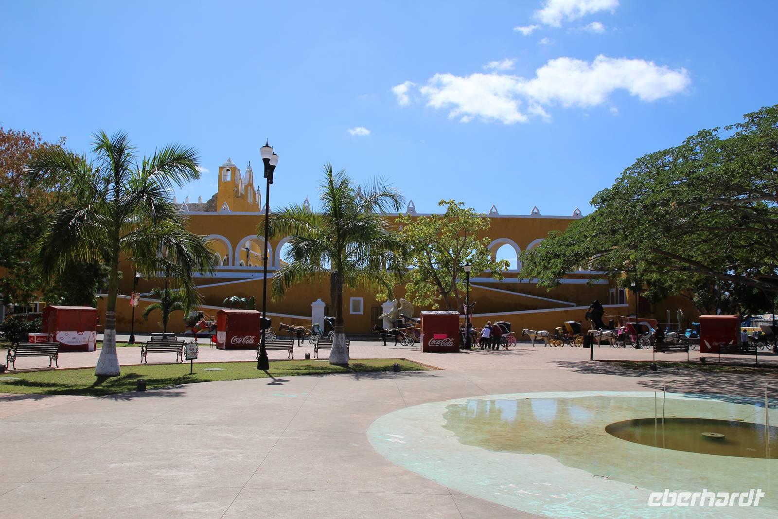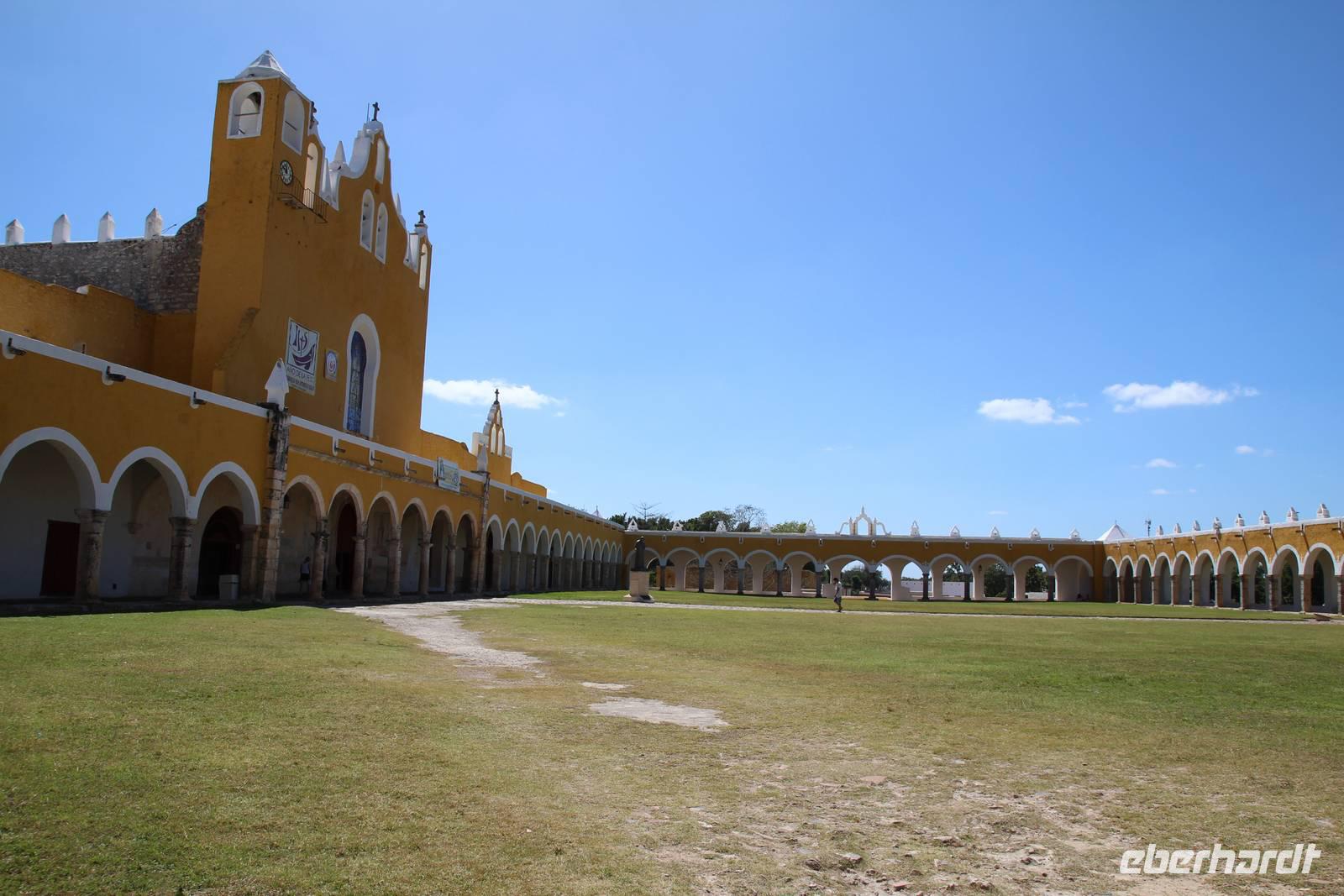 Nach einem weiteren Stopp an einem Maya-Friedhof, wo wir auch ein paar Handwerkerzeugnisse kauften, erreichten wir Izamal, die Stadt der Hügel. Hier besuchten wir den Konvent, was in seiner Größe doch schon beträchtliche Ausmaße annahm.