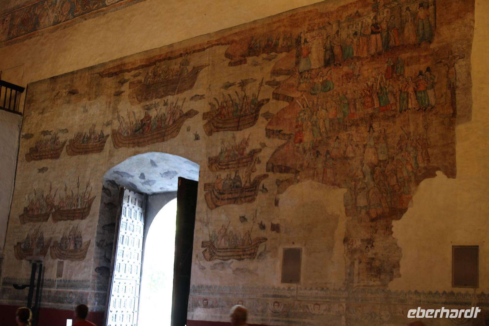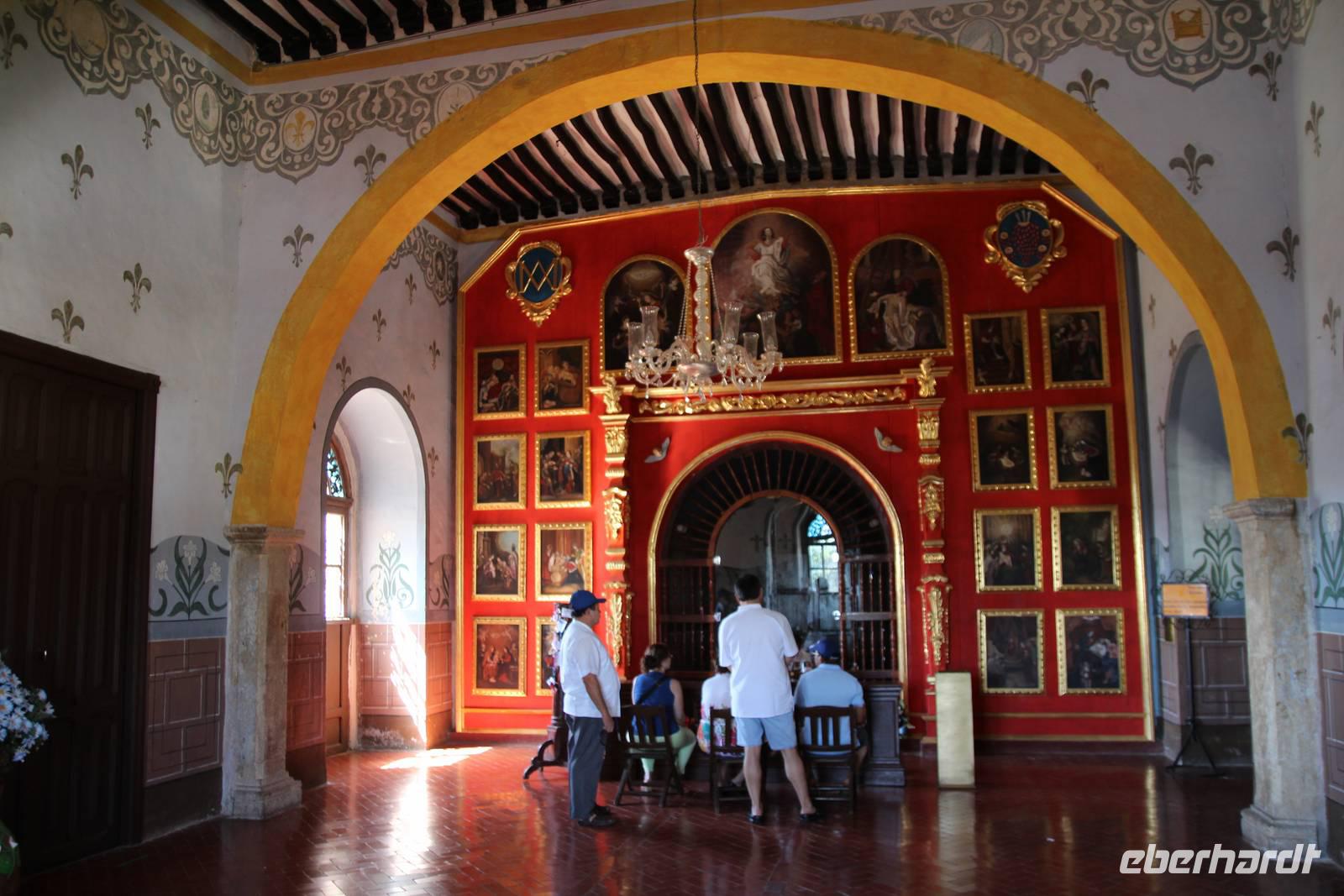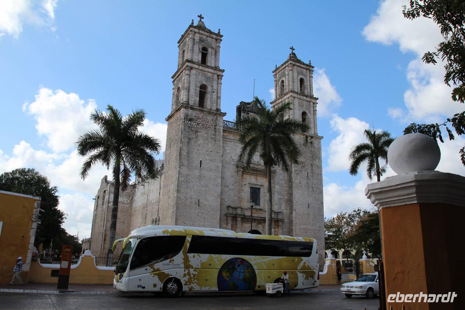 Nach einem weiteren Stopp an einem Maya-Friedhof, wo wir auch ein paar Handwerkerzeugnisse kauften, erreichten wir Izamal, die Stadt der Hügel. Hier besuchten wir den Konvent, was in seiner Größe doch schon beträchtliche Ausmaße annahm.