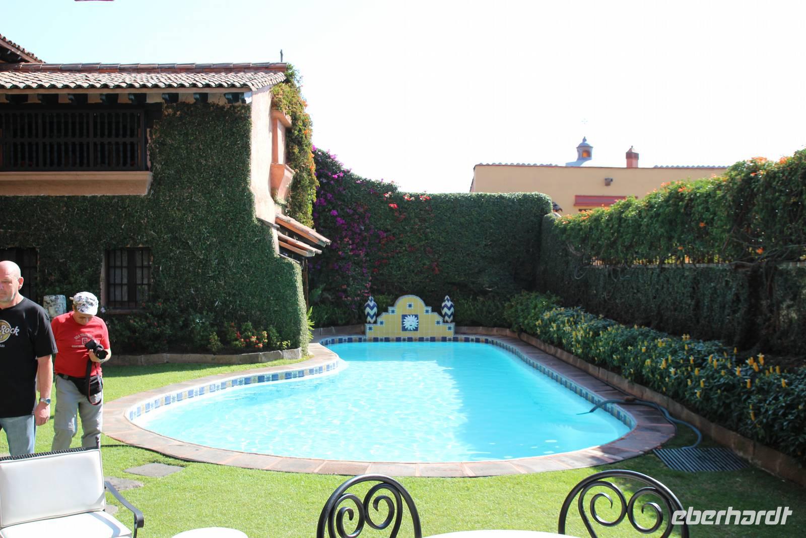 Mit dem Bus ging es nun zur unserer heutigen Unterkunft. Vorbei am Teques-See erreichten wir die Hacienda Vista Hermosa. Zum Glück waren wir früh genug da, so dass wir noch bei Tageslicht die bezaubernde Hotelanlage für unsere Fotoalben belichten konnten und uns auch im Pool erfrischen konnten. Das frühe Aufstehen hatte sich also gelohnt und nach einem leckeren Abendessen fielen wir zufrieden in die Betten.
