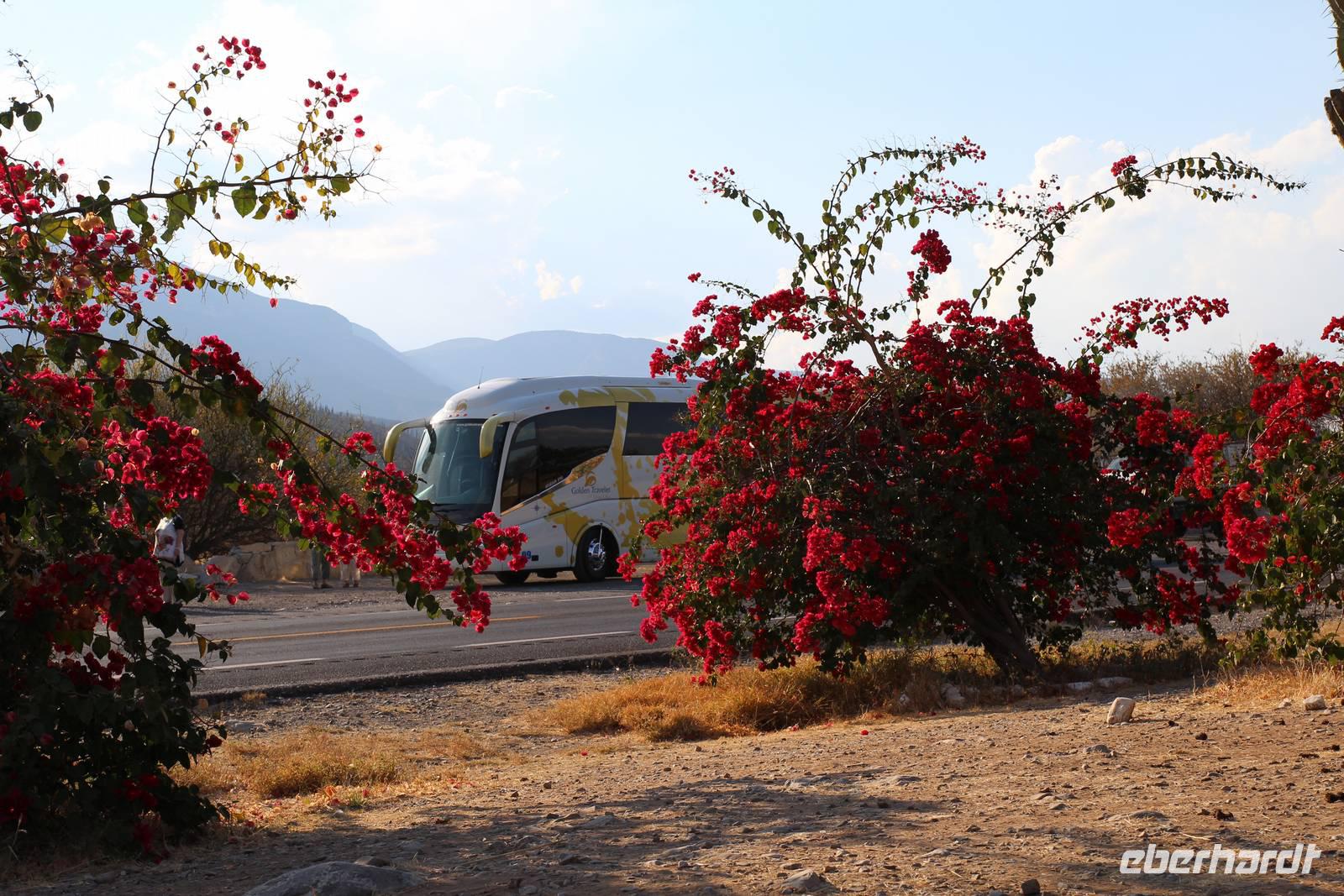 Bis zu unserem Hotel Calli in Tehuantepec lag noch einiges an Fahrzeit vor uns, denn auf der kurvenreichen Strecke kamen wir nicht wirklich zügig voran. Jesus brachte uns aber wieder sicher ans Ziel und er konnte sogar einer französischen Reisegruppe helfen, deren Bus einen technischen Defekt hatte.