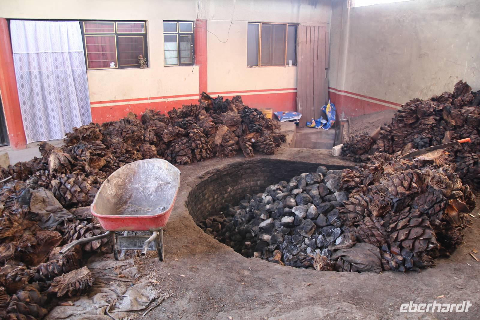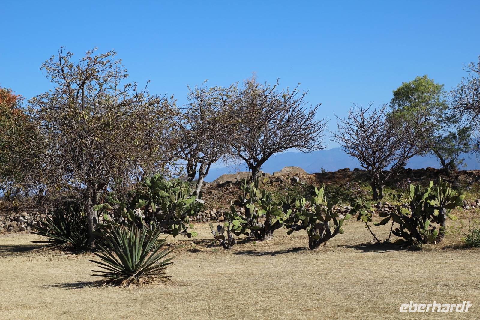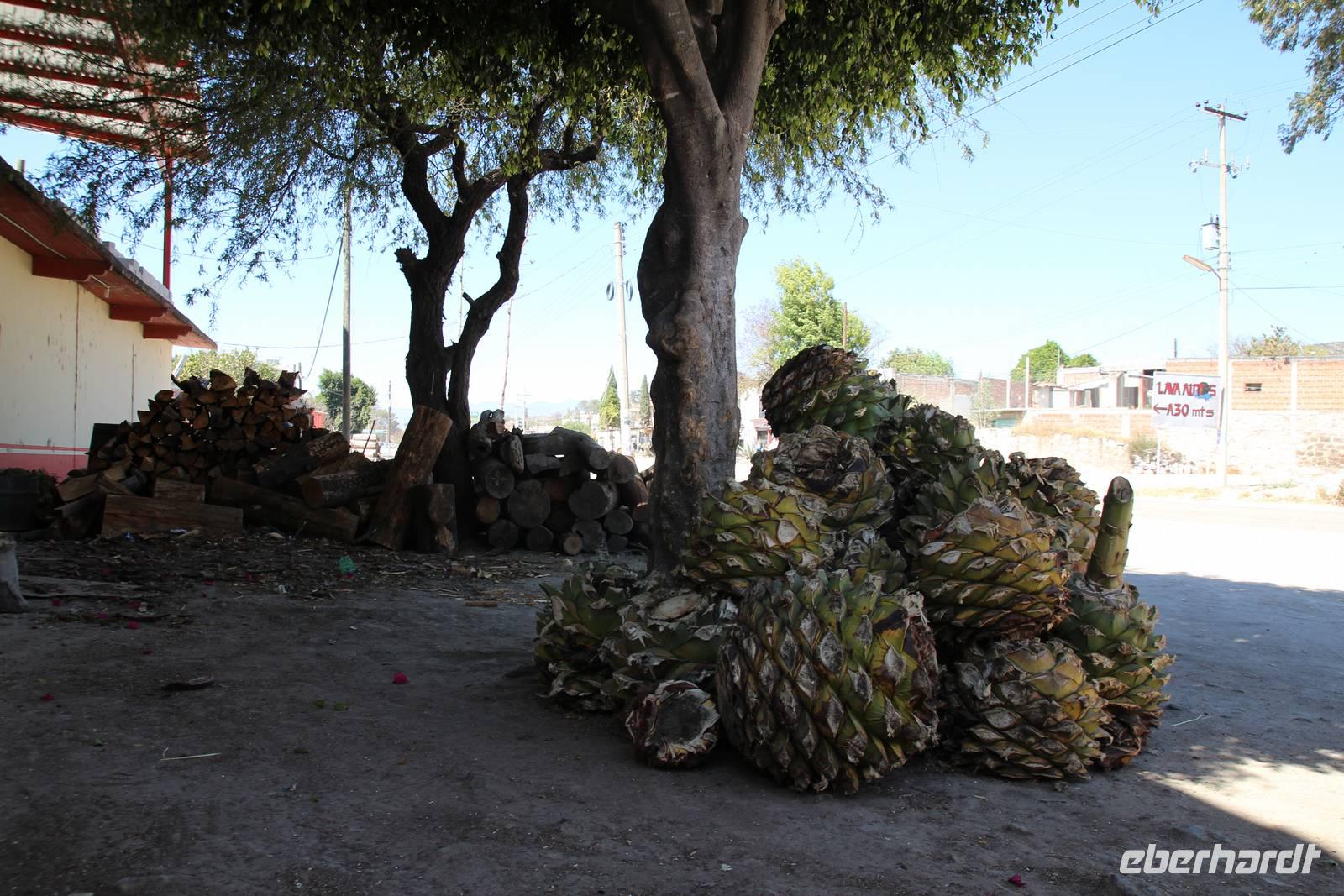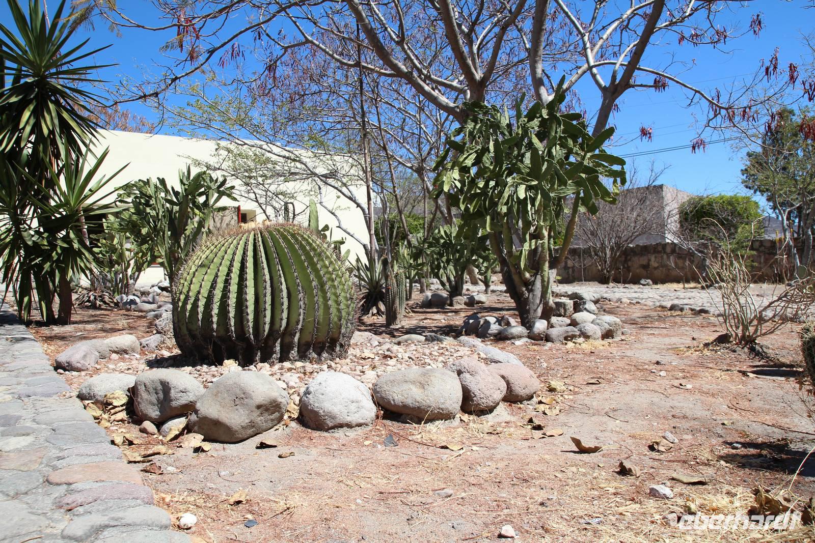 Kurzzeitig verließen wir die Ausgrabungsstätten, zunächst stoppten wir an einer kleinen Destillierie, wo uns erklärt wurde, wie man den Saft der Agave für den Mezcal gewinnt und was man sonst noch so alles mit der Agaven-Pflanze anstellen kann. Wenig später begleitete uns dann eine Musikgruppe mit typischer mexikanischer Musik zum Mittagessen.