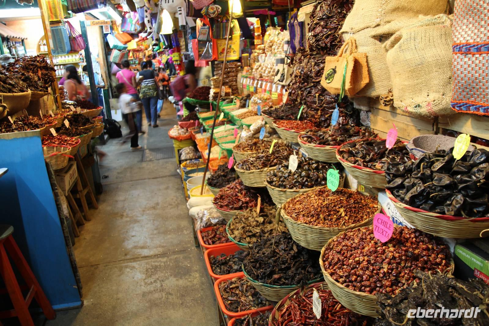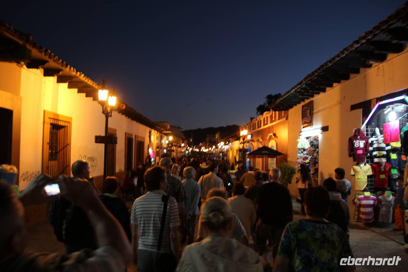 Nach dem Mittag war dann wieder Sitzfleisch gefragt und mit einem kleinen Kaffeestopp erreichten wir am späteren Abend unsere Hacienda in Oaxaca, wo wir nach unserem Abendessen noch jeder individuell eine Runde am Markt drehten und das bunte Treiben genossen.