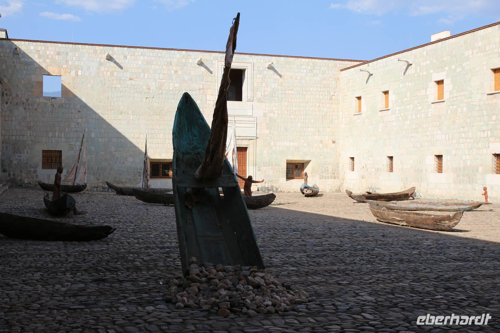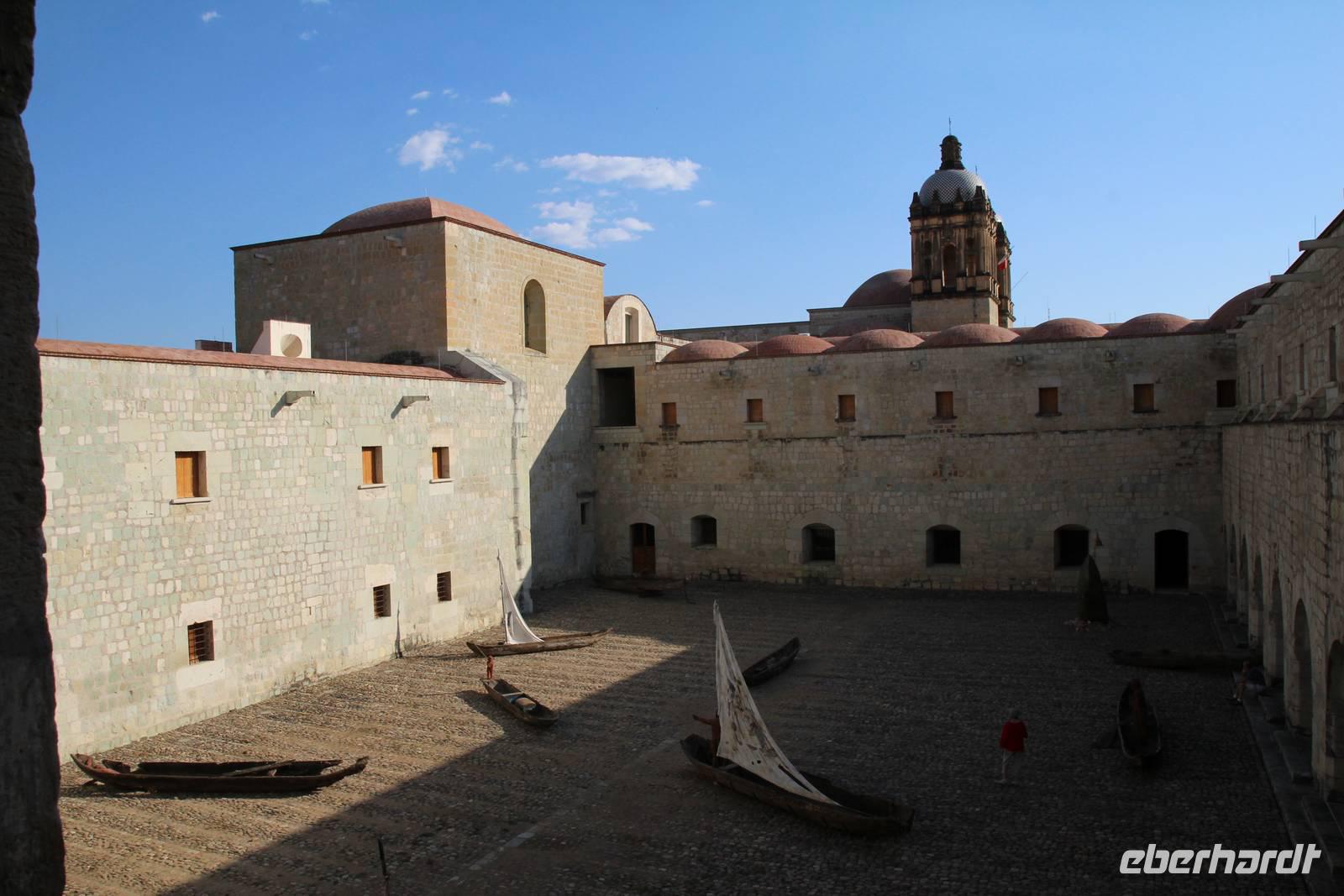 Den Nachmittag sollten wir eigentlich bei einer Kochvorführung über die Mole Negro, fas Hühnchen mit Chili-Schokoladensoße, verbringen. Leider verhinderte eine Straßensperrung, dass wir aus Oaxaca hinaus konnten. Um nicht den restlichen Tag im Stau zu verbringen, kehrten wir lieber um. Wir besichtigen als Ausgleich das Regionalmuseum, wodurch wir auch einen Bogen zum heutigen Vormittag schließen konnten, denn hier sind die Schätze des Grab Nr. 7, welches wir heute Vormittag mit besichtigten, ausgestellt.