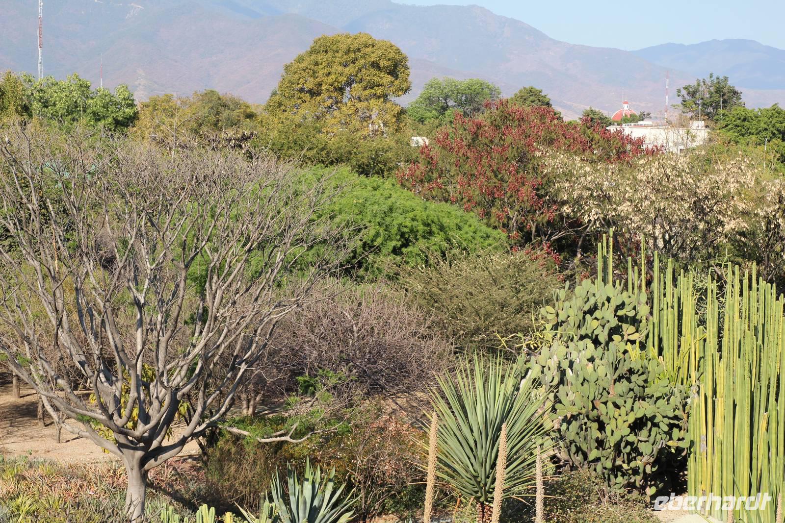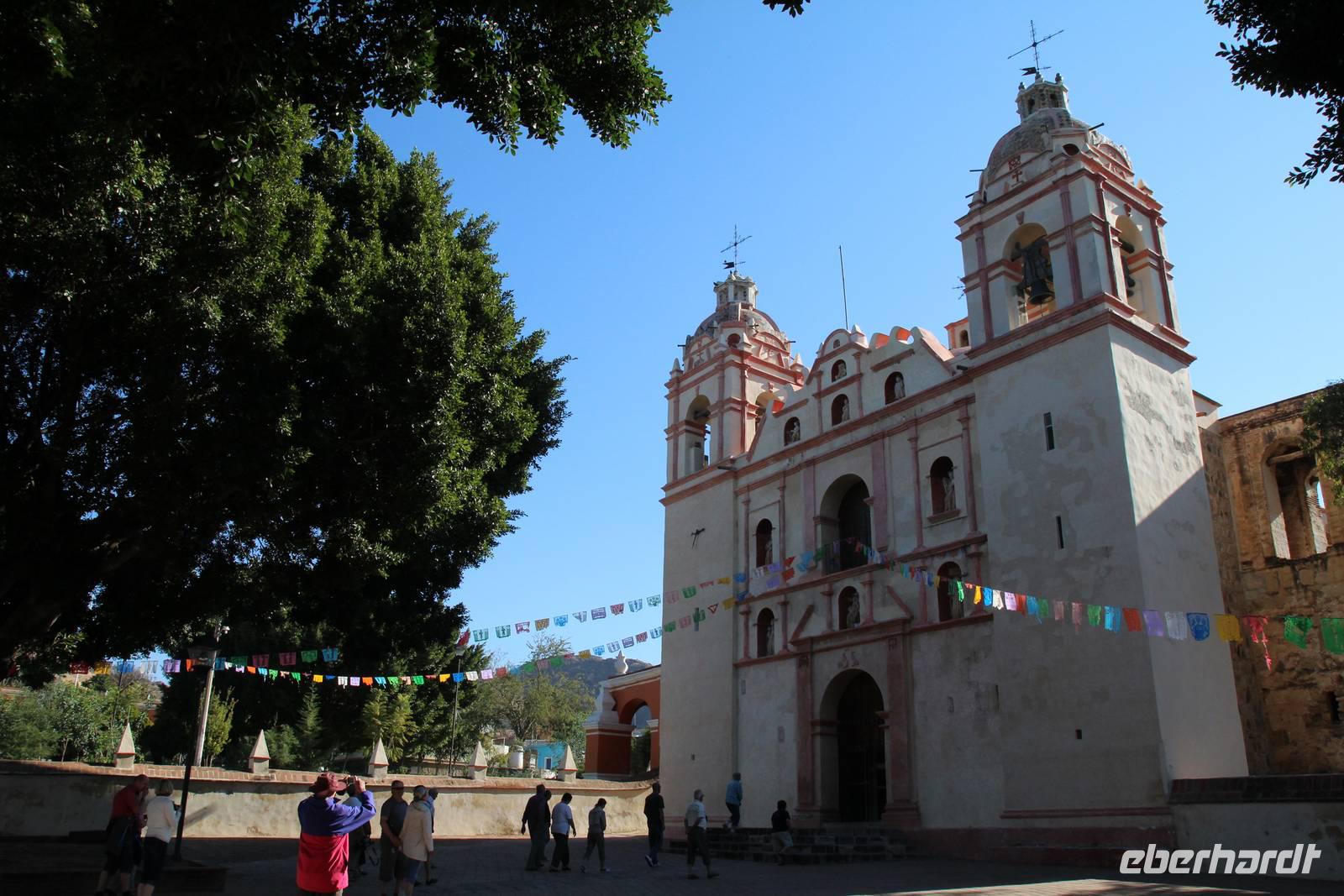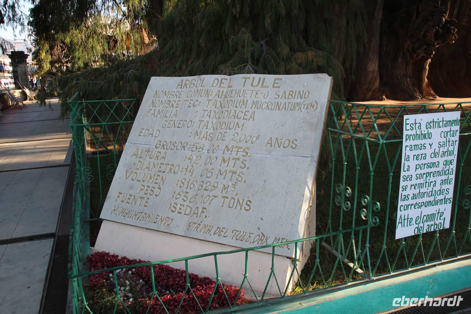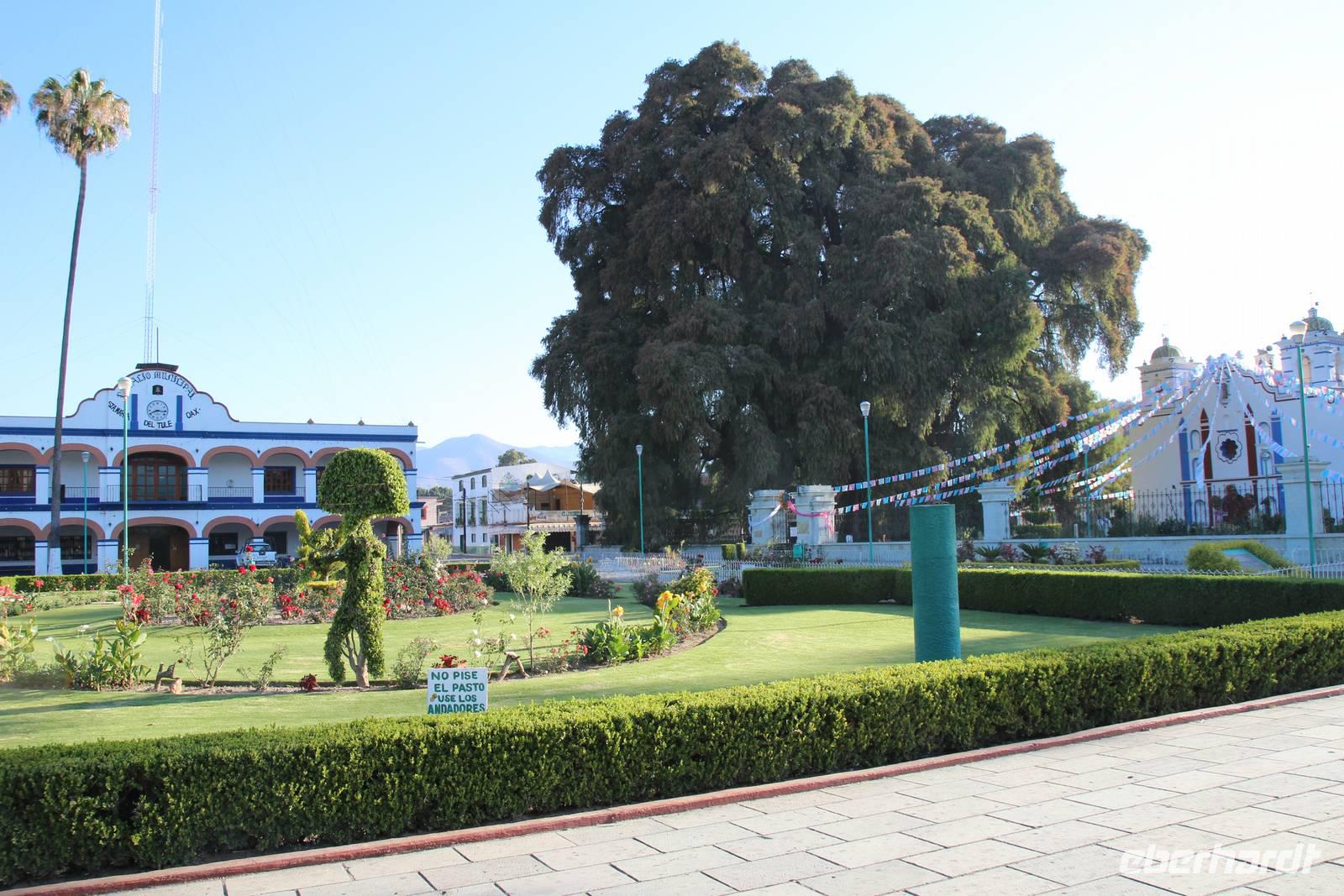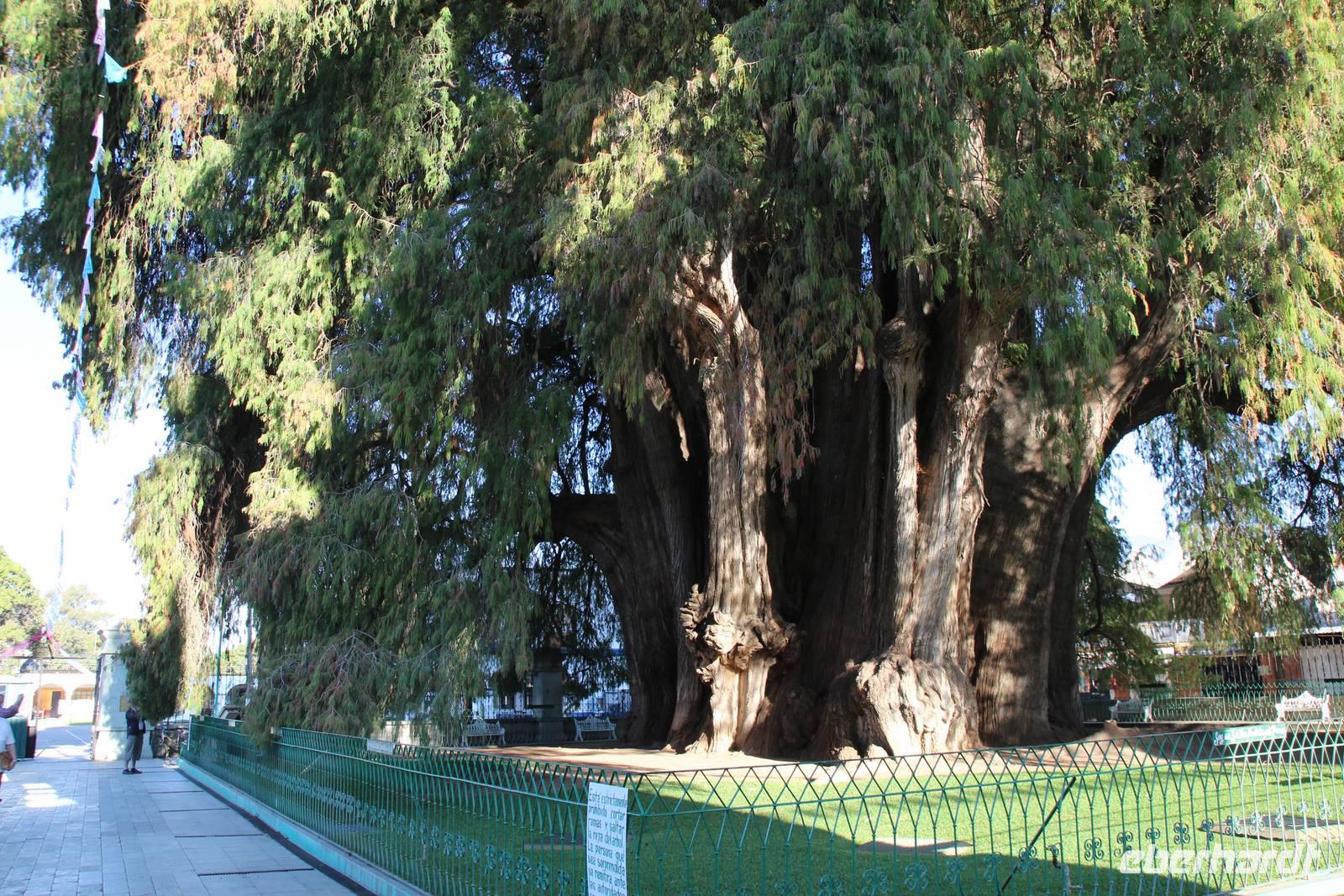 Das frühe Aufstehen waren wir inzwischen gewohnt, doch heute sollte es nochmal ein paar Minuten früher los gehen - doch auf Ruth war Verlass, denn es hat sich wieder gelohnt. In der noch aufgehenden Sonne, erreichten wir Santa Maria del Tule, wo wir „Ruths Freund" besuchten, den angeblich weltweit dicksten Baum. Mit einem Alter von über 2000 Jahren, ist er auf jeden Fall einer der ältesten, und wir durften Ihn bei herrlichem Licht- und Schattenspiel besichtigen und fotografieren.