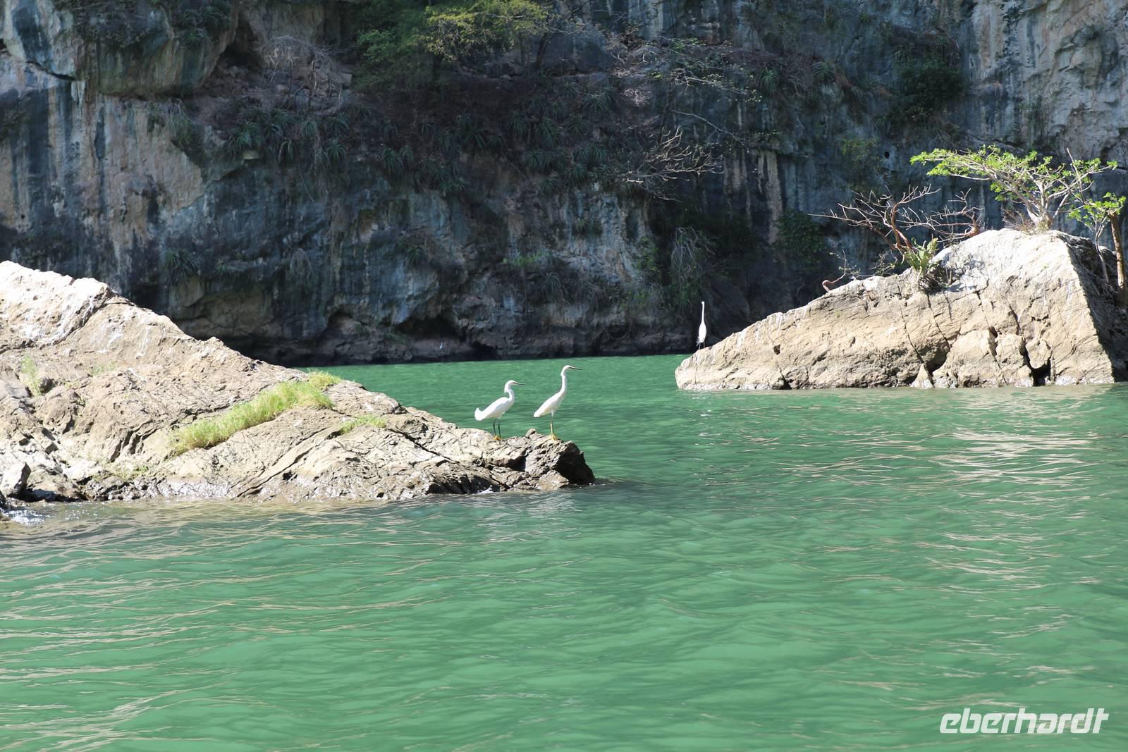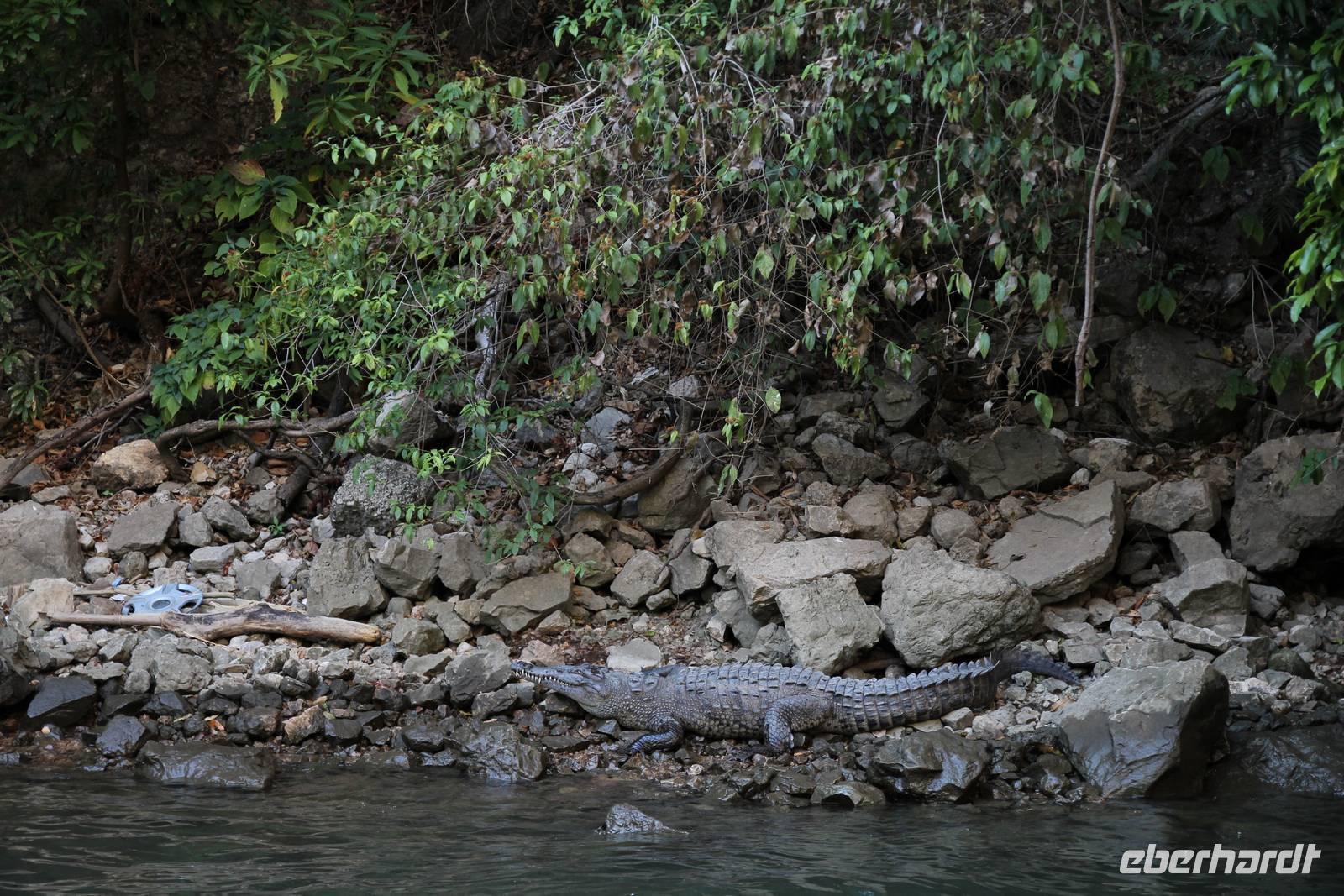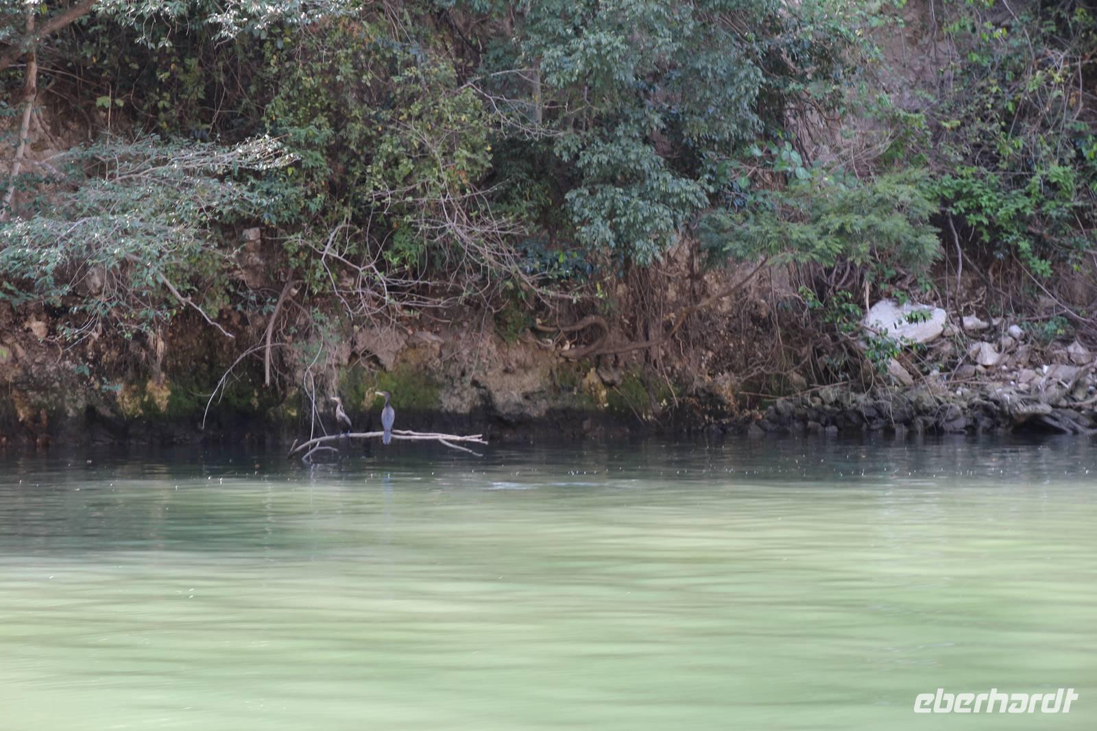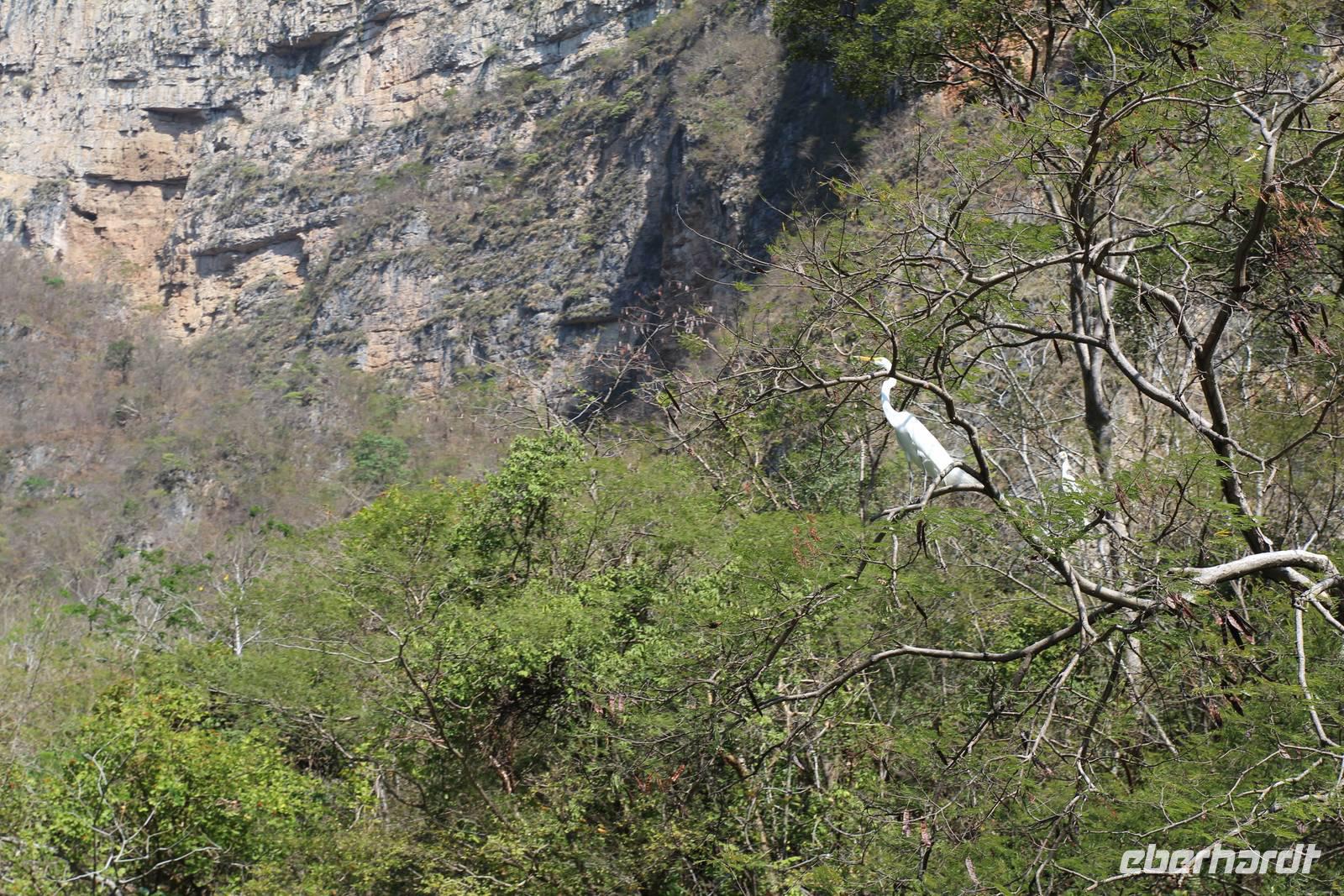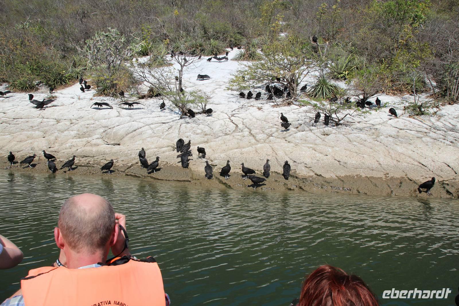 Am Fluss Rio Grijalva wurden wir dann sicher mit Schwimmwesten ausgerüstet und schon konnte die rasante Bootsfahrt durch die Sumidero Schlucht starten. Entlang unseres Weges stoppten wir immer wieder, unser Bootsführer zeigte uns die verschiedenen Vogelarten, die hier lebten. Auch Brüllaffen und Krokodile begegneten uns auf unserem Weg durch den Canyon mit seinen teilweise 1000 Meter hohen Felswänden. Am „Weihnachtsbaum" wendeten wir, nach insgesamt etwa 2 Stunden hatten wir dann wieder festen Boden unter den Füßen und waren um einige Erfahrungen reicher.