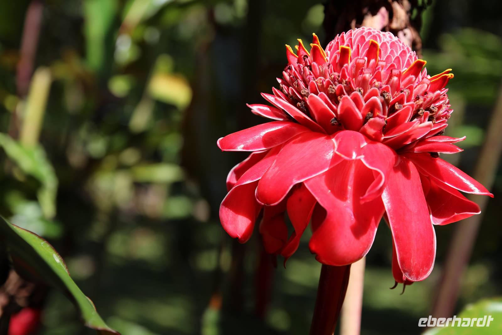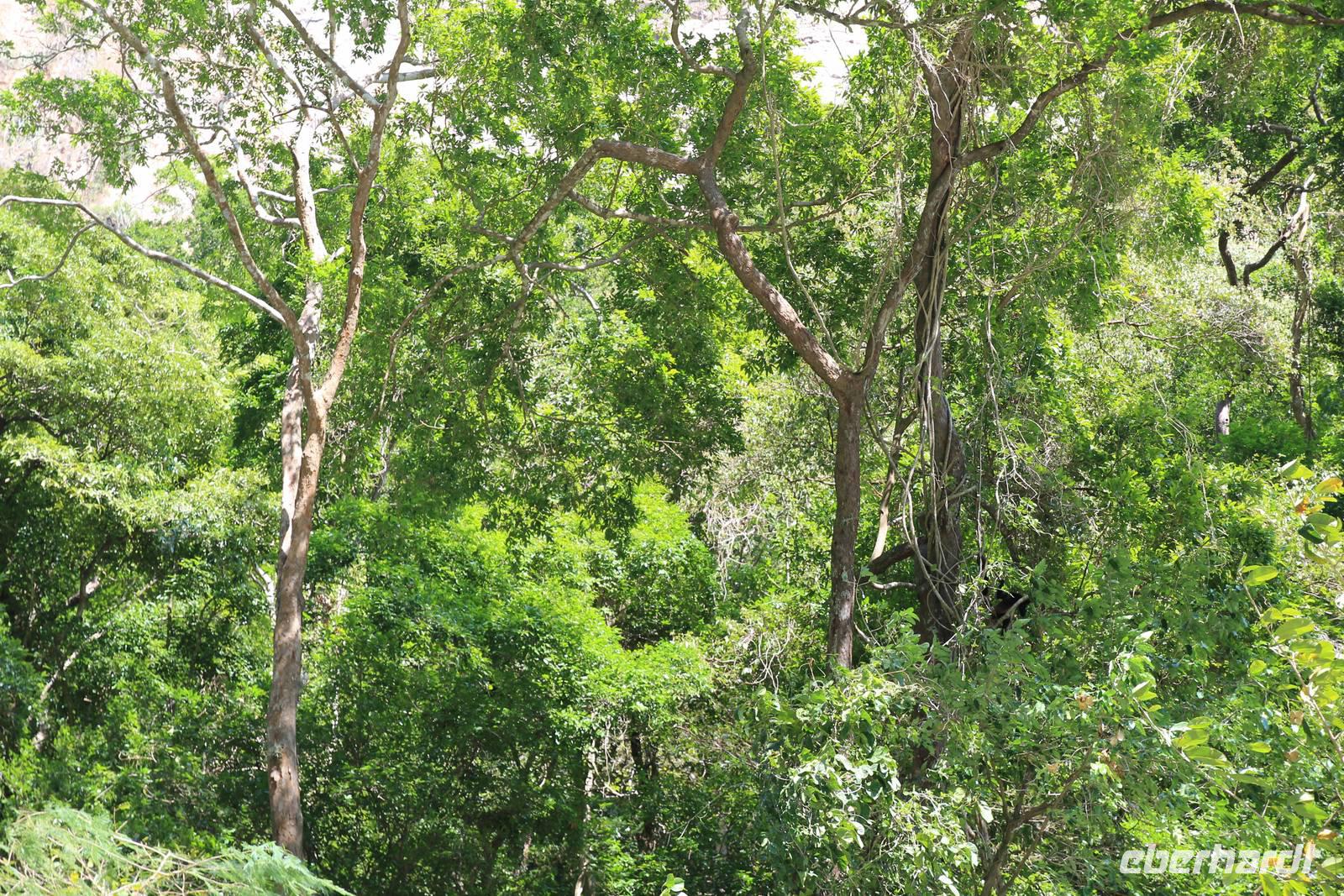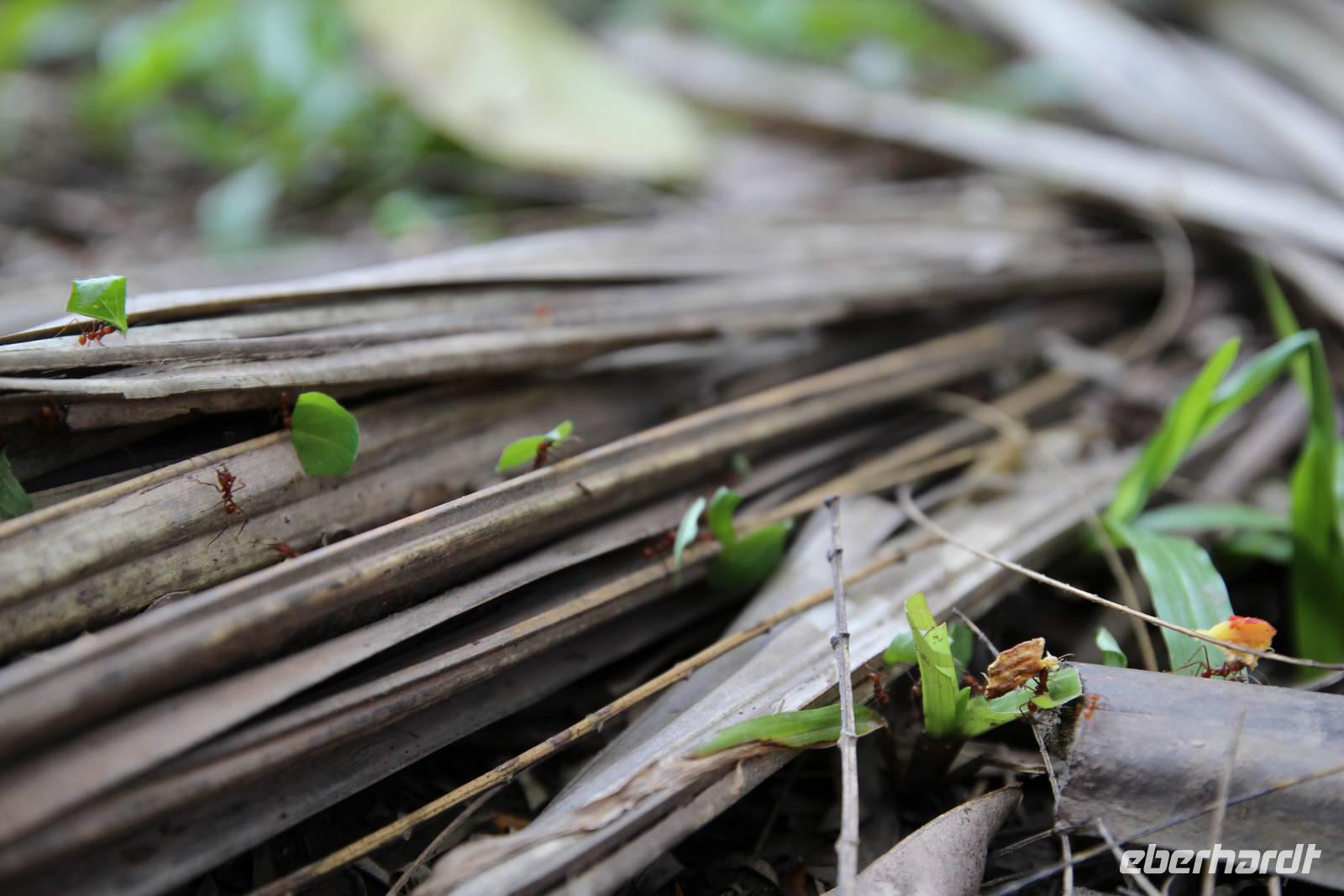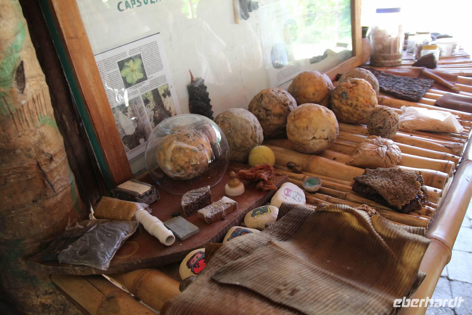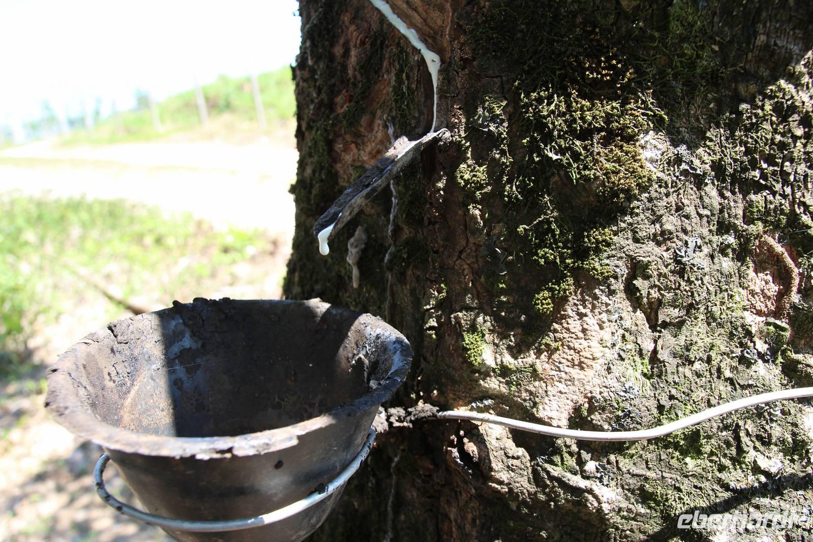 Um unseren Aufenthalt im Dschungelgebiet abzurunden gingen wir noch einen sehr schönen Pfad hinab zum Bus. Mitten durchs Grün ergaben sich hier wieder einige Fotomotive, ebenso waren wir vor der Hitze geschützt, die nun doch schon etwas drückend wurde - es ging ja auch schon wieder dem Mittag zu, wie doch die Zeit vergeht. Doch zuvor hielten wir noch an einer kleinen Kautschukplantage, wo uns die Zucht der Gummibäume, sowie die Ernte und Verarbeitung des Kautschuks näher gebracht wurden.