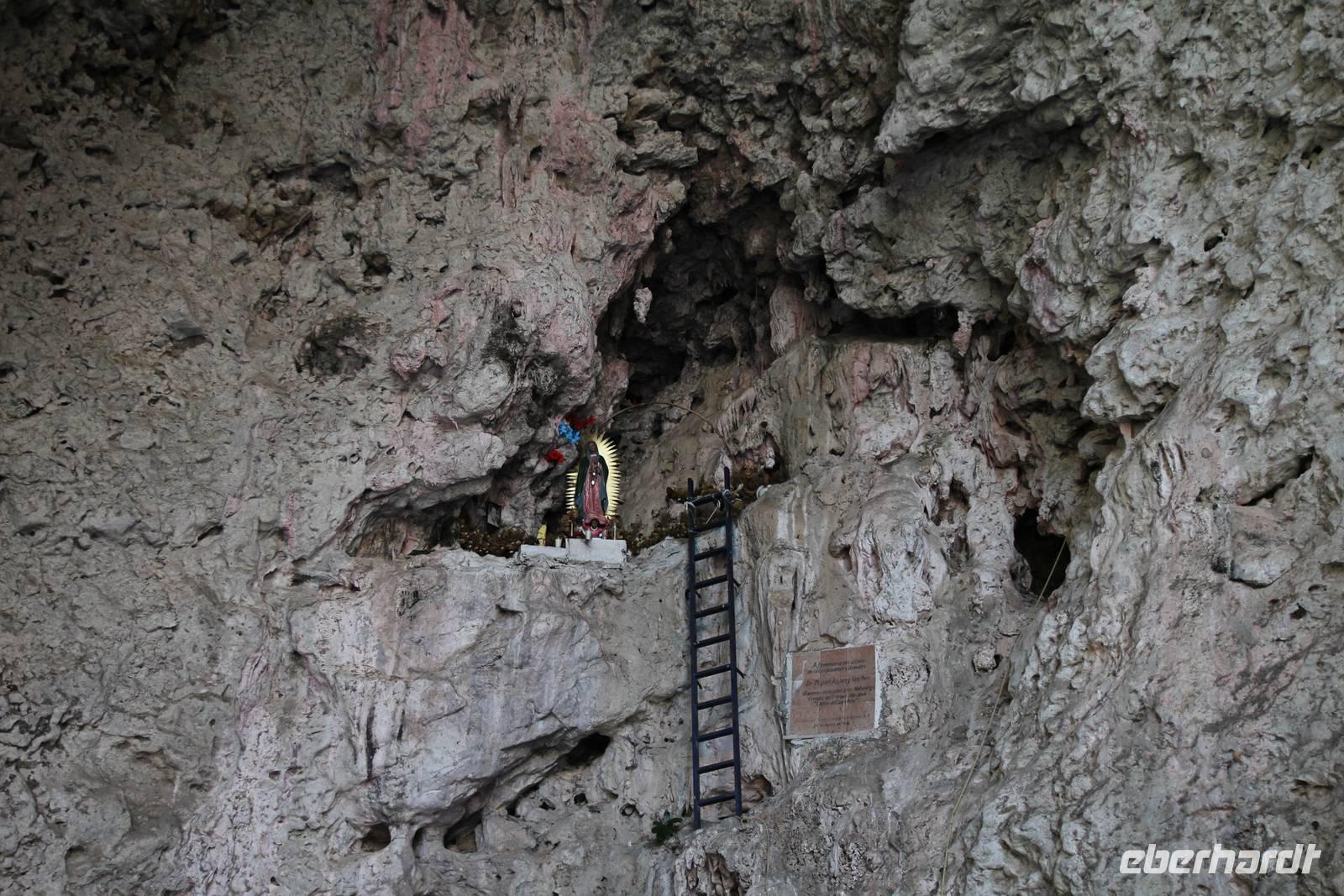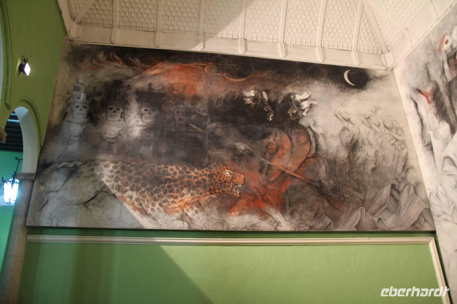 Aber zunächst standen natürlich auch heute noch ein paar Prorammpunkte auf dem Plan. Unser Weg führte uns zunächst raus aus Mexico City, wobei wir auch hier einen kleinen Abstecher wagten, denn der Weg führte uns vorbei am Olympiastadion und dem dazugehörigem olympischen Dorf von 1968. Auch die Universität konnten wir erspähen, bevor es dann über den Bergkamm nach Cuernavaca ging. Hier besichtigten wir zunächst die Basilika, wo wir u.a. ein seltenes Abbild des versammelten Dreigestirns besichtigen konnten. Weiter zum Zócalo erhaschten wir einen Blick auf den Regierungspalast bevor es weiter ins Brady-Museum ging, wo wir einen Blick die Lebensweise und die Sammlungen des Robert Brady bekamen.