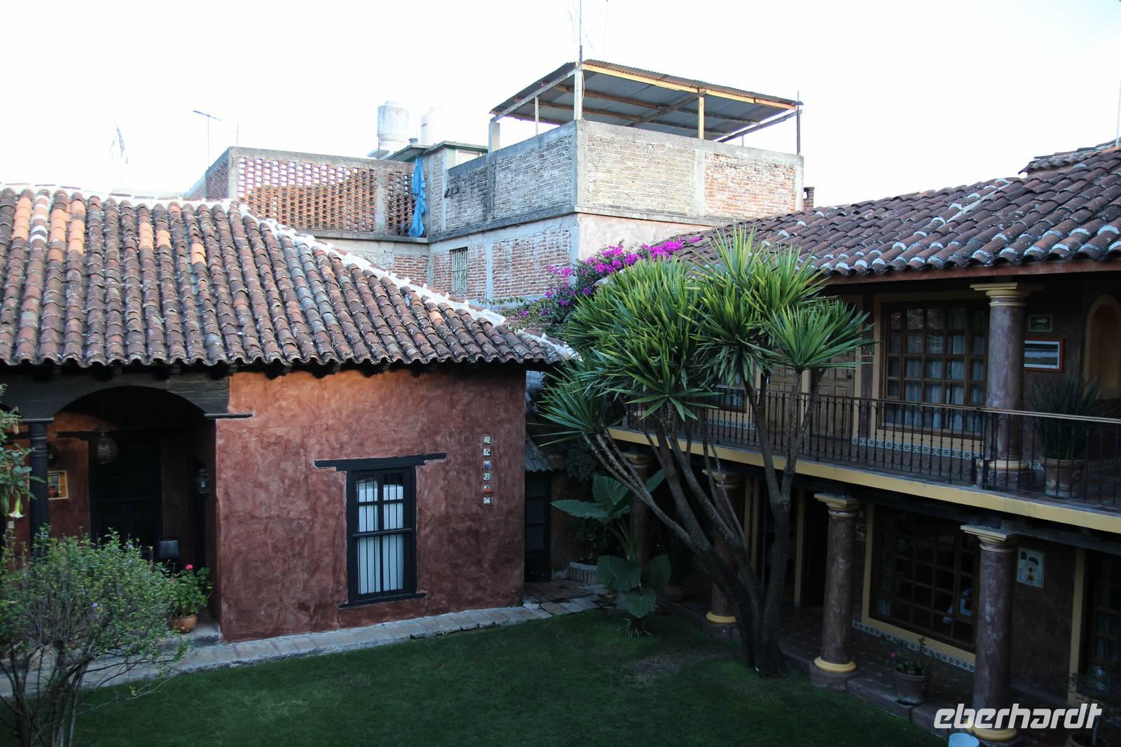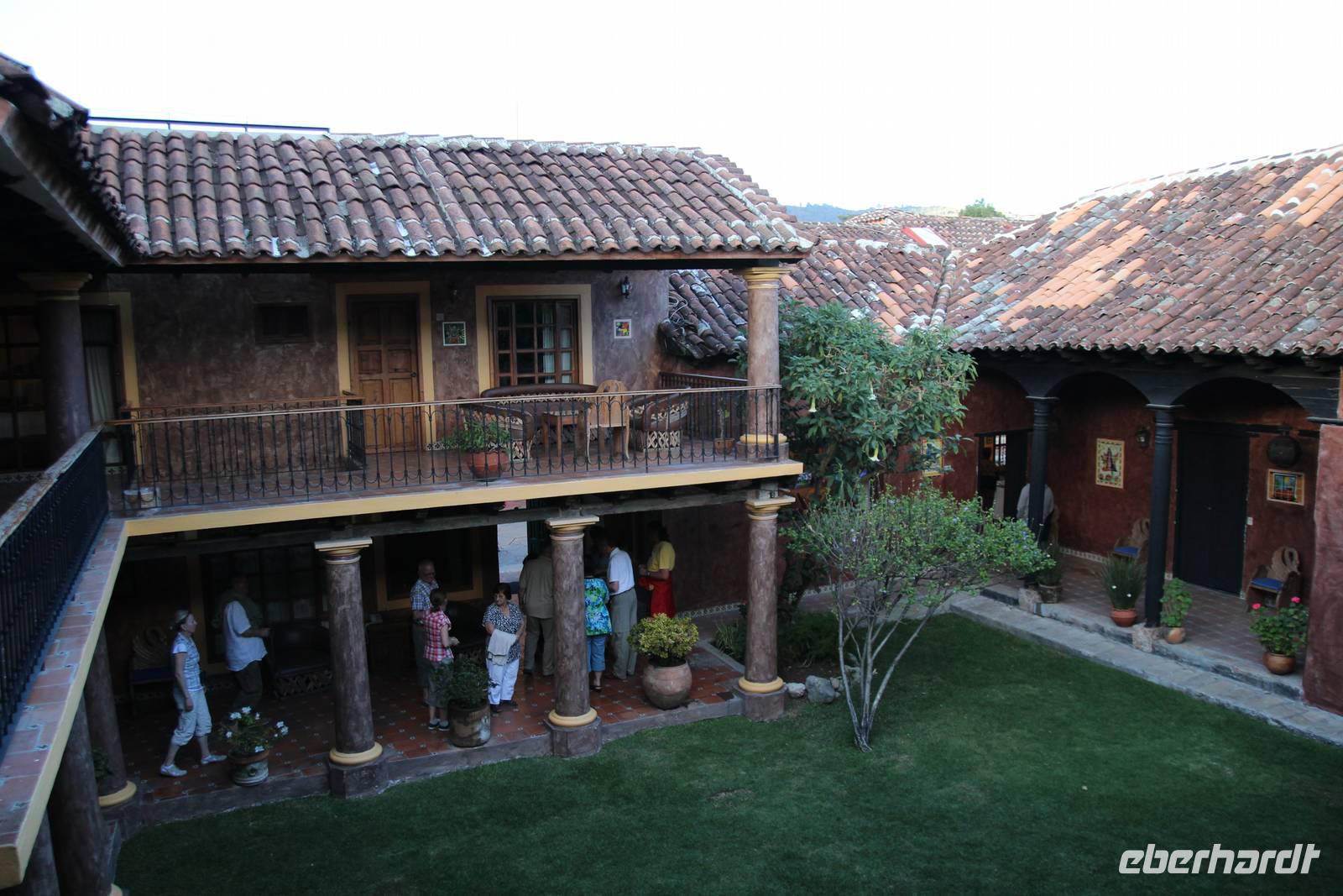 Am späten Nachmittag erreichten wir dann San Cristobal, die letzten Meter zum Hotel mussten wir allerdings zu Fuß zurücklegen, denn durch die engen Gassen passte unser Bus nicht durch. Aber das Gepäck mussten wir zum Glück trotzdem nicht schleppen, sondern das wurde gebracht. Unser Zimmer waren alle über einen schönen Innenhof erreichbar und das Hotel selbst lag mitten in der Stadt, so dass wir noch zu einem gemeinsamen abendlichen Spaziergang durch die Altstadt aufbrachen. So mancher verschätze sich dabei mit der Temperatur, denn durch die hohe Lage von San Cristobal wurde es dann doch recht kühl.