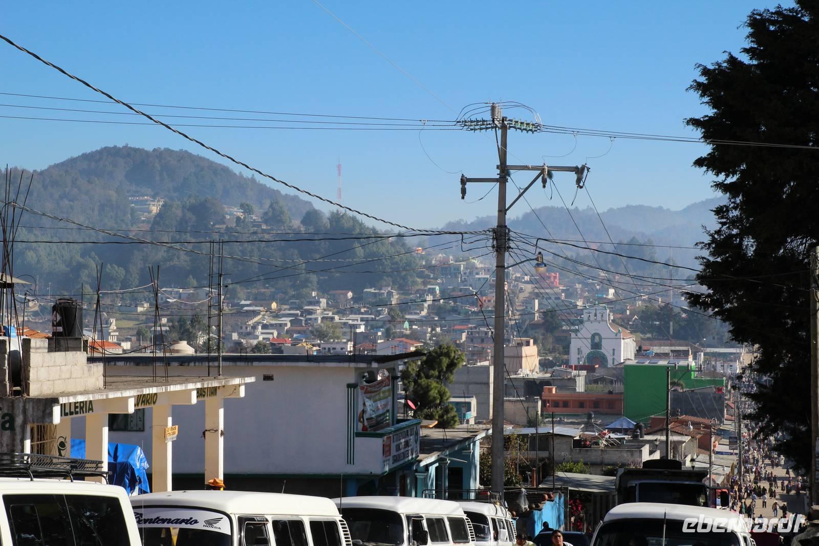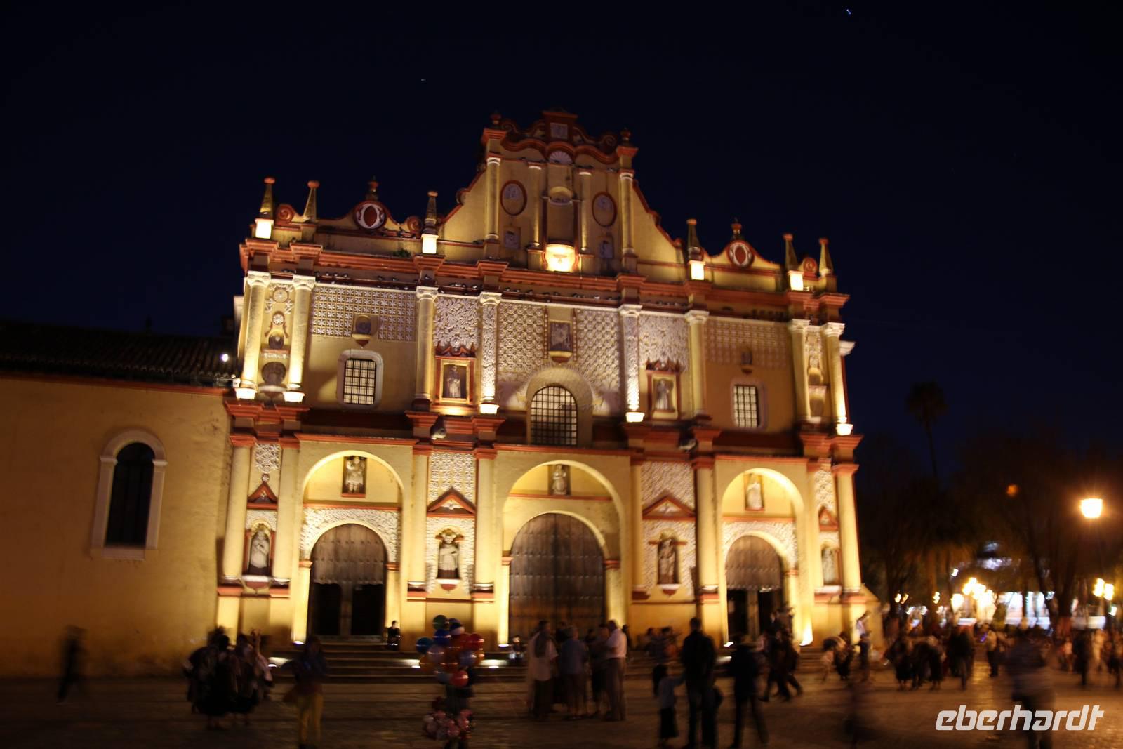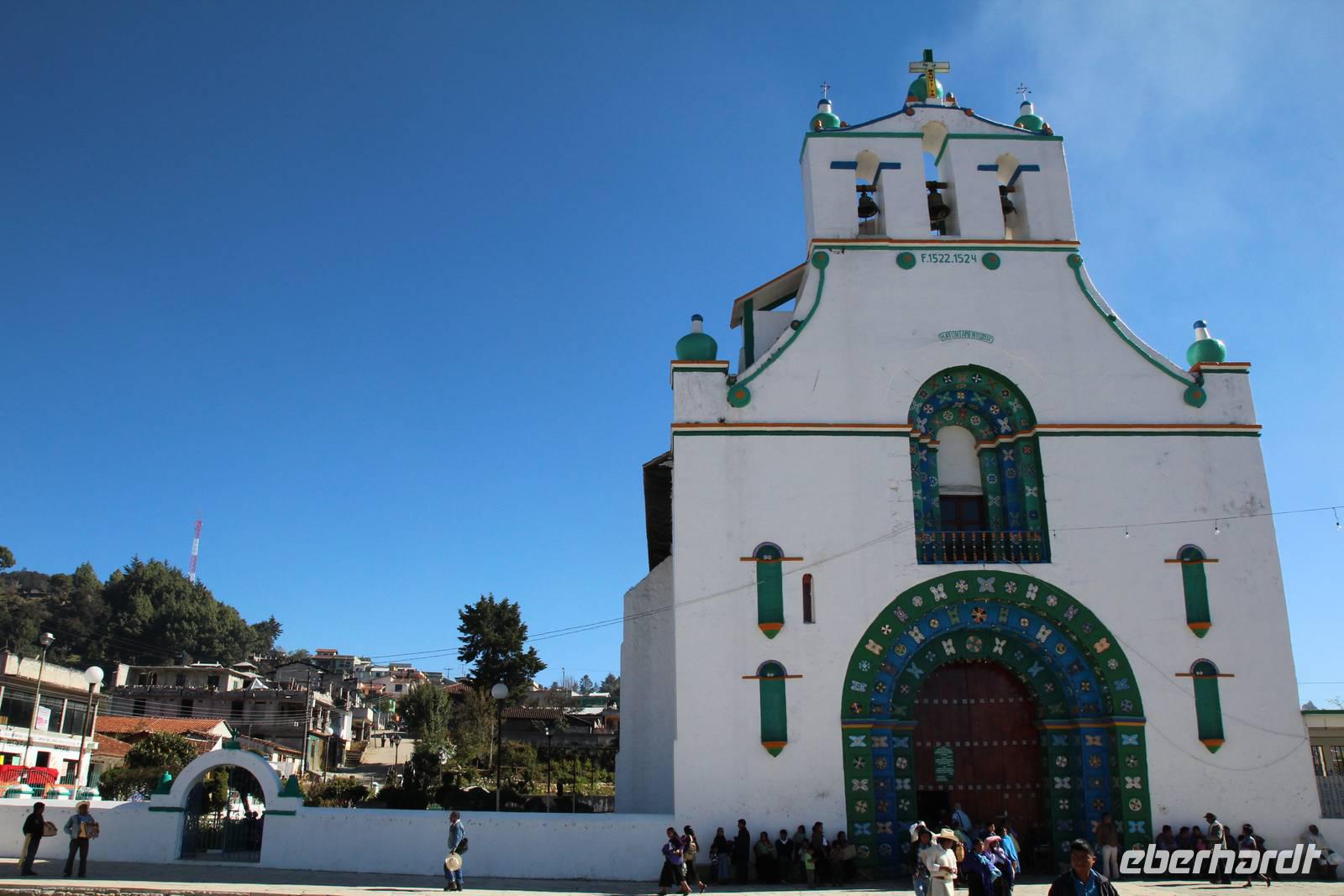 Erfreuliche Umstände beschwerten uns heute beste Erlebnisse, denn in Mexico war Karneval - so auch in San Juan Chamula, unserem ersten heutigen Ziel. In Chamula selbst herrscht eine ganz spezielle traditionelle Kultur und wir mussten dabei so einige Dinge beachten. So ist es hier verboten, die streng gläubigen Chamulas zu fotografieren. In der Kirche ist Fotografieren sogar ganz verboten, so dass wir die Eindrücke aus dieser nur in unseren Köpfen behalten können. Auf den mit Kiefernnadeln bedeckten Boden wurden hier die religiösen Zeremonien durchgeführt. Durch unser respektvolles Auftreten lud uns ein Heiler sogar ein, bis zum Altar vorzutreten. Dies ist nicht jedem einfach gestattet. Wieder auf dem Platz standen wir auf einmal zwischen knallenden Feuerwerkskörpern, die Affenmenschen kreisten gerade um den Zócalo und bei jeder Umrundung wurden wieder die Knallkörper gezündet - ganz typisch für den hiesigen Karneval. Auf dem Weg zurück zum Busparkplatz mussten wir noch ein paar Mal den anlaufenden Chamulas ausweichen.