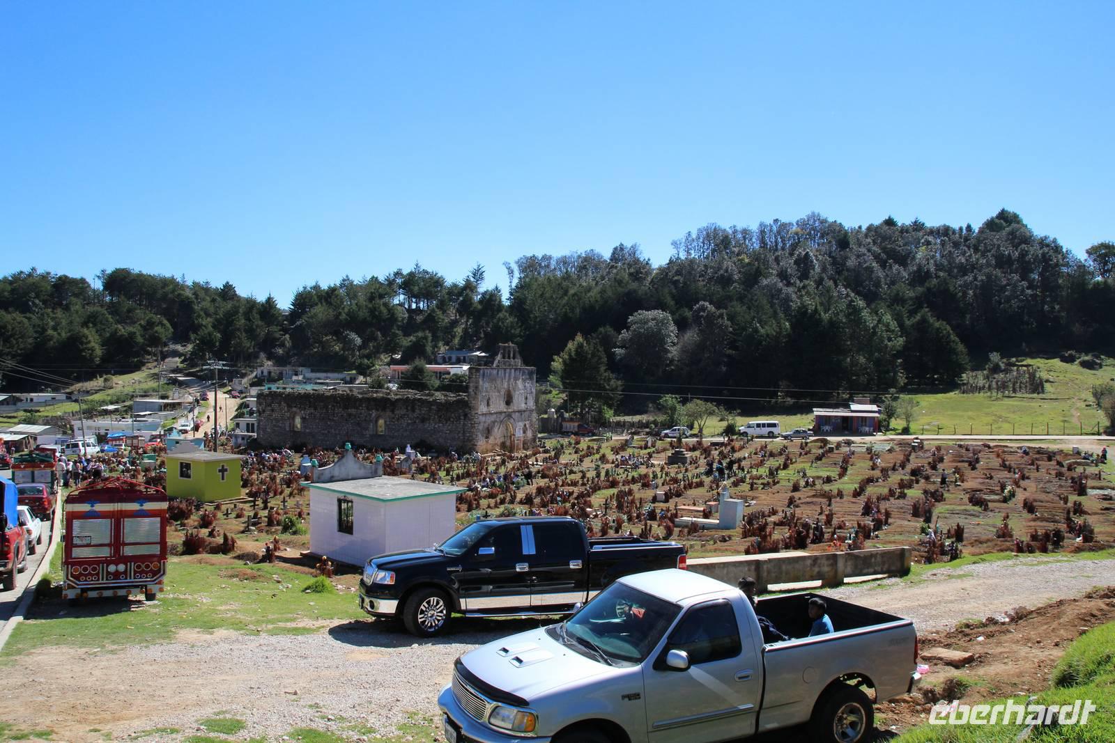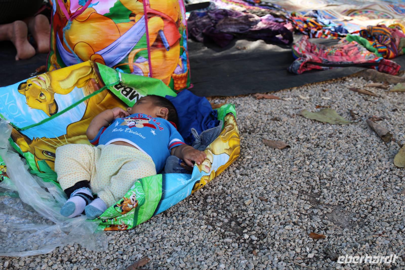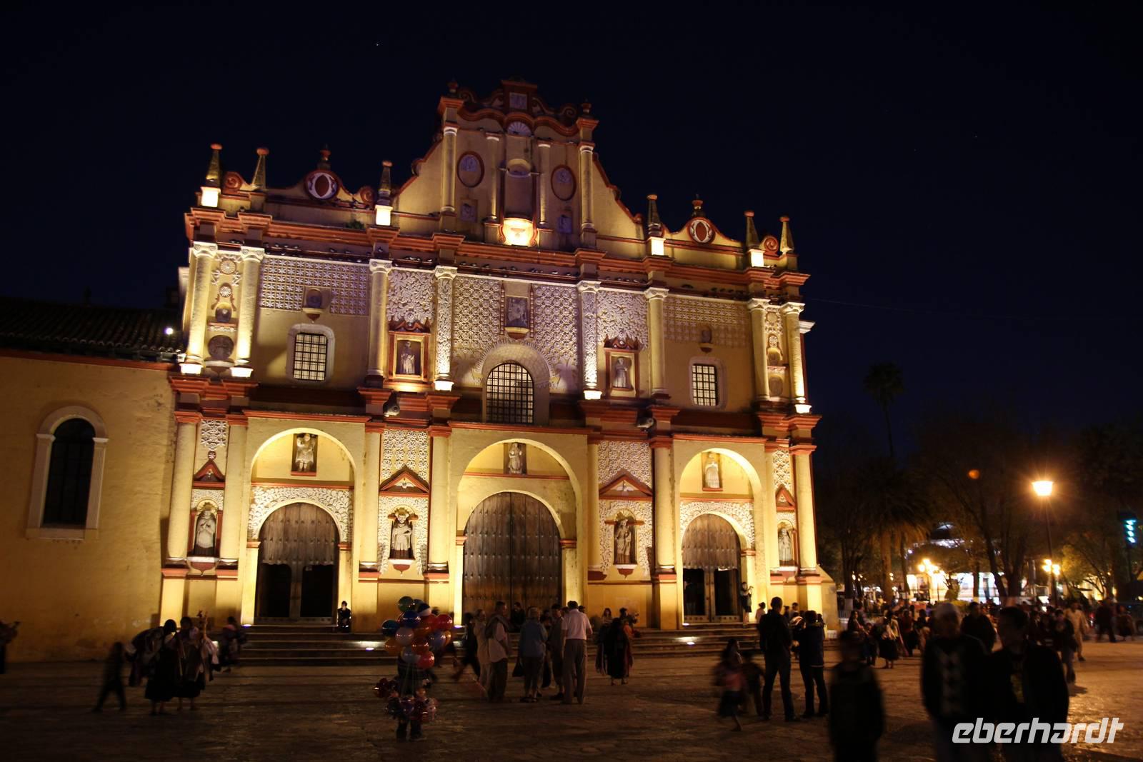 Erfreuliche Umstände beschwerten uns heute beste Erlebnisse, denn in Mexico war Karneval - so auch in San Juan Chamula, unserem ersten heutigen Ziel. In Chamula selbst herrscht eine ganz spezielle traditionelle Kultur und wir mussten dabei so einige Dinge beachten. So ist es hier verboten, die streng gläubigen Chamulas zu fotografieren. In der Kirche ist Fotografieren sogar ganz verboten, so dass wir die Eindrücke aus dieser nur in unseren Köpfen behalten können. Auf den mit Kiefernnadeln bedeckten Boden wurden hier die religiösen Zeremonien durchgeführt. Durch unser respektvolles Auftreten lud uns ein Heiler sogar ein, bis zum Altar vorzutreten. Dies ist nicht jedem einfach gestattet. Wieder auf dem Platz standen wir auf einmal zwischen knallenden Feuerwerkskörpern, die Affenmenschen kreisten gerade um den Zócalo und bei jeder Umrundung wurden wieder die Knallkörper gezündet - ganz typisch für den hiesigen Karneval. Auf dem Weg zurück zum Busparkplatz mussten wir noch ein paar Mal den anlaufenden Chamulas ausweichen.