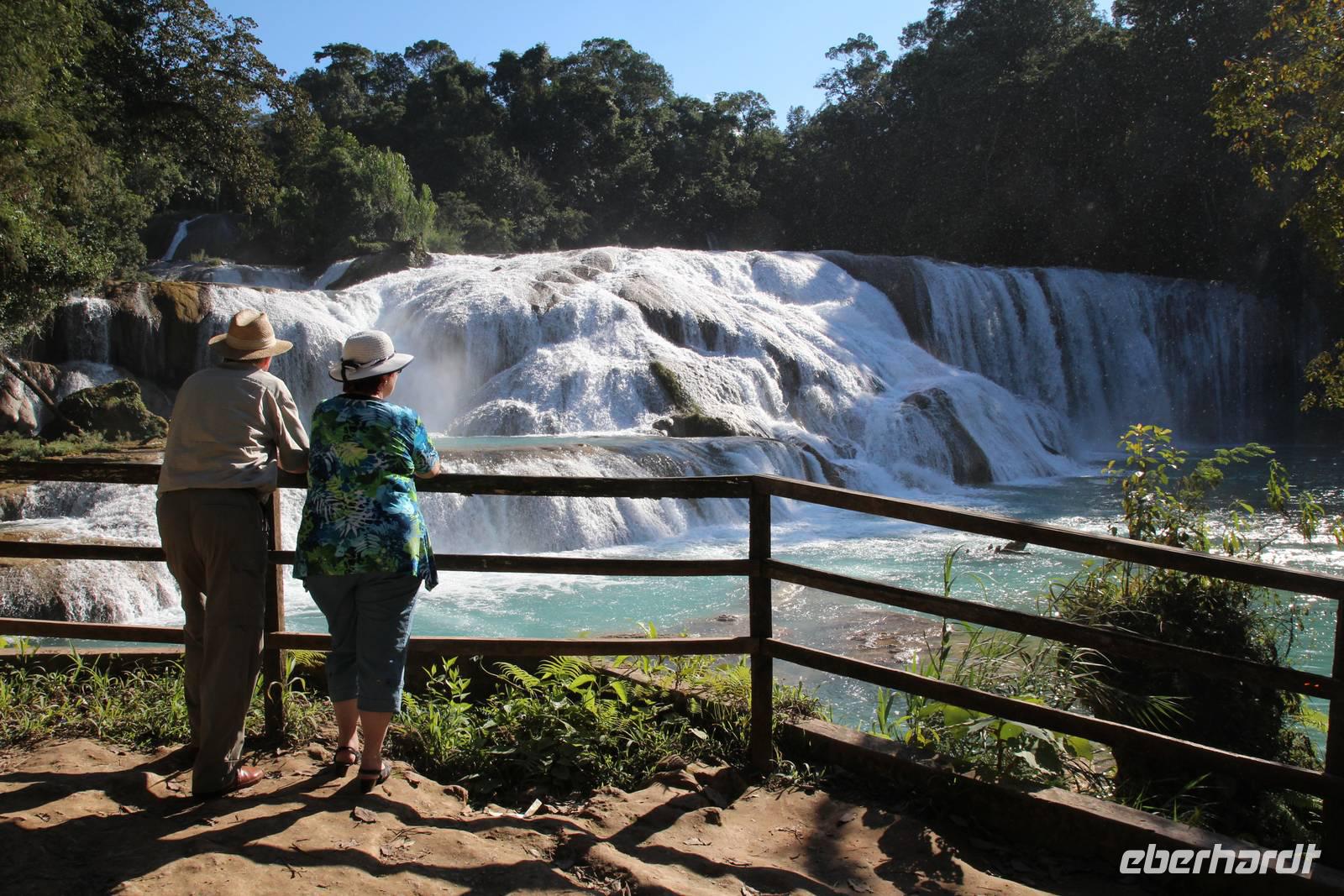 Am Nachmittag erreichten wie dann die Wasserfälle von Agua Azul, die uns mit Ihrer wunderschönen blauen Farbe beeindruckten. Wer gewollt hätte, hätte auch baden gehen können, manch einer zog aber auch lieber einen frischen Fisch vor. Die Besichtigung hatte uns alle ein wenig erschöpft, so dass wir uns erstmal gemeinsam mit Kaltgetränken wieder ein wenig erfrischen mussten.