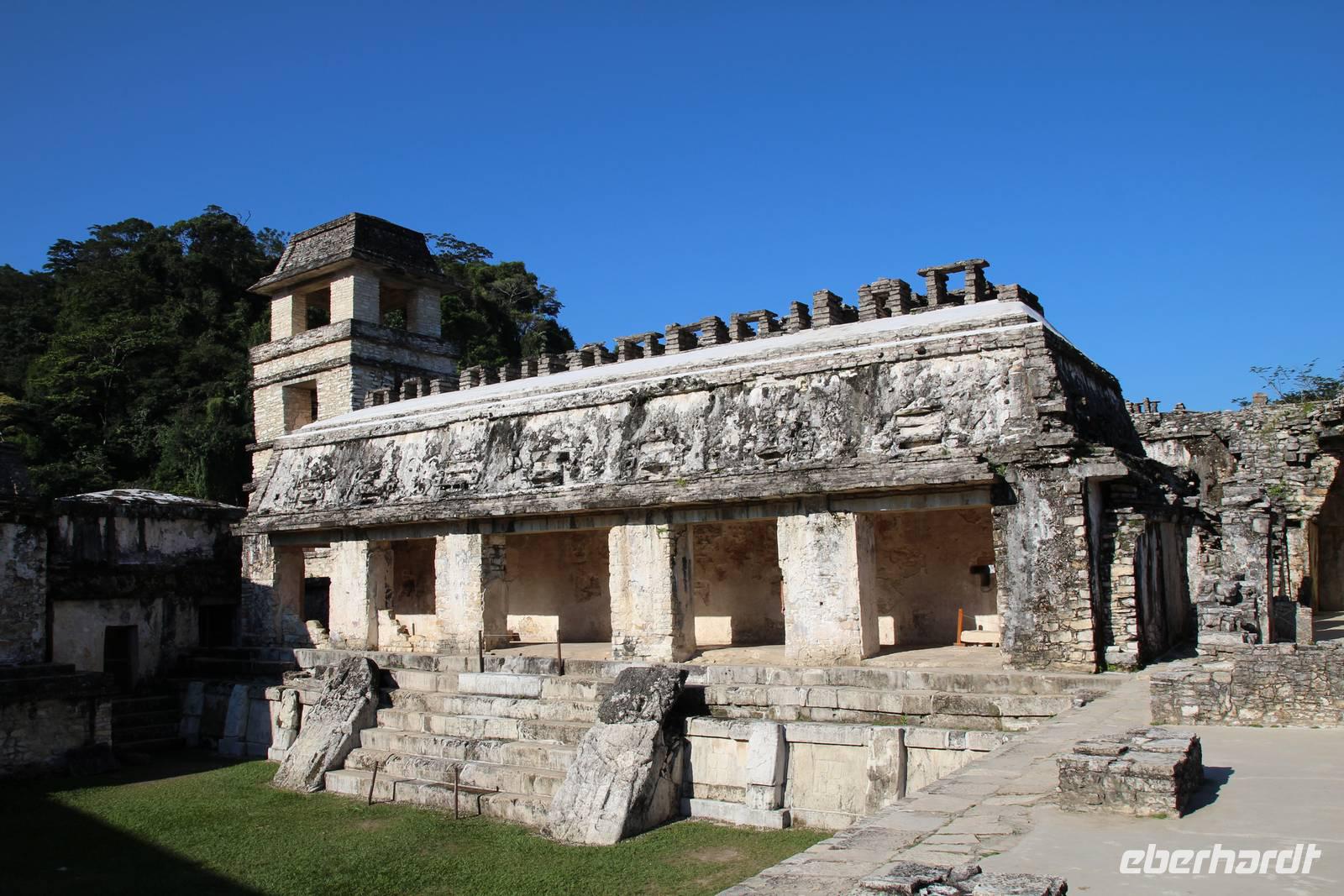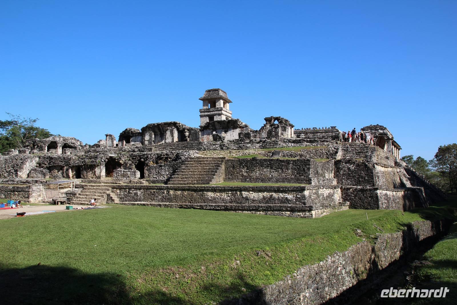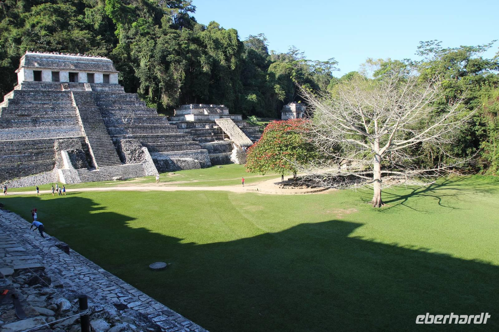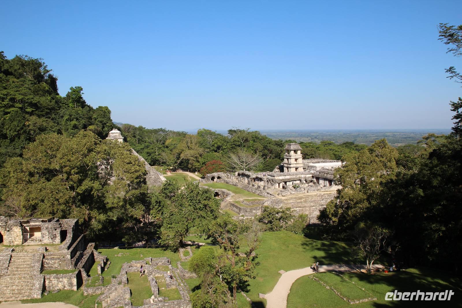 Am frühen Morgen wurden wir durch wunderliche Geräusche geweckt, ein Brüllaffe sehnte die Sonne herbei und nahm dabei auf uns keine Rücksicht. Doch wir wollten sowieso wieder zeitig aus den Betten. Nach einem Frühstück auf der Terrasse ging es auch schon los in den Nationalpark von Palenque. Hier waren wir so ziemlich die ersten, selbst die Hitze war noch nicht da, so dass wir die Anlage in Ruhe erkunden und die alten Gemäuer zum Teil auch noch besteigen konnten.