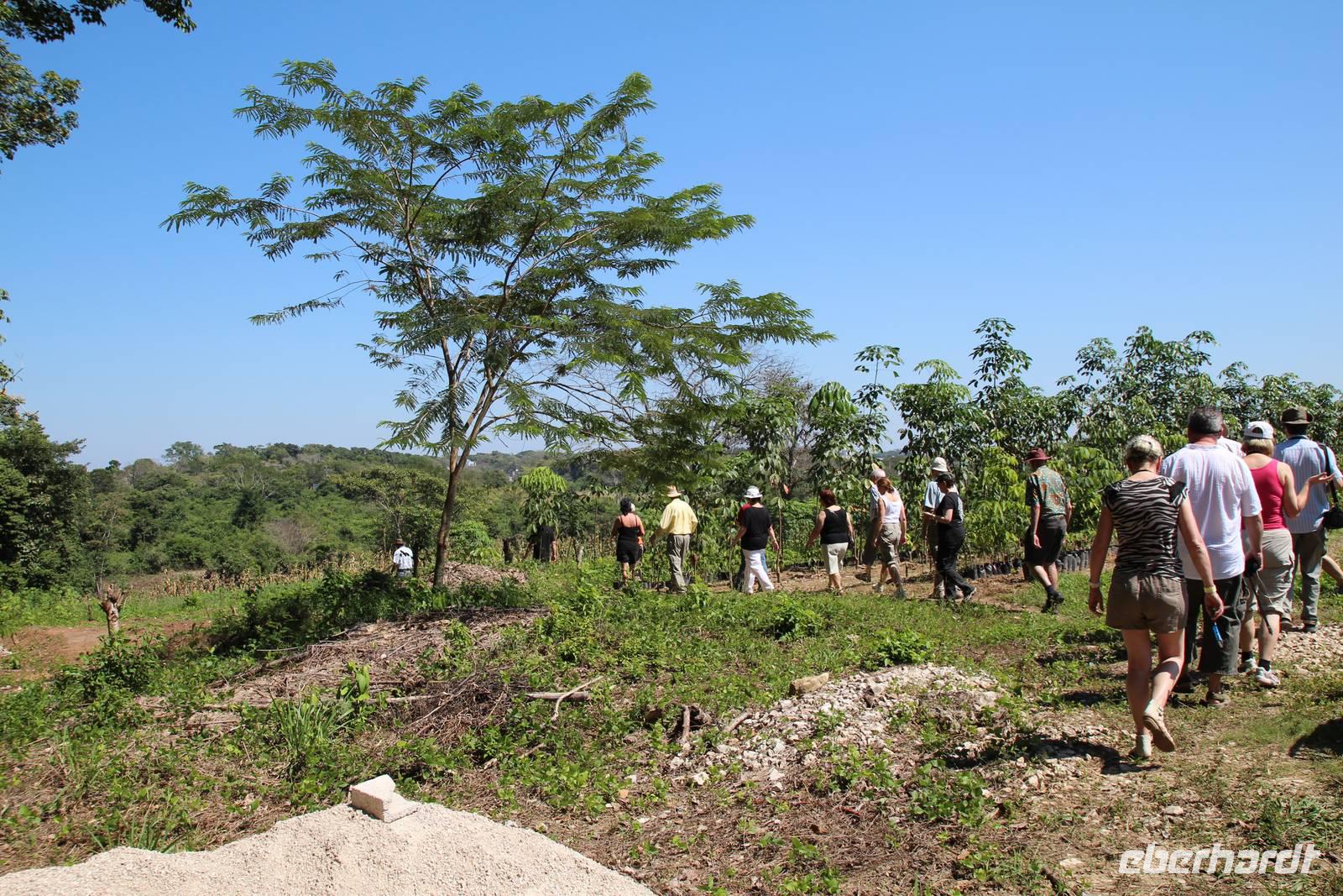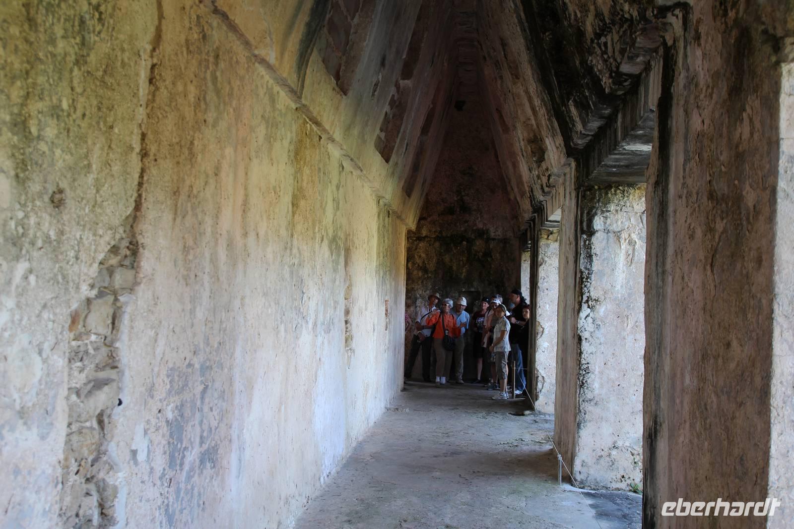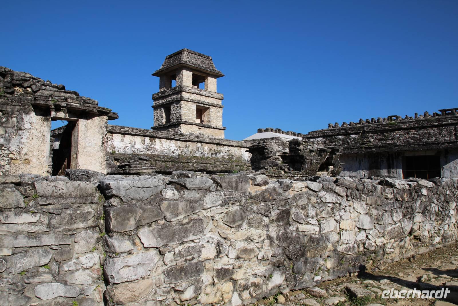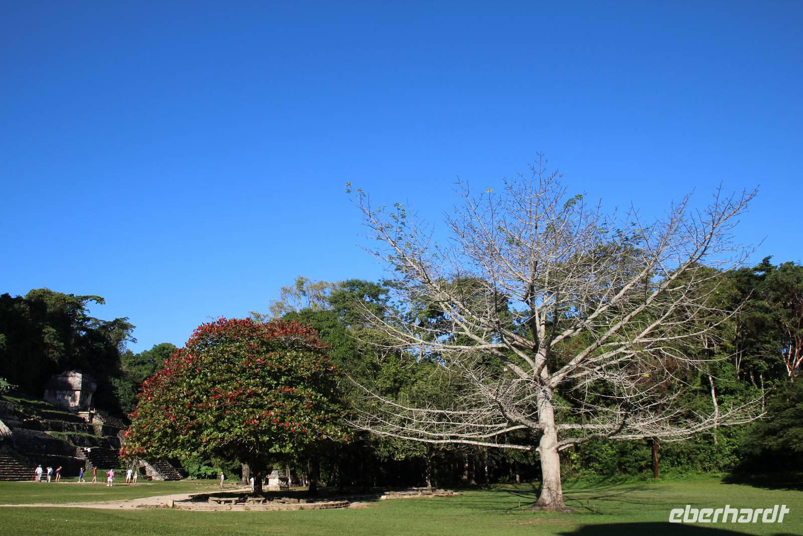 Am frühen Morgen wurden wir durch wunderliche Geräusche geweckt, ein Brüllaffe sehnte die Sonne herbei und nahm dabei auf uns keine Rücksicht. Doch wir wollten sowieso wieder zeitig aus den Betten. Nach einem Frühstück auf der Terrasse ging es auch schon los in den Nationalpark von Palenque. Hier waren wir so ziemlich die ersten, selbst die Hitze war noch nicht da, so dass wir die Anlage in Ruhe erkunden und die alten Gemäuer zum Teil auch noch besteigen konnten.