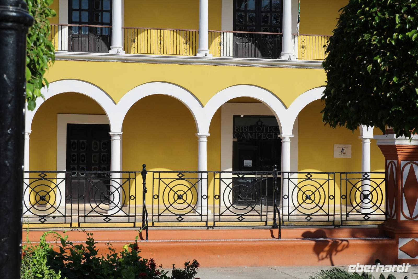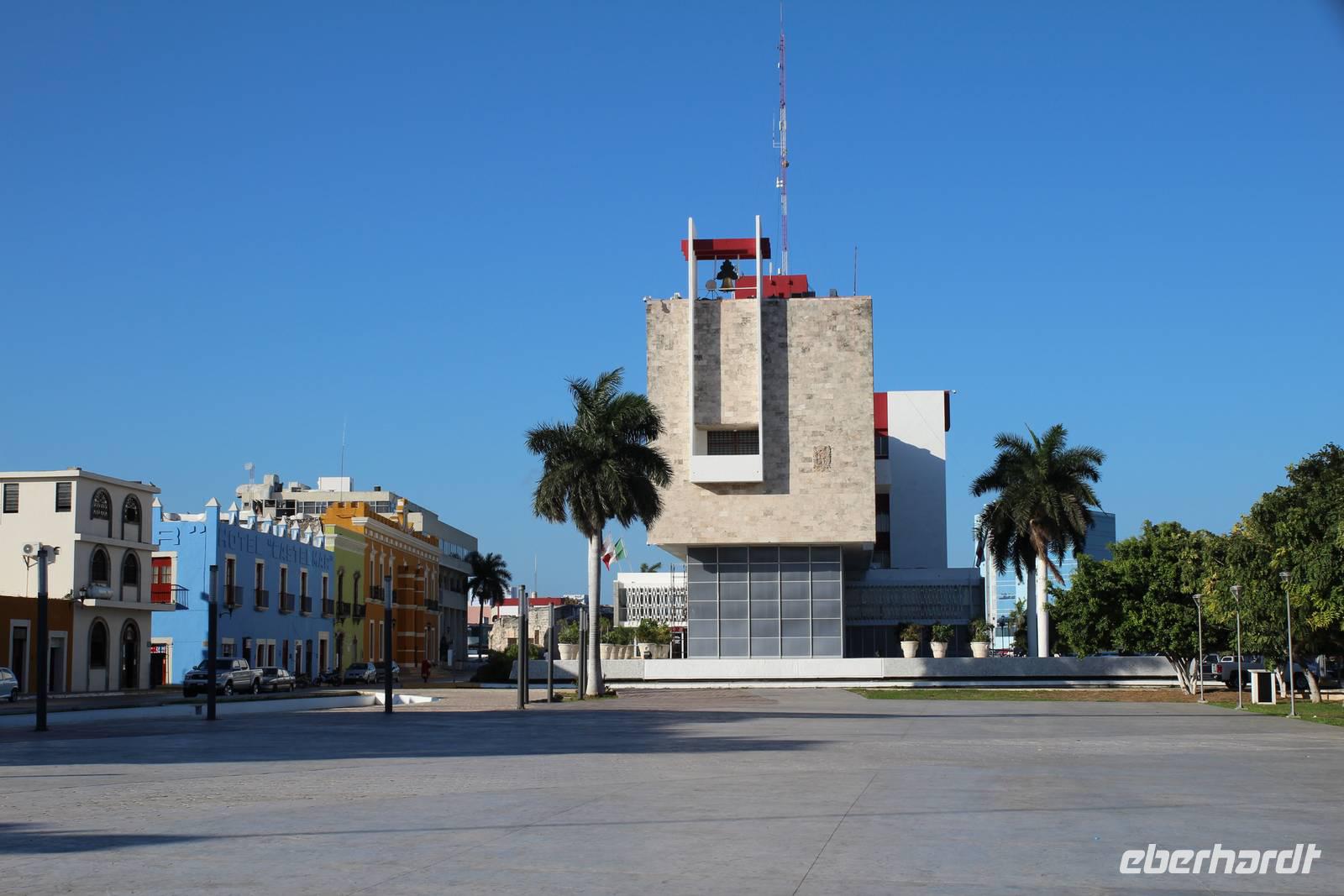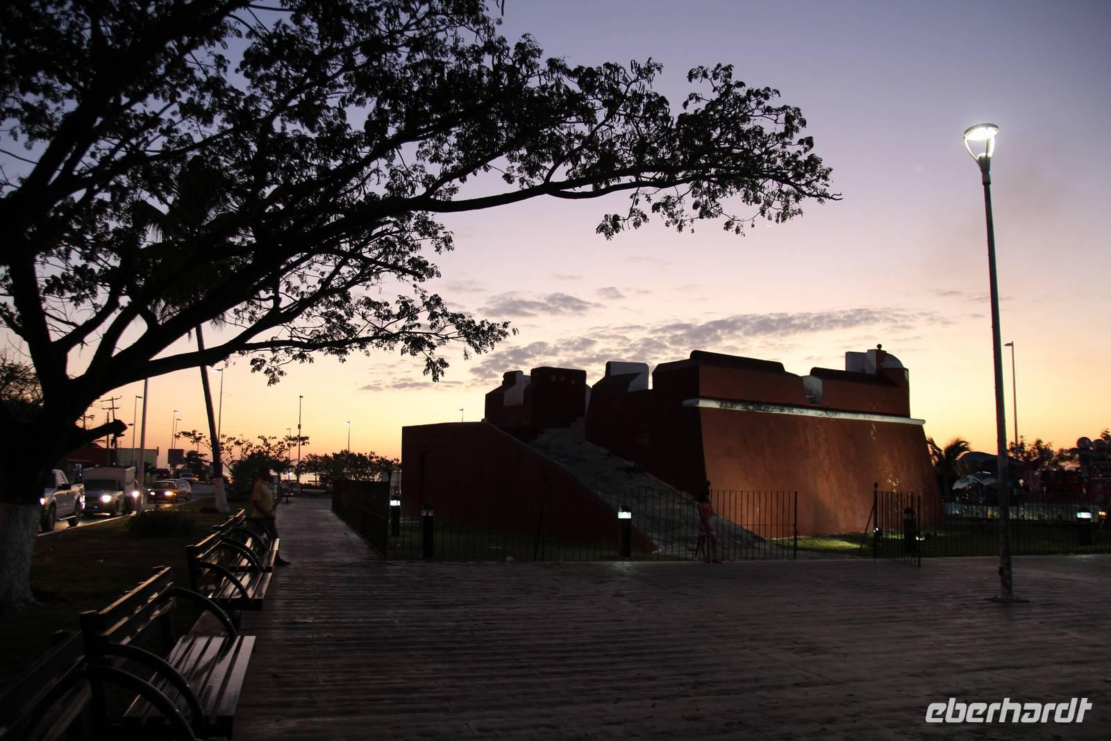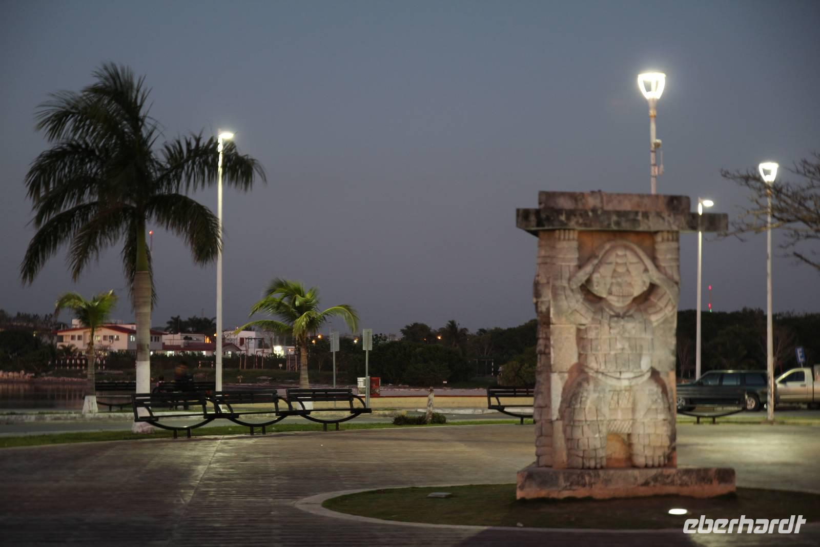 Da wir am vorhergehenden Abend erst spät Campeche erreichten, starteten wir den Tag zunächst mit einem kleinen Stadtrundgang. Wir bestaunten dabei einige Kunstwerke von Jorge Marín, den Zócalo mit der Bibliothek und der Kathedrale und auch die verschiedenen Figuren, die die Stadtgeschichte ein wenig darstellten.