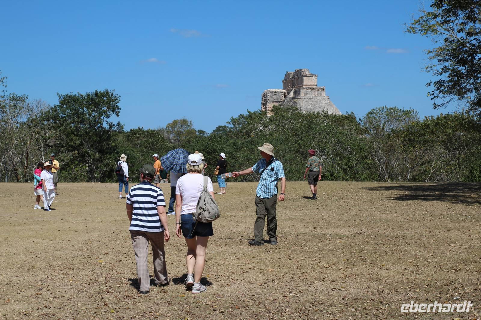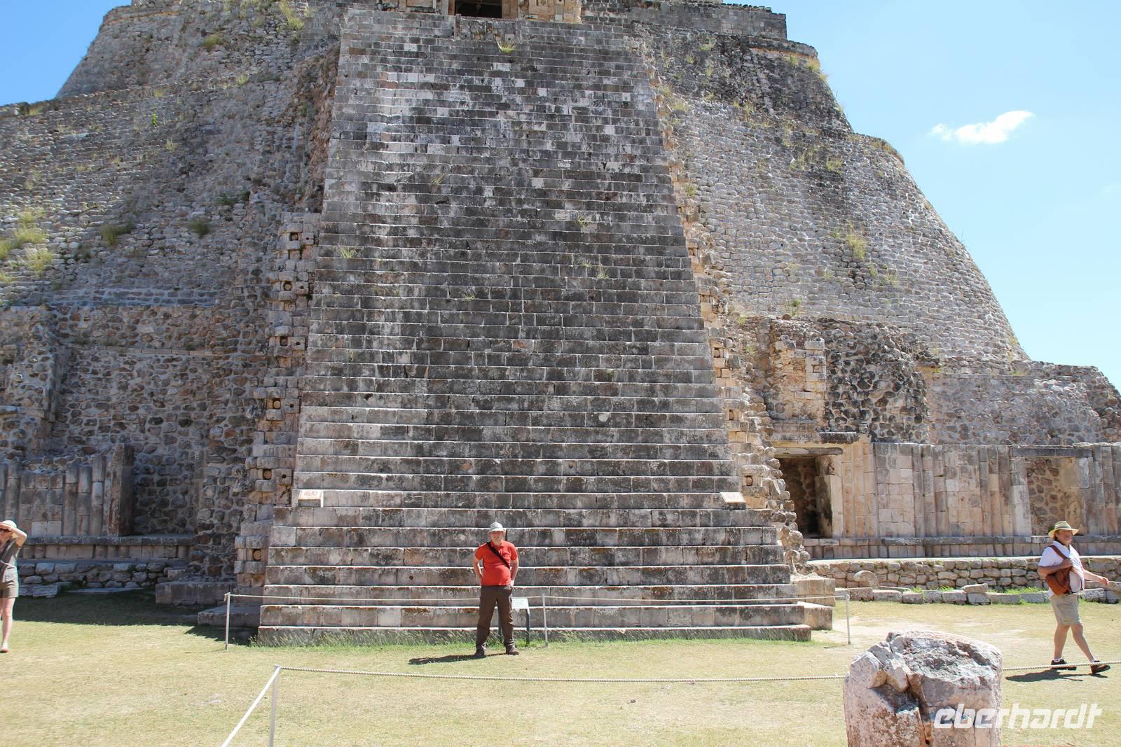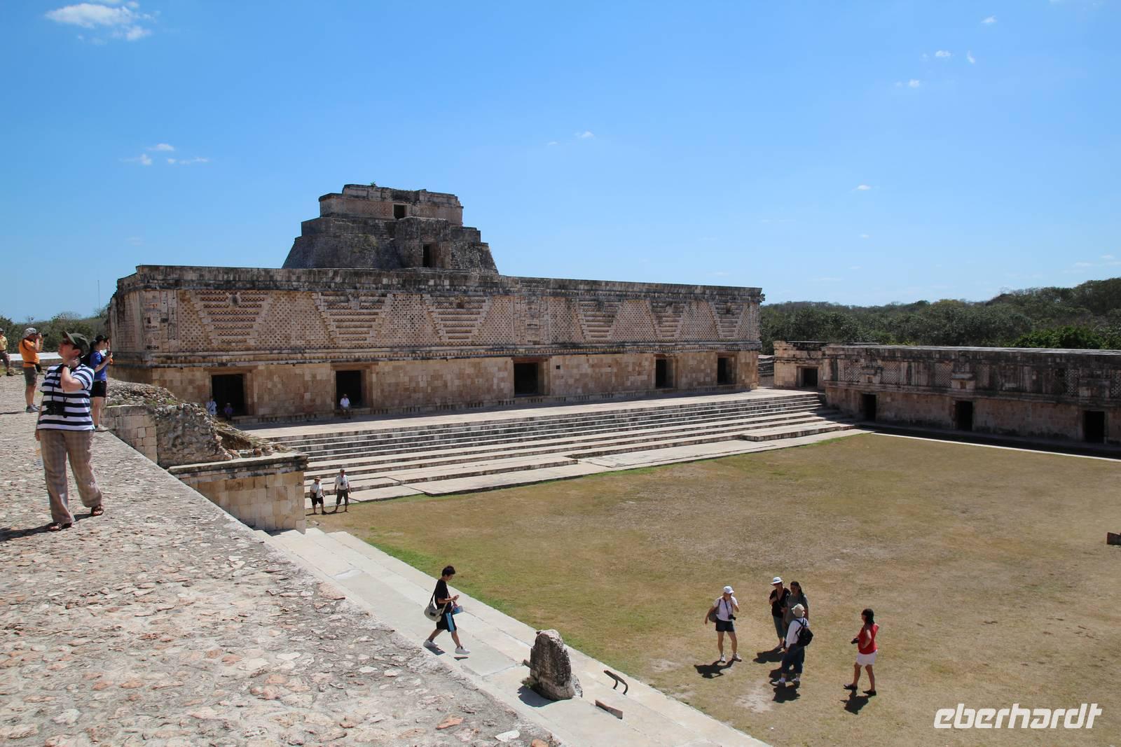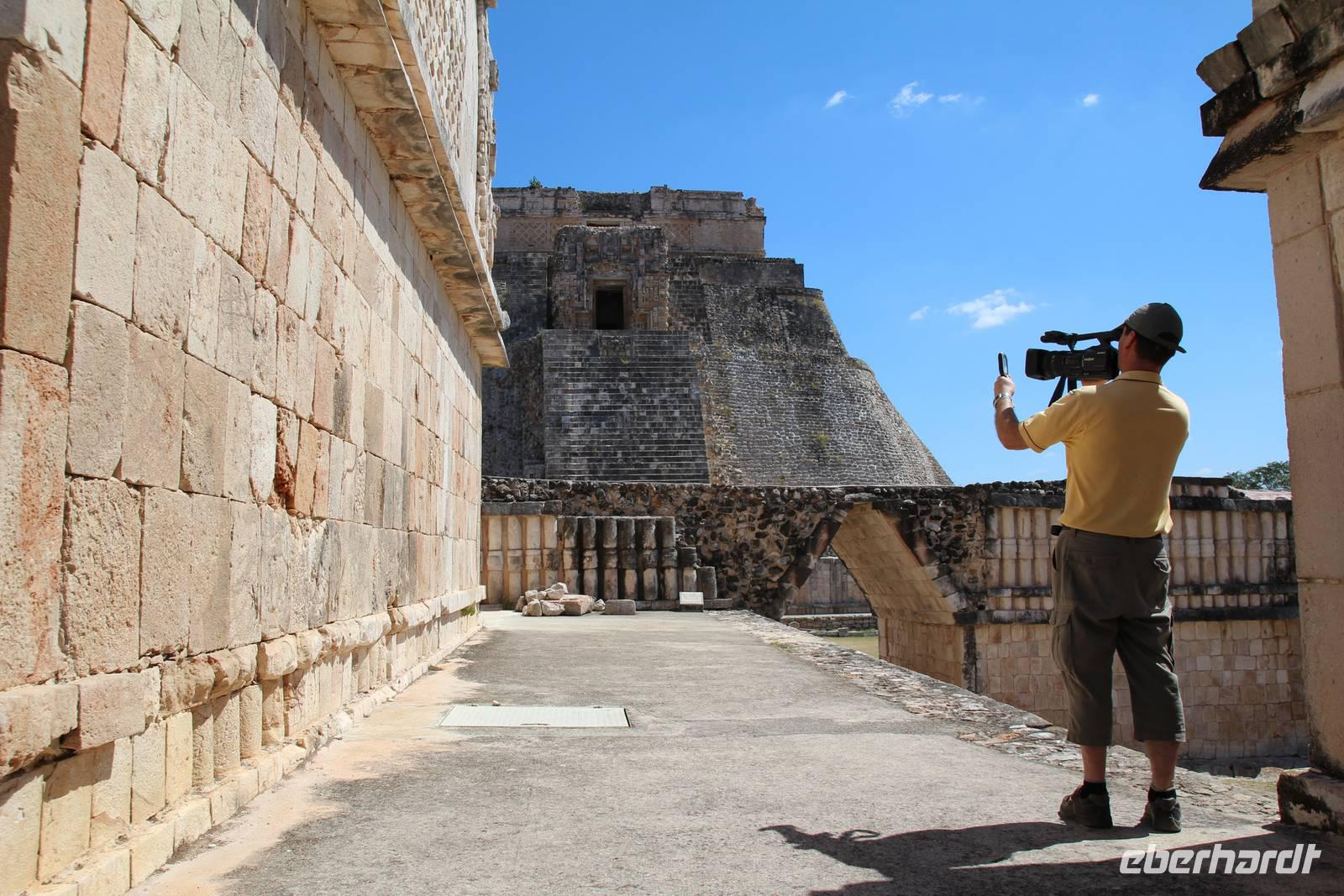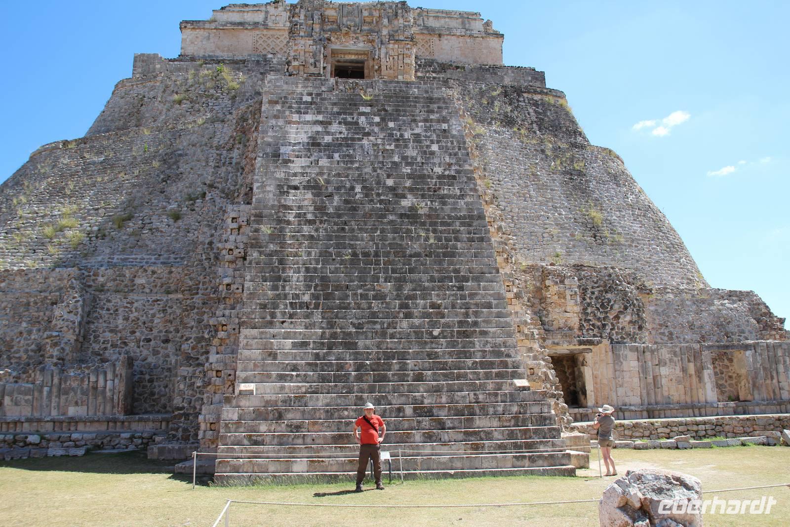 Unser Bus brachte uns dann innerhalb von etwa 2 Stunden weiter nach Uxmal. Ob Pyramide, Kloster oder Ballspielplatz, inzwischen konnten wir die einzelnen Gebäude schon recht gut selbst erkennen. Für die besten Fotos mussten diese natürlich auch wieder erklommen werden.