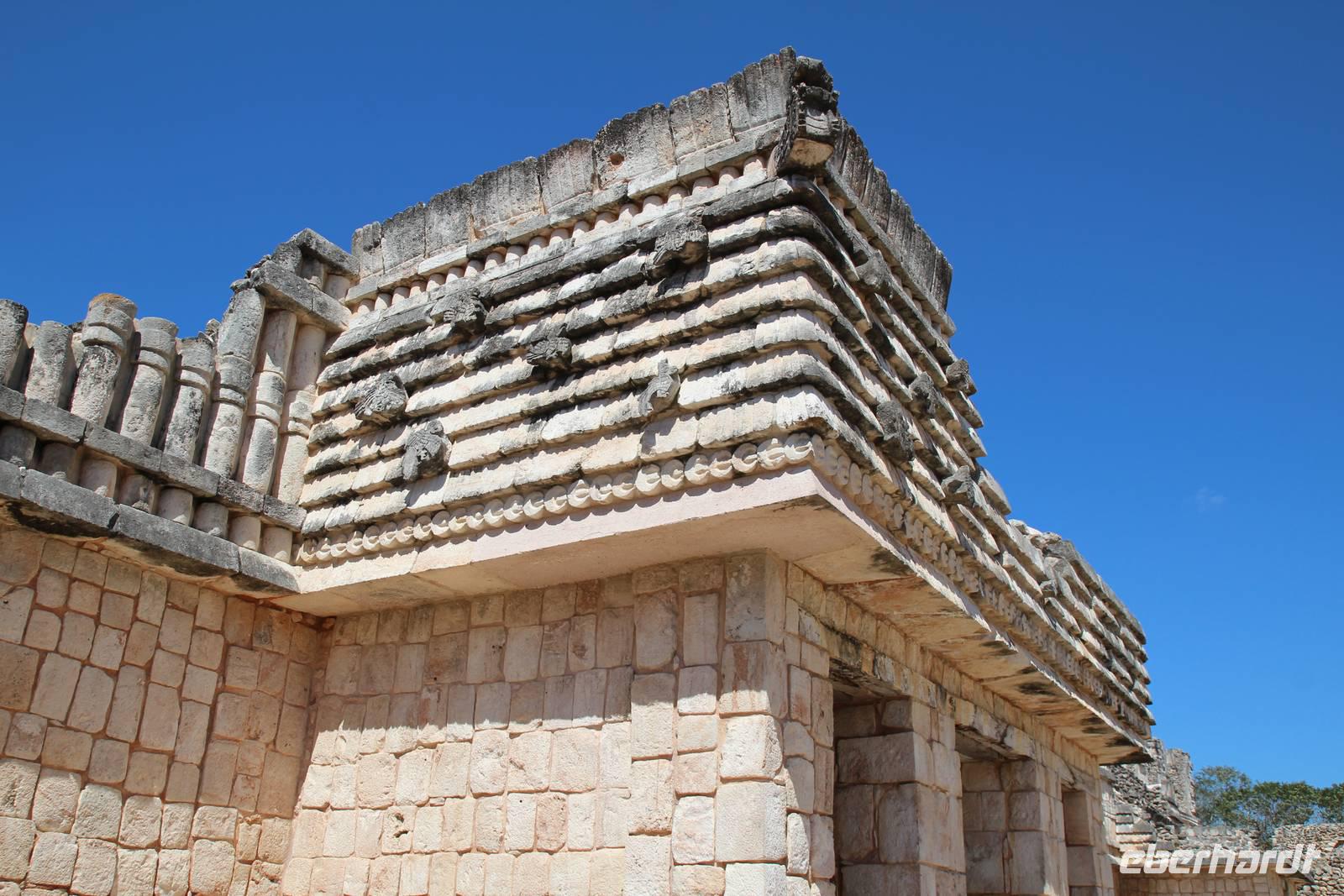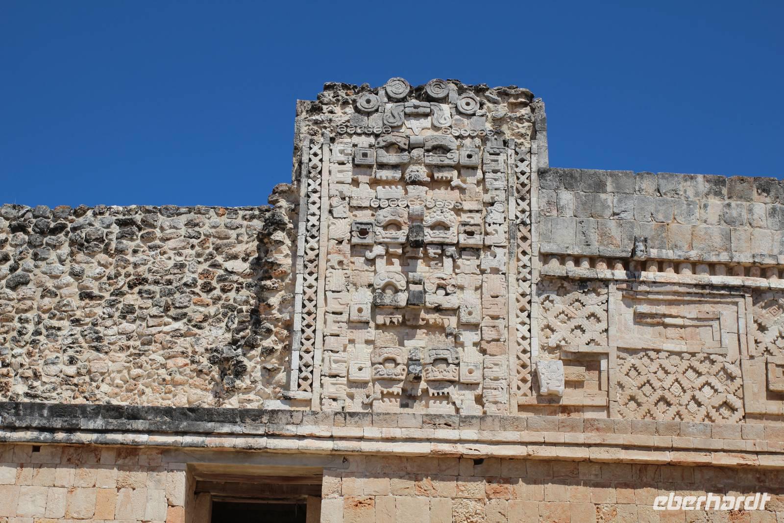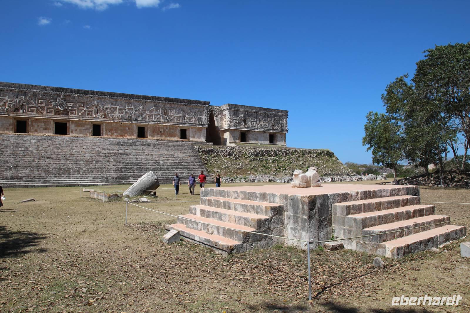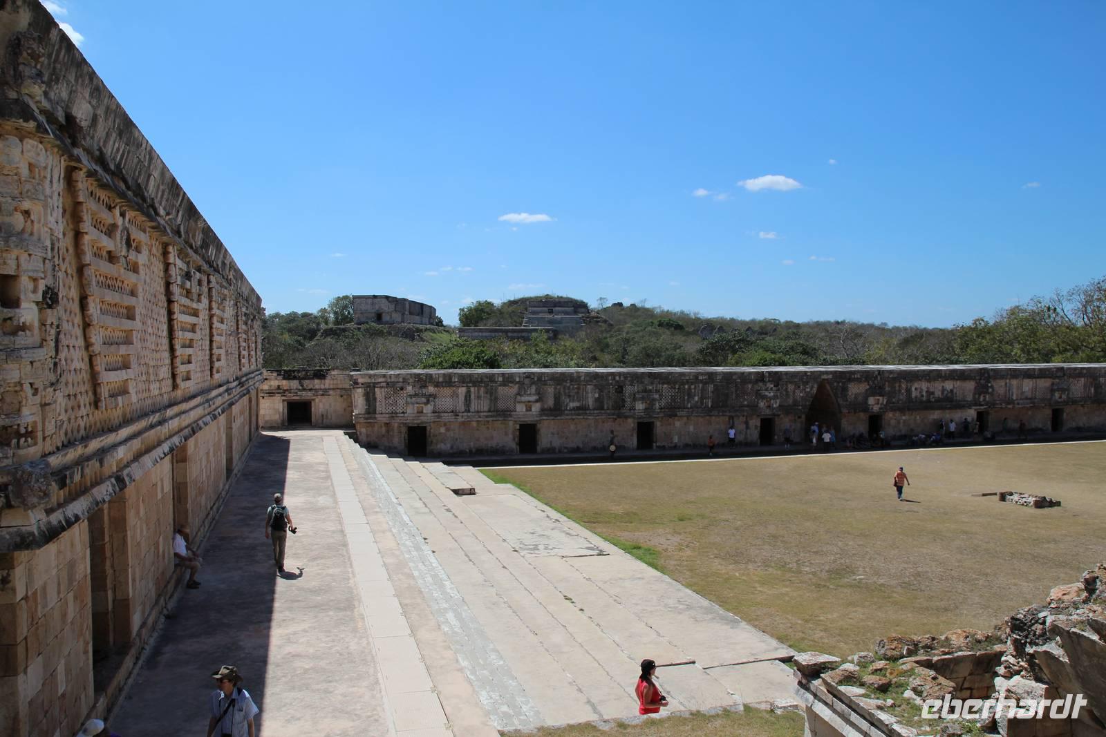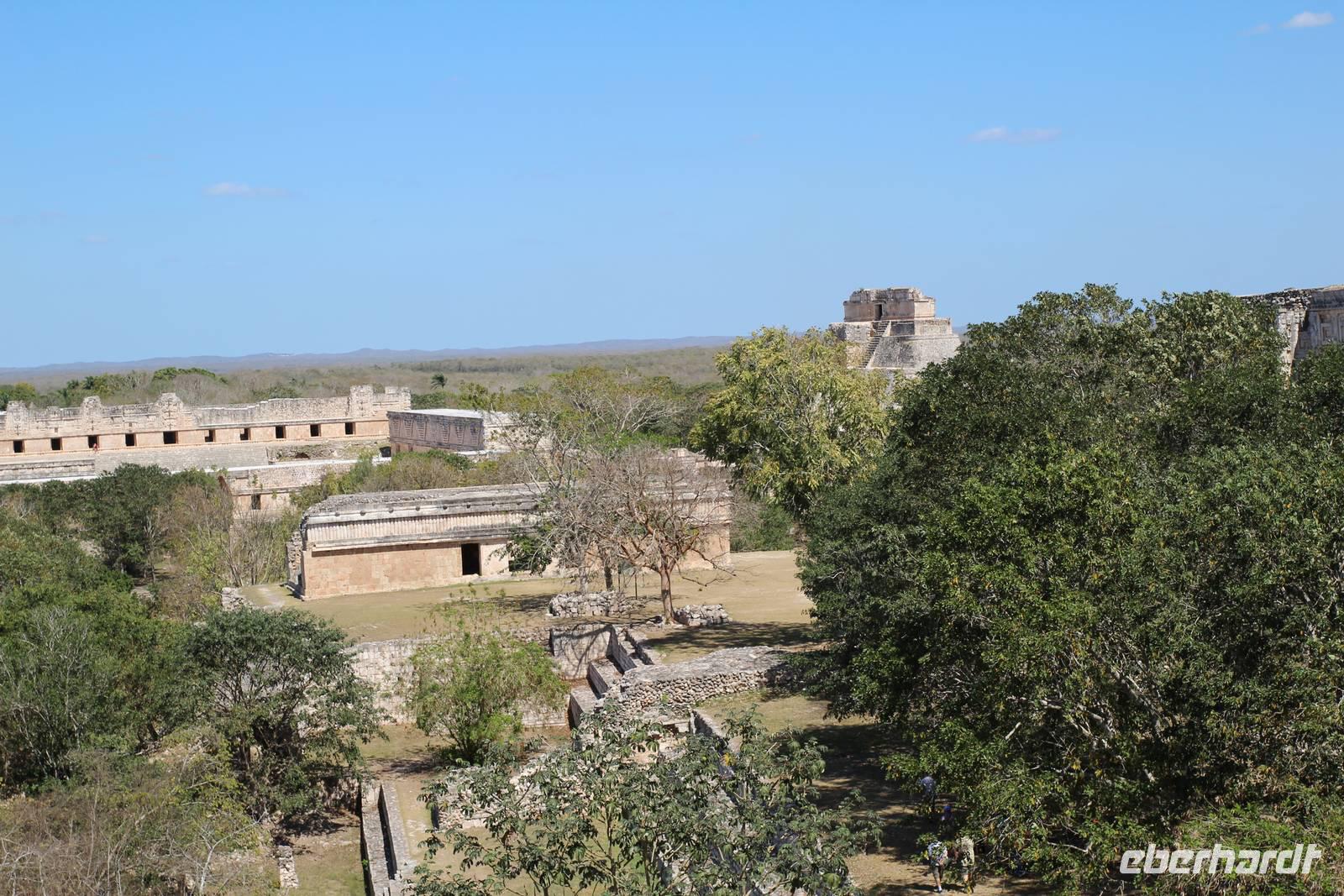 Unser Bus brachte uns dann innerhalb von etwa 2 Stunden weiter nach Uxmal. Ob Pyramide, Kloster oder Ballspielplatz, inzwischen konnten wir die einzelnen Gebäude schon recht gut selbst erkennen. Für die besten Fotos mussten diese natürlich auch wieder erklommen werden.