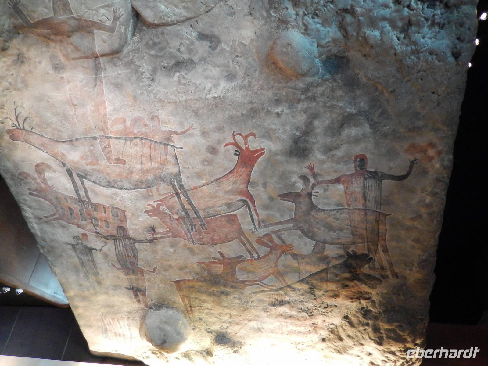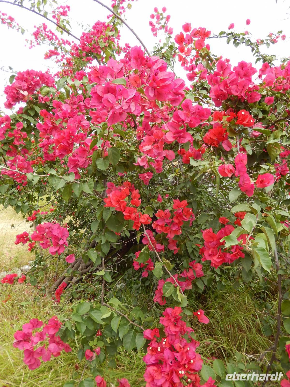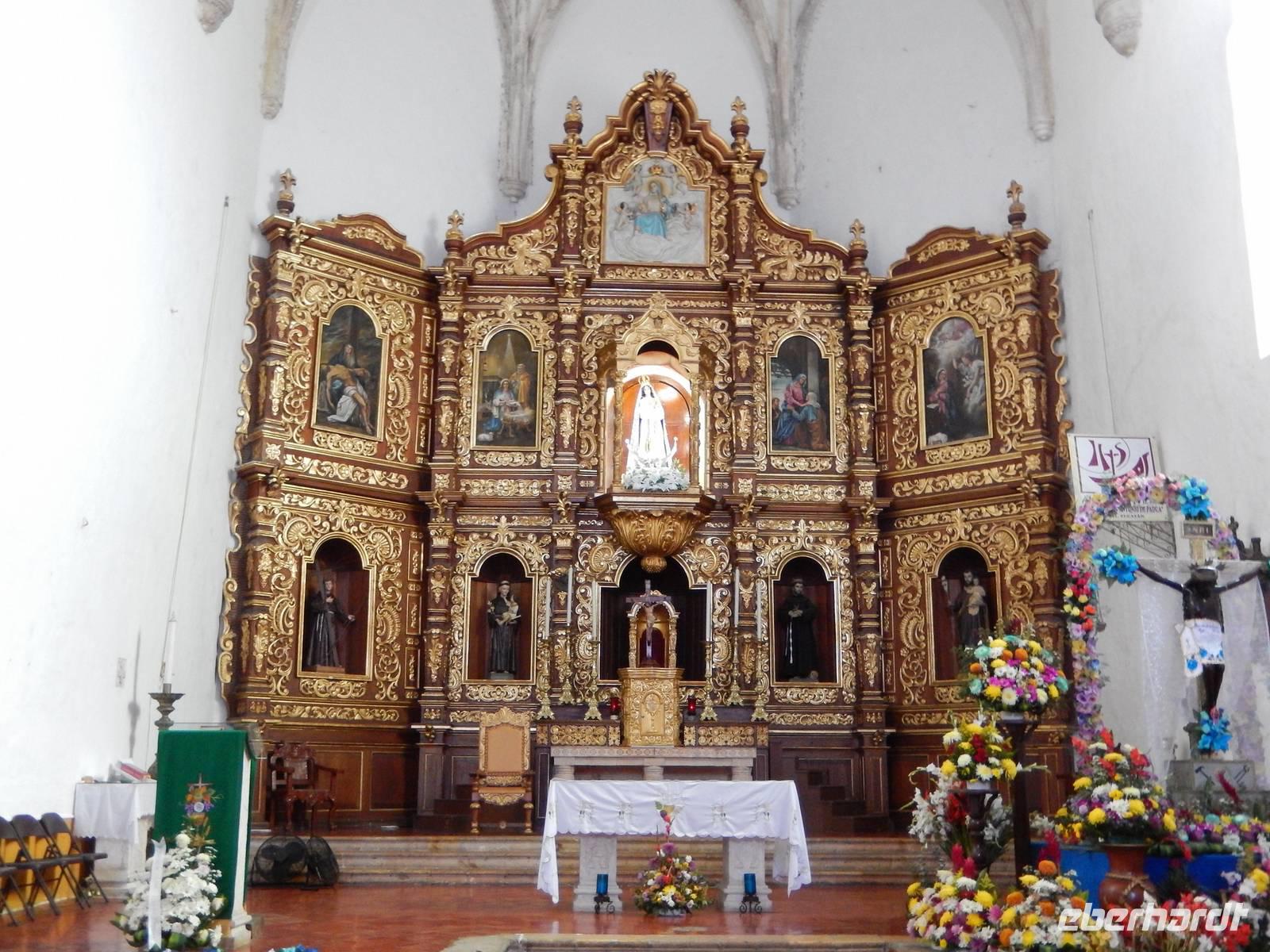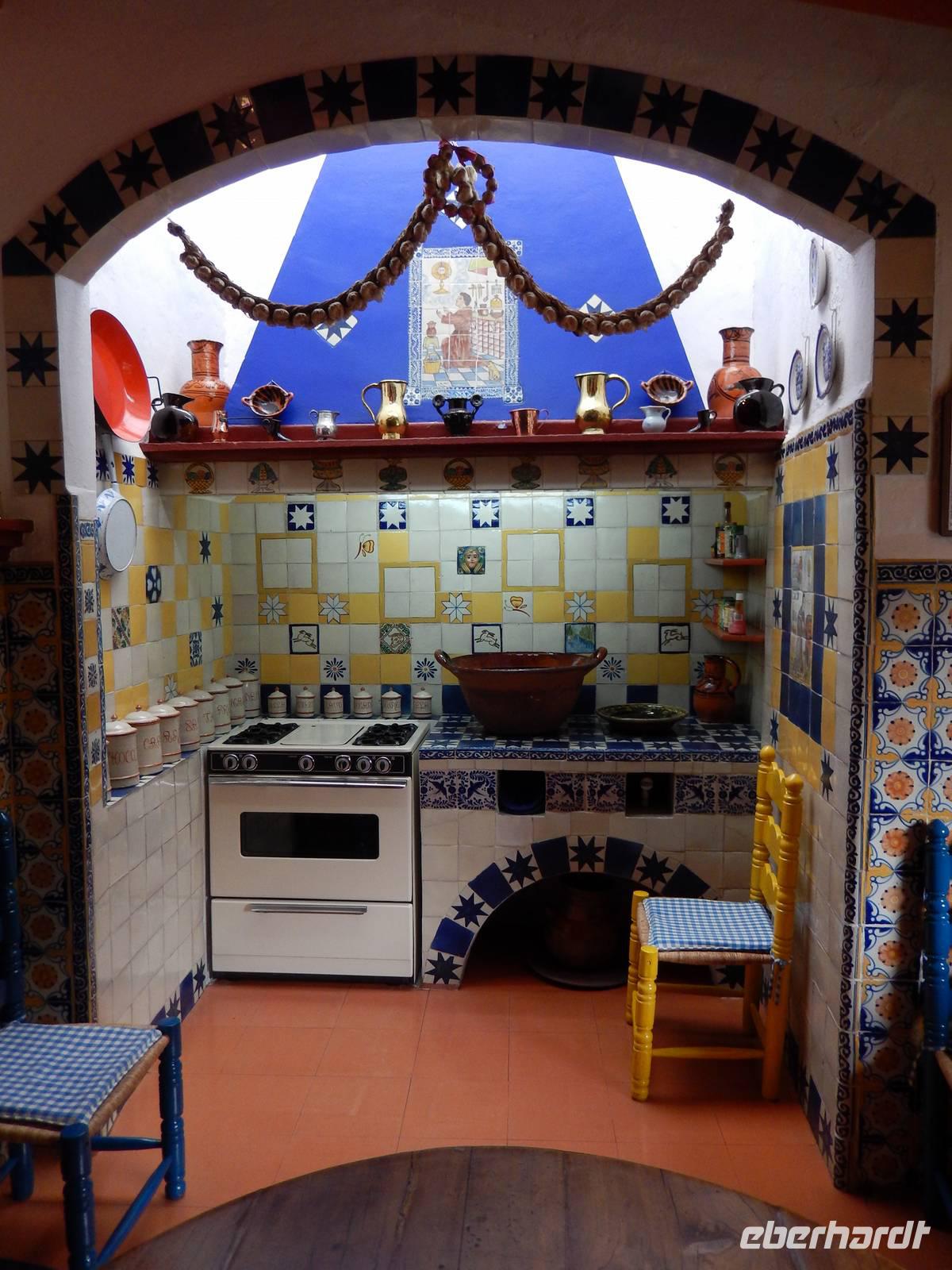 Heute verlassen wir Oaxaca und fahren weiter in Richtung Osten. Kurz hinter der Ortsgrenze stoppen wir bereits wieder in Santa Maria del Tule, einem hübschen kleinen Ort. Seinem scheinbaren Reichtum verdankt der Ort einem Naturphänomen, dem „Baum des Lebens". Diese Zeder ragt 42 Meter in die Höhe und hat einen unglaublichen Umfang von 58 Metern!!! Der Baumriese ist über 2000 Jahre alt und das Wahrzeichen des kleinen Ortes. Nach einer Umrundung fahren wir weiter auf einem Teilstück der berühmten Panamericana bis in das kleine Örtchen Tlacochahuaya. Unser stets umsichtiger Chauffeur Horacio findet in der örtlichen Straße erstmals auf dieser Reise - und das war nicht unbedingt zu erwarten, dass es erst hier passiert - seinen Meister. Wir steigen aus, was uns natürlich nicht stört, und kommen so zu einem kleinen Ortsspaziergang, der uns schließlich zur Kirche des Heiligen Hieronymus führt. Nicht so prunkvoll, aber mit herrlichen, gemalten Wandaltären ausgestattet, entspricht diese Kirche genau der Vorstellung einer Landkirche. Höhepunkt ist allerdings die Barock-Orgel, die wir mit Ruths Charme und der Freundlichkeit des Kirchendieners sogar eigenständig in Augenschein nehmen dürfen. Anschließend fahren wir weiter nach Teotitlan del Valle und besuchen die Teppich-Weberei von Familie Hernandez. Hier wird uns ausführlich und sehr anschaulich der Weg von der schmutzigen Schafswolle bis zum bunt schillernden Wandteppich erklärt. Alle Familienmitglieder sind hier eingespannt, sogar die Kinder ab ca. 7 Jahre. Wir lernen, wie die Farben Indigo und Karminrot entstehen, Frau Müller erhält sogar ein einzigartiges Handkunstwerk, wie gewaschen und gewebt wird. Außerdem überreichen wir eine DVD, die ein Eberhardt-Gast bei einer letzten Reise nach Mexiko aufgenommen hat. Das rührt die Familie in allen drei Generationen fast zu Tränen. Nach den abschließenden Einkäufen fahren wir nach Mitla, in die Stadt der Königsgräber. Wir schauen uns die zapotekische, archäologische Fundstätte an und schlendern noch etwas über den Markt. Für die Gäste die wollen, hat Ruth inzwischen einen kleinen Mittags-Snack versorgt - und nicht nur das, wir bekommen auch alle den „Orden der Puppe am Strick" verliehen - und da wir sowieso schon hinter dem Zeitplan liegen, essen wir direkt an Bord und starten in Richtung Tehuantepec. Nicht lange, denn einen Programmpunkt haben wir noch: den Besuch einer Mezcal-Destillerie. Diesen Besuch machen wir in Matatlan bei „El Rey Zapoteco". In rustikaler Umgebung sehen wir wie die Herzen der dafür gezüchteten Agaven angeröstet werden, anschließend die Maische verarbeitet und dann der Alkohol gewonnen wird. Natürlich dürfen wir auch jede Menge Sorten bzw. Geschmacksrichtungen probieren und der eine oder andere nimmt auch eine kleine Ration mit. Nun heißt es nochmal knapp 200 Kilometer bewältigen, bevor wir unser heutiges Übernachtungsziel erreichen. Die Fahrt nach Tehuantepec führt uns über eine schier endlose Serpentinenstraße hinab bis auf Meeresniveau. Die ersten Palmen sind zu sehen und dem zunehmenden Wind folgen auch zunehmende Temperaturen, so dass bei Anknft im Hotel erstmals tropische Gefühle aufkommen. Wir wohnen heute in einem schönen Hotel und genießen trotz relativ später Ankunft unser gemeinsames Essen, bevor jeder seinen Lieblingsbeschäftigungen nachgeht...