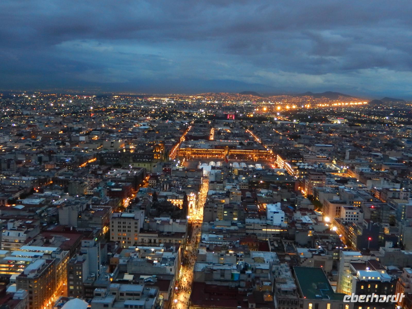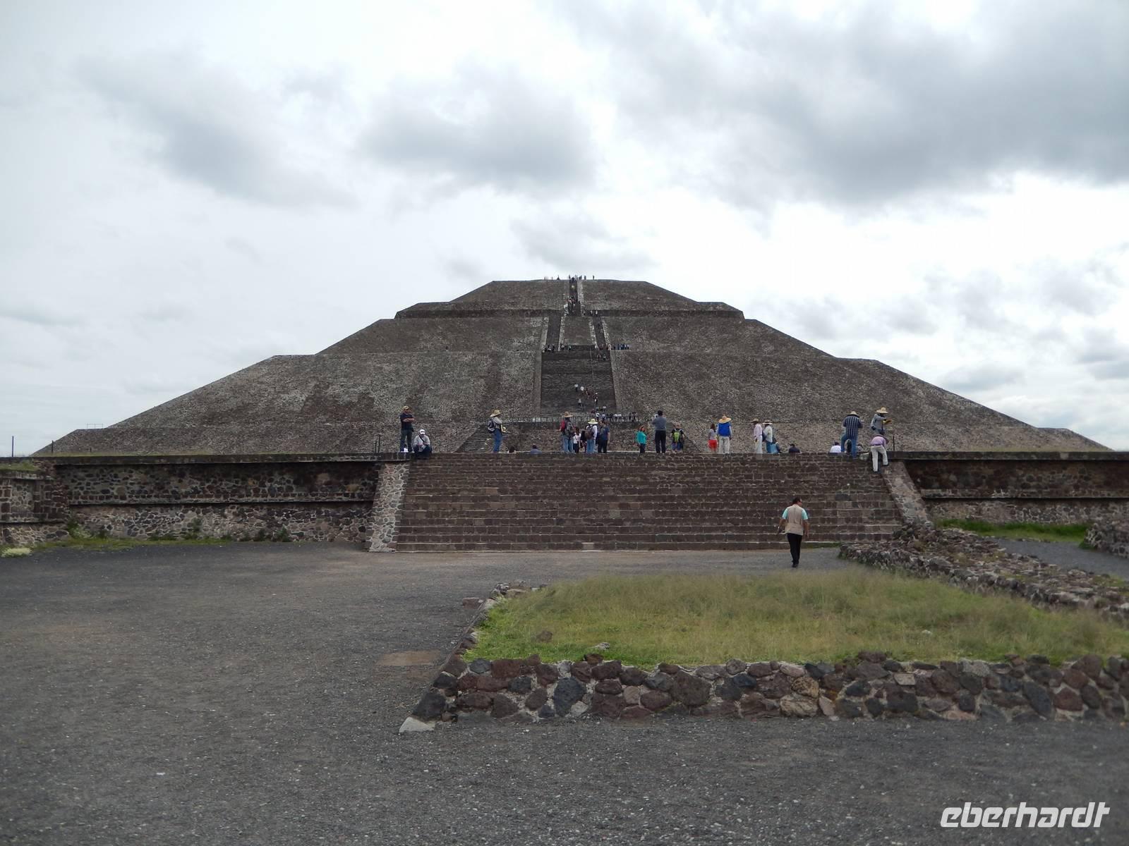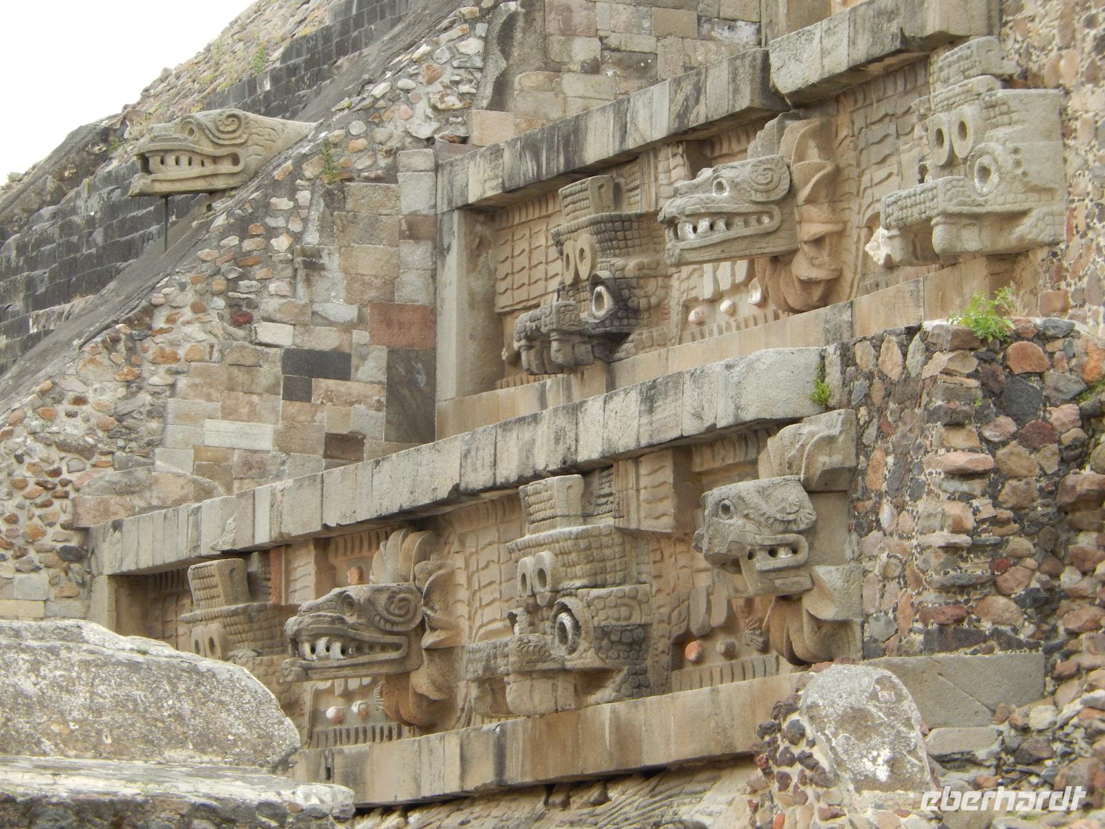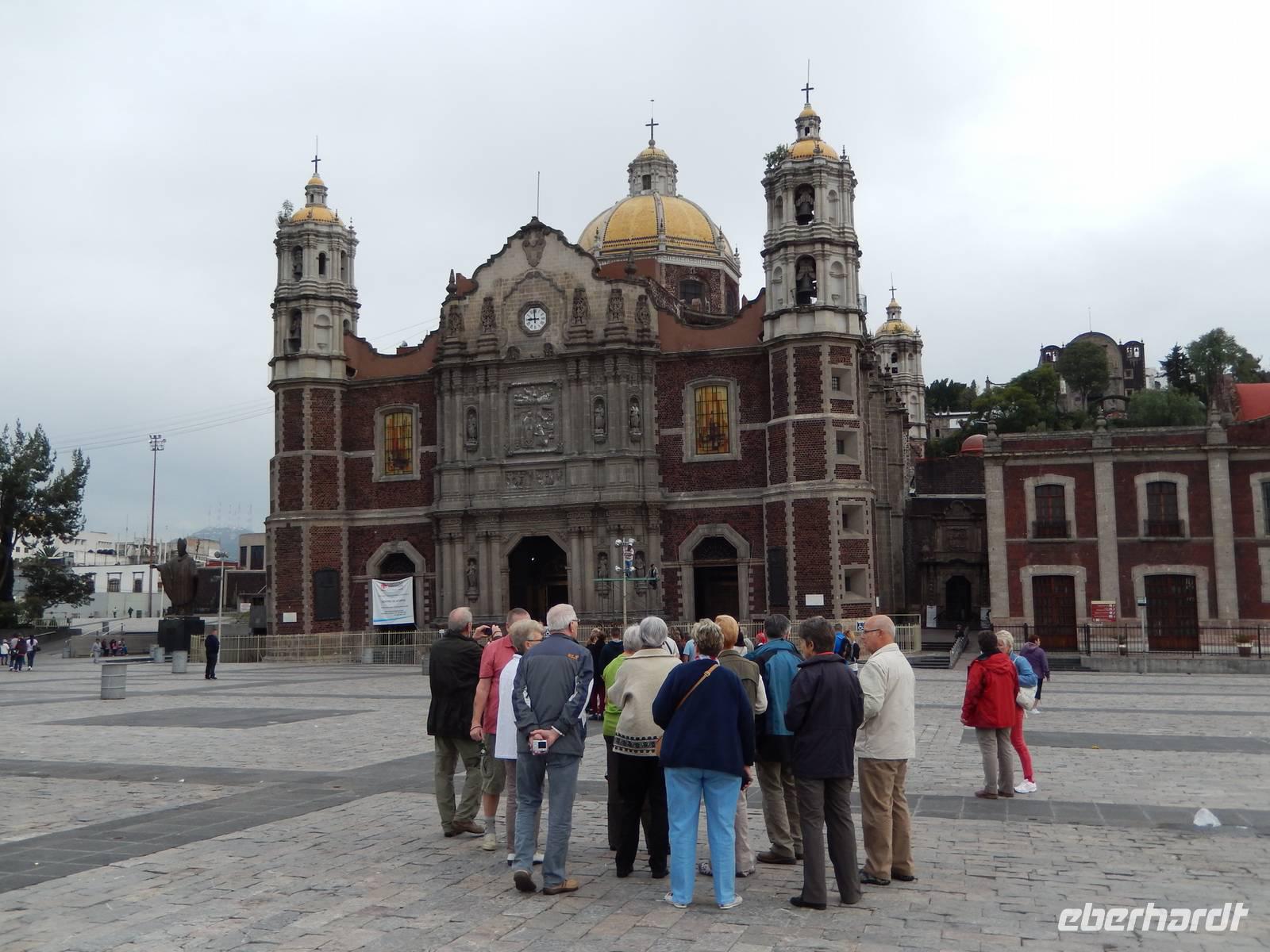 Heute geht es etwas eher los, aber wir haben auch straffes Programm. Unser erster Stopp führt uns zur Basilika der Jungfrau von Guadaloupe, der wichtigste Pilgerort Mexikos und auch für die katholische Welt Südamerikas. Uns erwartet ein unglaublich geschichtsträchtiger und beeindruckender Ort voller wundervoller Bauwerke. Wir schauen uns zuerst die neue Basilika an, spazieren dann über den Vorplatz vorbei am Glockenturm und dem Brunnen-Tempel in den Garten, wo die Erscheinung Juan Diegos und die Geschichte bis zur Anerkennung sehr schön dargestellt werden. Bevor noch Kerzen angezündet werden und wir das riesige Areal verlassen, besuchen wir noch kurz die alte Basilika und lernen, wie man bergauf zum Altar laufen muss - die alte Basilika neigt sich stark nach vorn und muss schon durch die Einzementierung der tragenden Säulen vor einem Einsturz bewahrt werden. Nach den Einblicken in die mexikanische Religion der Neuzeit wollen wir nun in die Geschichte der alten Hochkulturen erstmals eintreten. Dazu fahren wir nach Teotihuacan, wo uns zwei riesige Pyramiden erwarten. Wir besteigen als erstes die Mondpyramide und kommen bereits ein wenig ins Schnaufen. Anschließend laufen wir die Straße der Toten bis zur Sonnenpyramide und wissen dank Ruth inzwischen auch fast alles über die Geschichte der Entstehung der Menschheit aus Sicht der mexikanischen Ureiwohner. Die Anlagen sind wirklich sehr beeindruckend und die Geschichte der mexikanischen Vorfahren ebenso. Die Fittesten unter uns, versuchen sich dann auch noch am Aufstieg auf die Sonnenpyramide und bewältigen diesen auch. Nun haben wir uns aber wirklich ein stärkendes Mahl verdient und im Restaurant „Los Mc Coy" erwartet uns ein Buffet. Nach der Stärkung fahren wir weiter auf eine kleine Hacienda, wo wir alles Wissenswerte zur Gewinnung von Pulce, dem „Maya-Bier" aus gegorenem Agaven-Saft, zur Herstellung von Tequila und zur Gewinnung und handwerklichen Verarbeitung verschiedenster Obsidian-Gesteine erfahren. Natürlich darf eine Kostprobe der Schnäpse nicht fehlen. Nun haben wir noch einen weiteren Programmpunkt auf dem Plan, den Besuch der alten Zitadelle. Noch einmal heißt es Stufen (am Besten unterschiedlich hoch und richtig steil...) bewältigen. Belohnt werden wir mit einem Blick auf die Originalwand der Zitadelle, die wir gestern noch als Replikation im Museum gesehen hatten. Jetzt fahren wir zurück nach Mexiko City und es steht Freizeit an. Im Übrigen wurde heute schon kräftig bei den Souveniren zugeschlagen: diverse Kopfbedeckungen u.a. ein Sombrero, Figuren aus Obsidian, Karten, Taschen... Einiges ist schon am 2. Tag erledigt... Ich biete den Gästen heute einen kleinen Abendausflug zum Torre Latinoamericano an und die Mehrheit begleitet mich. Sergio unser Taxifahrer geleitet uns sicher bis zum Eingang und holt uns dort freundlicherweise auch wieder ab. Wir befahren den 182 Meter hohen Turm und genießen eine ganz andere Perspektive auf die mexikanische Hauptstadt. Vor allem sind wir aber gekommen, um den Übergang von Dämmerung zu Dunkelheit und dem damit verbundenen Entzünden Millionen Lichter der 22-Millionen-Metropole zu genießen. Es ist faszinierend wenn die Berge am Horizont quasi erleuchten... Allen Gästen hat dieser kleine Abstecher Spaß gemacht und es sind ein paar tolle Schnappschüsse entstanden. Den restlichen Abend verbringt dann jeder nach seinen Wünschen, aber lang wird es nicht gehen, denn Ruth hat für morgen zeitige Abreise angeordnet...