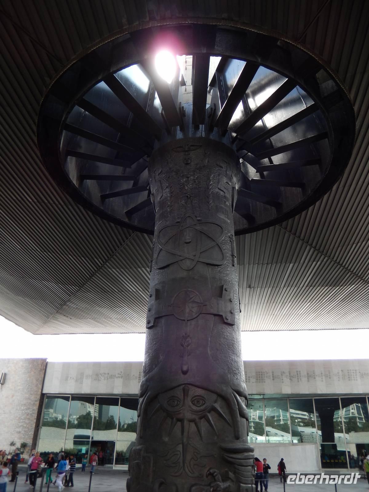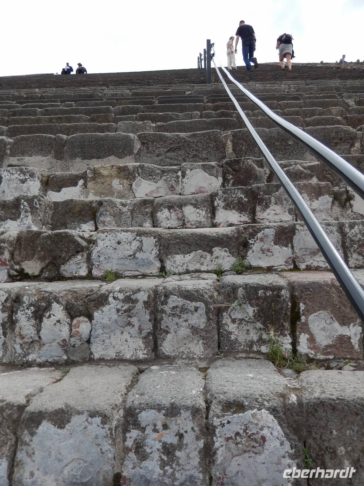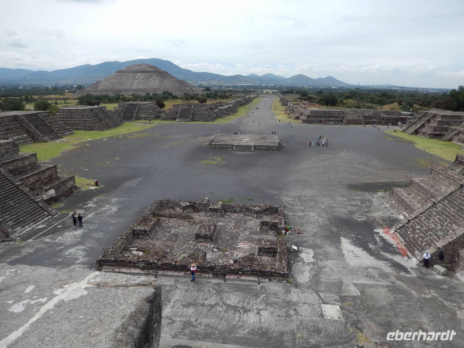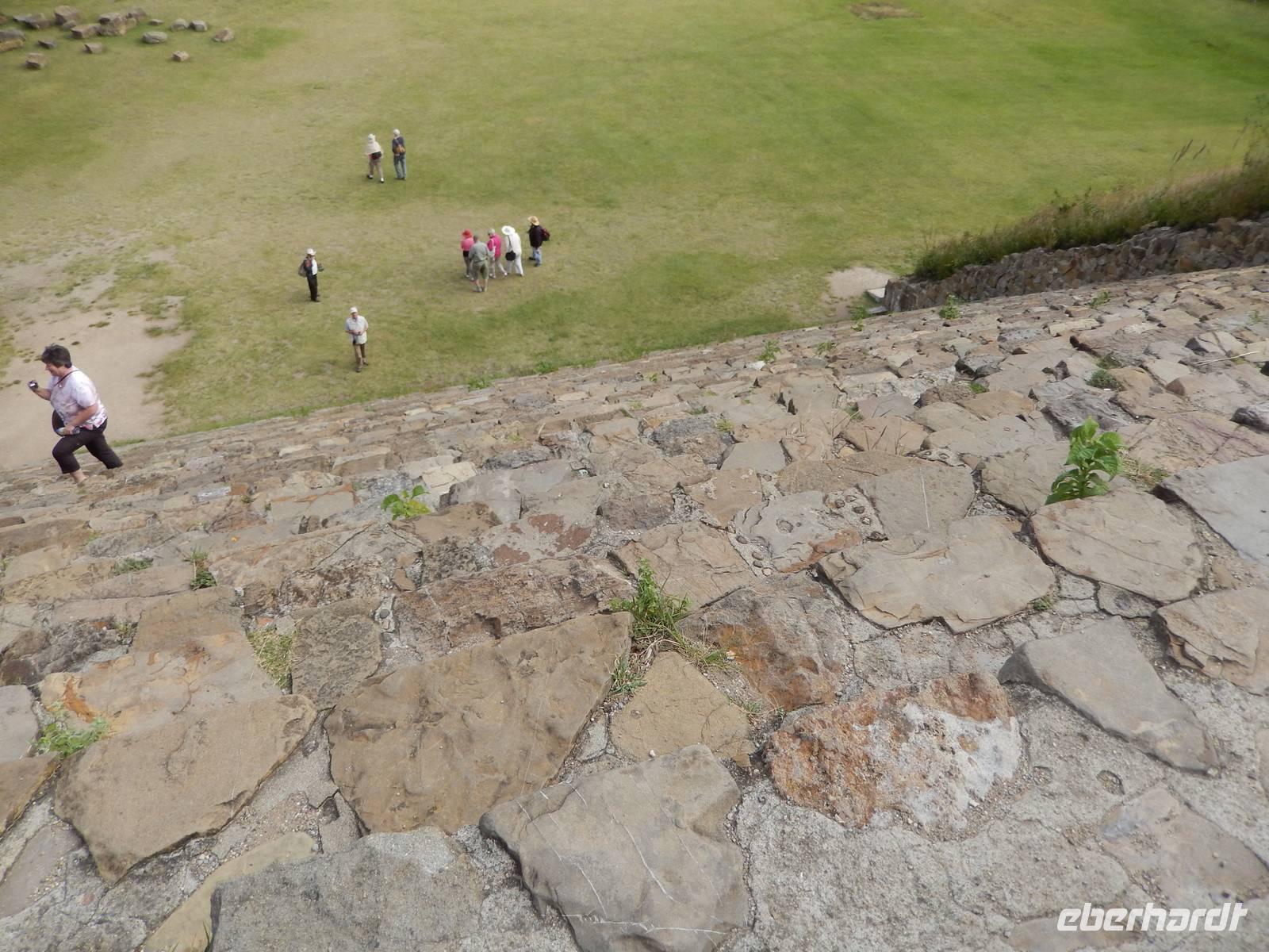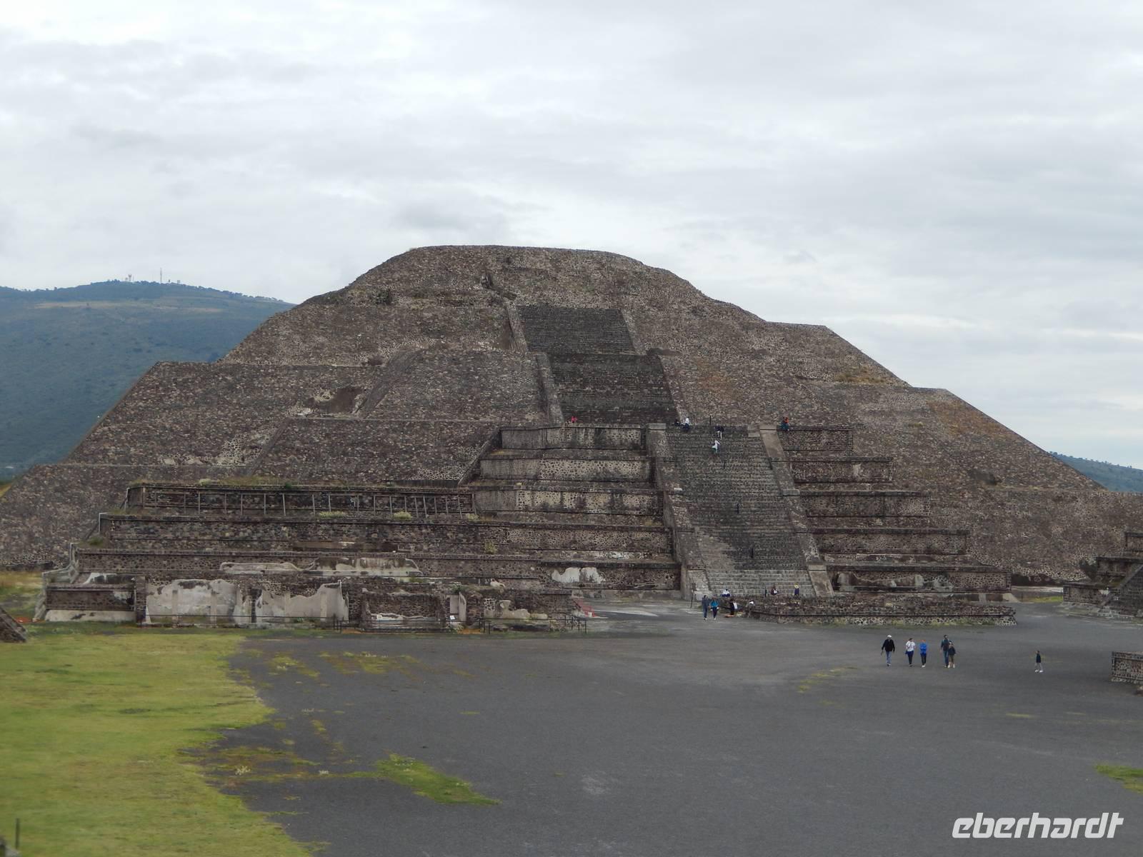 Heute geht es etwas eher los, aber wir haben auch straffes Programm. Unser erster Stopp führt uns zur Basilika der Jungfrau von Guadaloupe, der wichtigste Pilgerort Mexikos und auch für die katholische Welt Südamerikas. Uns erwartet ein unglaublich geschichtsträchtiger und beeindruckender Ort voller wundervoller Bauwerke. Wir schauen uns zuerst die neue Basilika an, spazieren dann über den Vorplatz vorbei am Glockenturm und dem Brunnen-Tempel in den Garten, wo die Erscheinung Juan Diegos und die Geschichte bis zur Anerkennung sehr schön dargestellt werden. Bevor noch Kerzen angezündet werden und wir das riesige Areal verlassen, besuchen wir noch kurz die alte Basilika und lernen, wie man bergauf zum Altar laufen muss - die alte Basilika neigt sich stark nach vorn und muss schon durch die Einzementierung der tragenden Säulen vor einem Einsturz bewahrt werden. Nach den Einblicken in die mexikanische Religion der Neuzeit wollen wir nun in die Geschichte der alten Hochkulturen erstmals eintreten. Dazu fahren wir nach Teotihuacan, wo uns zwei riesige Pyramiden erwarten. Wir besteigen als erstes die Mondpyramide und kommen bereits ein wenig ins Schnaufen. Anschließend laufen wir die Straße der Toten bis zur Sonnenpyramide und wissen dank Ruth inzwischen auch fast alles über die Geschichte der Entstehung der Menschheit aus Sicht der mexikanischen Ureiwohner. Die Anlagen sind wirklich sehr beeindruckend und die Geschichte der mexikanischen Vorfahren ebenso. Die Fittesten unter uns, versuchen sich dann auch noch am Aufstieg auf die Sonnenpyramide und bewältigen diesen auch. Nun haben wir uns aber wirklich ein stärkendes Mahl verdient und im Restaurant „Los Mc Coy" erwartet uns ein Buffet. Nach der Stärkung fahren wir weiter auf eine kleine Hacienda, wo wir alles Wissenswerte zur Gewinnung von Pulce, dem „Maya-Bier" aus gegorenem Agaven-Saft, zur Herstellung von Tequila und zur Gewinnung und handwerklichen Verarbeitung verschiedenster Obsidian-Gesteine erfahren. Natürlich darf eine Kostprobe der Schnäpse nicht fehlen. Nun haben wir noch einen weiteren Programmpunkt auf dem Plan, den Besuch der alten Zitadelle. Noch einmal heißt es Stufen (am Besten unterschiedlich hoch und richtig steil...) bewältigen. Belohnt werden wir mit einem Blick auf die Originalwand der Zitadelle, die wir gestern noch als Replikation im Museum gesehen hatten. Jetzt fahren wir zurück nach Mexiko City und es steht Freizeit an. Im Übrigen wurde heute schon kräftig bei den Souveniren zugeschlagen: diverse Kopfbedeckungen u.a. ein Sombrero, Figuren aus Obsidian, Karten, Taschen... Einiges ist schon am 2. Tag erledigt... Ich biete den Gästen heute einen kleinen Abendausflug zum Torre Latinoamericano an und die Mehrheit begleitet mich. Sergio unser Taxifahrer geleitet uns sicher bis zum Eingang und holt uns dort freundlicherweise auch wieder ab. Wir befahren den 182 Meter hohen Turm und genießen eine ganz andere Perspektive auf die mexikanische Hauptstadt. Vor allem sind wir aber gekommen, um den Übergang von Dämmerung zu Dunkelheit und dem damit verbundenen Entzünden Millionen Lichter der 22-Millionen-Metropole zu genießen. Es ist faszinierend wenn die Berge am Horizont quasi erleuchten... Allen Gästen hat dieser kleine Abstecher Spaß gemacht und es sind ein paar tolle Schnappschüsse entstanden. Den restlichen Abend verbringt dann jeder nach seinen Wünschen, aber lang wird es nicht gehen, denn Ruth hat für morgen zeitige Abreise angeordnet...