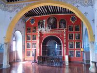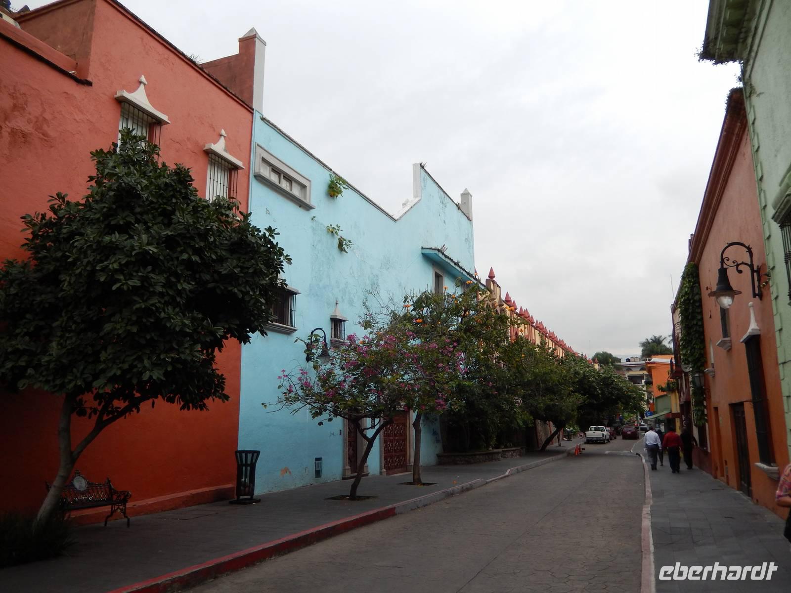Heute steht ein langer Bustag vor uns. Einigen unter uns, denen Montezumas Rache in den letzten Stunden schon zu schaffen gemacht hat, freuen sich auf die Erholungsphase und so starten wir in Richtung Osten. Erste wirkliche Station für heute ist dann die Stadt Puebla. Eine richtige Großstadt mit 1.5 Millionen Einwohnern, die wir bei einem Stadtspaziergang erkunden. Wir besuchen zuerst die prunkvolle - das bezieht sich fast ausnahmslos auf die Innenausstattung - Dominikaner-Kirche mit der Rosenkranz-Kapelle. Anschließend spazieren wir durch die geschäftigen Straßen der Stadt, werfen einen kurzen Blick in ein Krankenhaus und auf das „Zuckerhäuschen", überqueren einen kleinen Markt und gelangen so zum Zocalo, auf dem das Militär Mexikos eine Ausstellung durchführt, wobei man vom Hubschrauber bis zum Küstenwachboot Einsatzfahrzeuge des Militärs bewundern kann. Wir lassen die Ausstellung allerdings links liegen und gelangen durch den Seiteneingang in die Kathedrale von Puebla. Nach einem kurzen Rundgang haben wir dann Freizeit, die mehrheitlich zum Geldwechsel, Postkartenbesorgung oder für eine Kleinigkeit zu Essen oder einen Kaffee genutzt wird. Anschließend laufen wir zum Bus und starten zu weiteren 330 Kilometern, die uns heute noch bevorstehen und die eine Hotelankunft im Dunkeln sehr wahrscheinlich macht. Unterwegs stoppen wir natürlich nochmal: wir schießen typisch mexikanische Bilder, d.h. Sombrero auf und vor die wunderschönen Kakteen platziert. Neben den unterschiedlichen Kakteen-Arten bestaunen wir auch die wundervoll blühenden Bougainvilleas am Straßenrand. Wir fahren ein Stück parallel zur berühmten Panamericana und am Abend - nach einer Meisterleistung unseres Chauffeurs Horacio, der den Bus sicher durch das Straßengewirr gelenkt hat - erreichen wir dann unser Hotel „Hostal de la Noria" inmitten Oaxacas. Auch wenn das Hotel mitten in der Stadt liegt, nach diesem Tag und dem Abendessen freuen sich die meisten auf Ihr Bett.