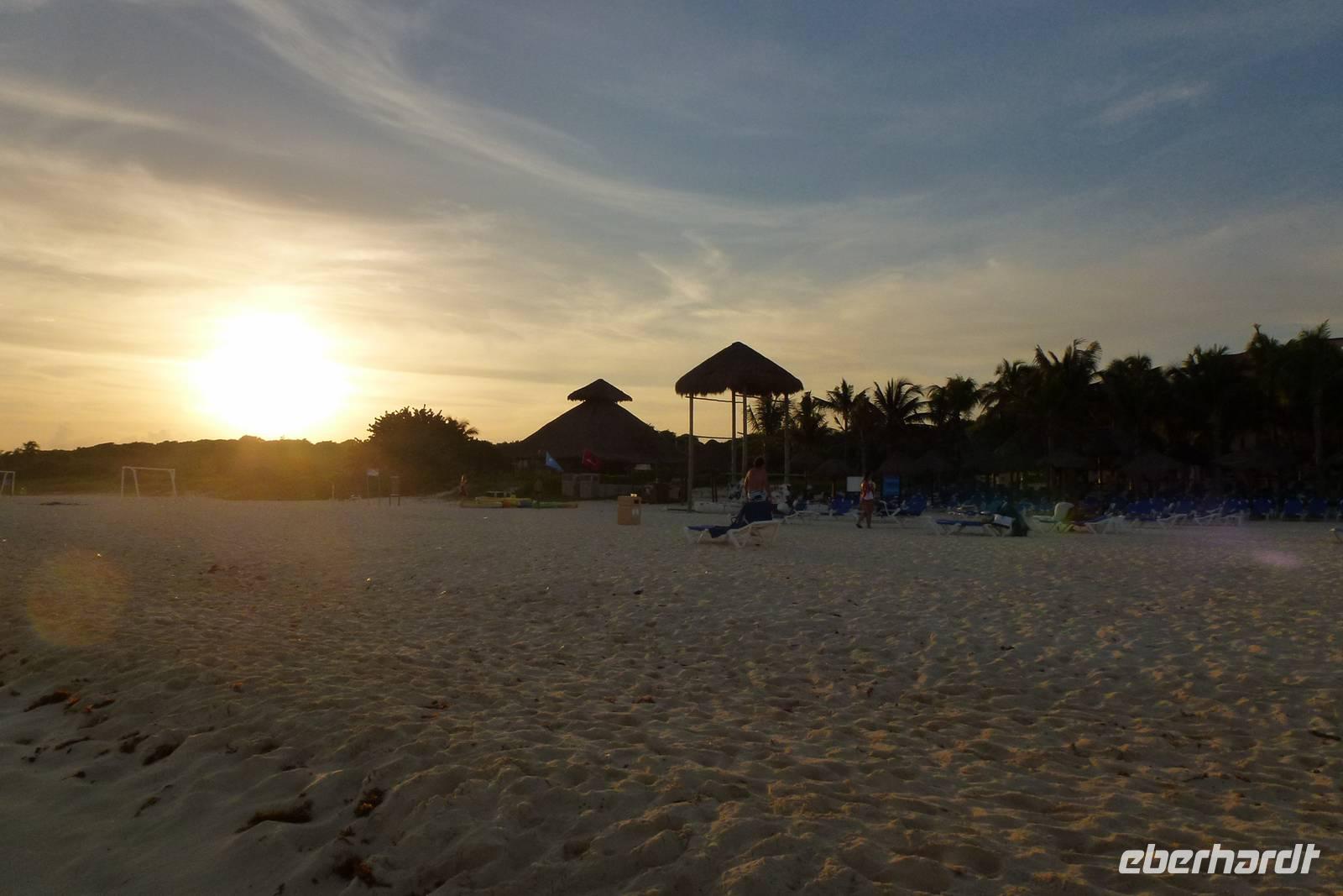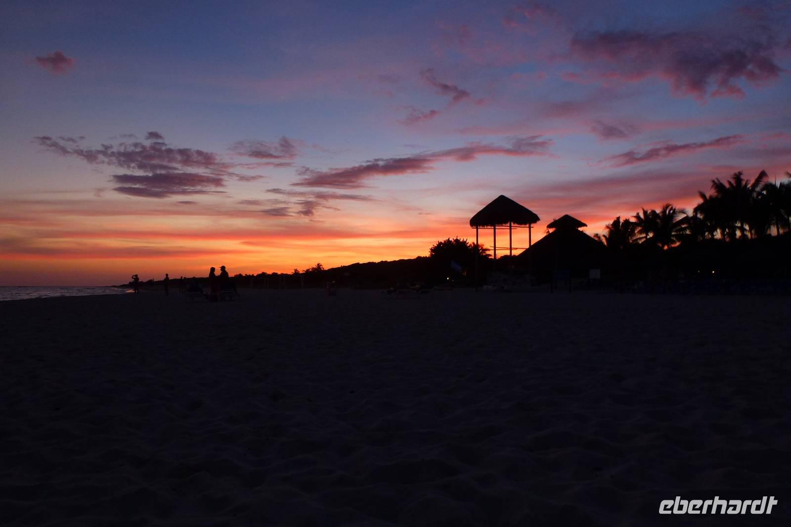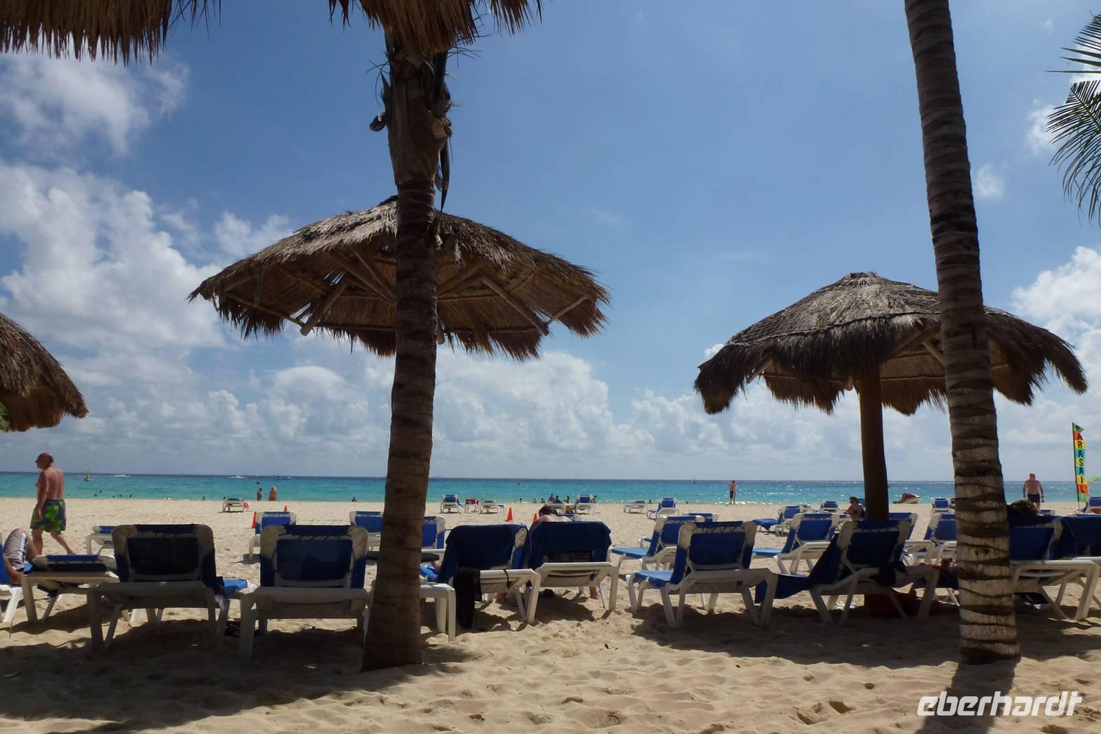Ein vollkommen ungewohntes Gefühl für Eberhardt-Gäste: wir haben Freizeit und zwar den ganzen Tag. Für die meisten heißt das auch, nicht so früh aufstehen, in Ruhe frühstücken und den Tag auf uns zukommen lassen. Das Hotel bietet wirklich für jeden Geschmack etwas und dabei meine ich nicht nur die kulinarischen Highlights. Egal ob Theater, Kino, Shops, Spa, Minigolf, Tennisplätze... hier findet wirklich jeder etwas zum Zeitvertreib. In unserer Gruppe stellt sich aber schnell heraus, dass die meisten dieselben Interessen verfolgen - Baden in der Karibik! Das warme, türkisfarbene Wasser lockt so gut wie jeden von uns ins Nass. Natürlich nicht nur einmal... Leider unterschätzen wir die Sonne etwas und bei dem einen oder anderen ist am Abend eine deutliche Rötung zu erkennen. Aber das hält uns nicht davon ab, Poollandschaft und Strand am Meer neben den zahlreichen Bars und Restaurants zu testen und zu genießen - eine echte Erholung. Am Abend versammeln wir uns dann nochmal zum Abschiedsabendessen in einem der Buffet-Restaurants und bei ausreichend Wein und (schon wieder) leckerem Essen lassen wir den Urlaub ausklingen.