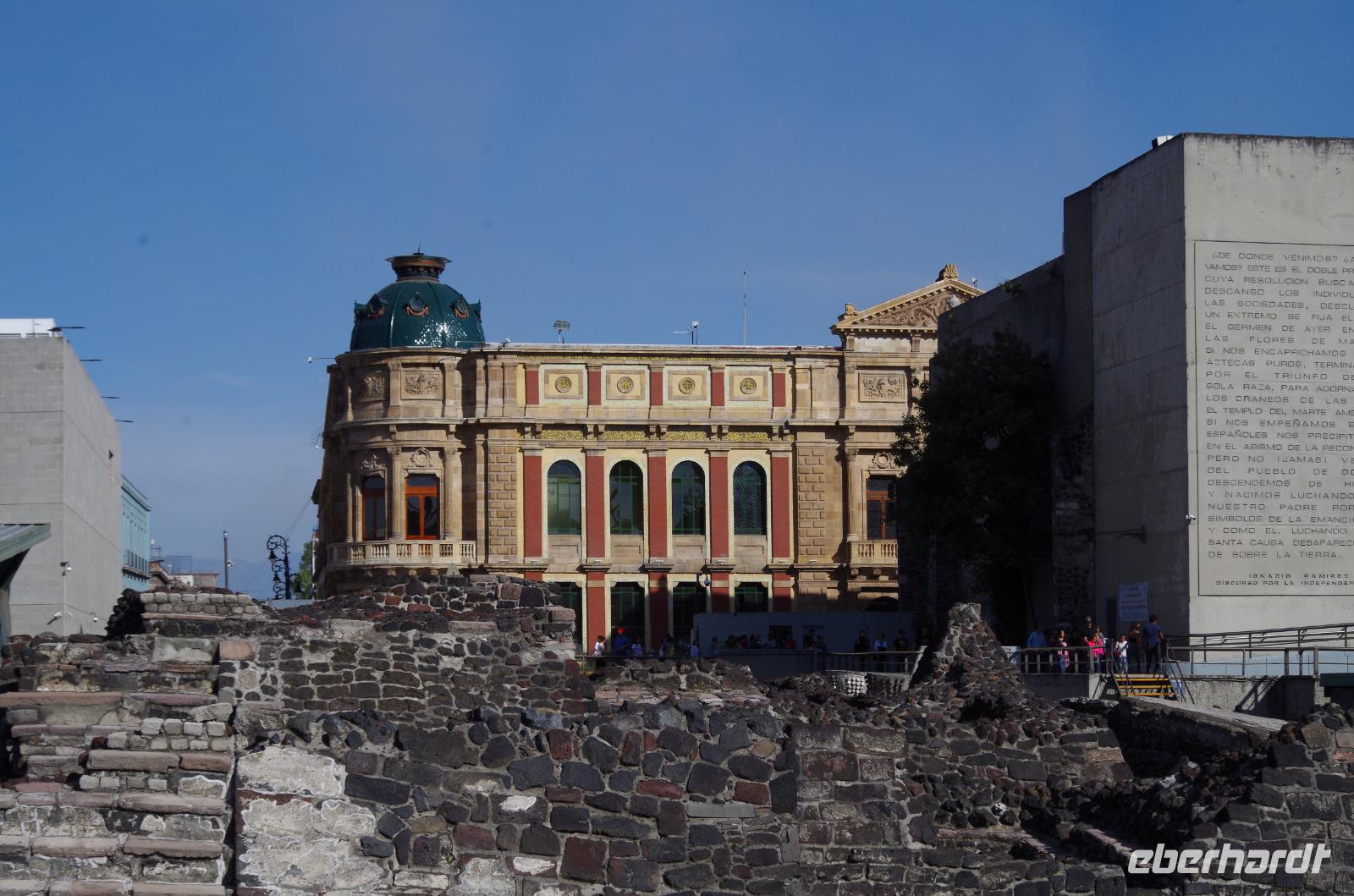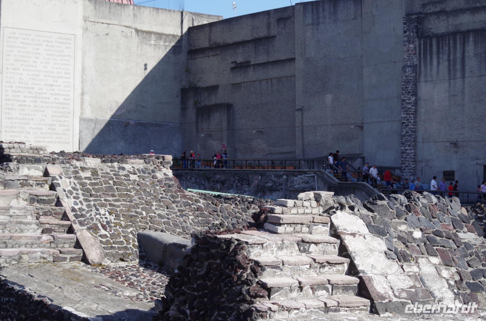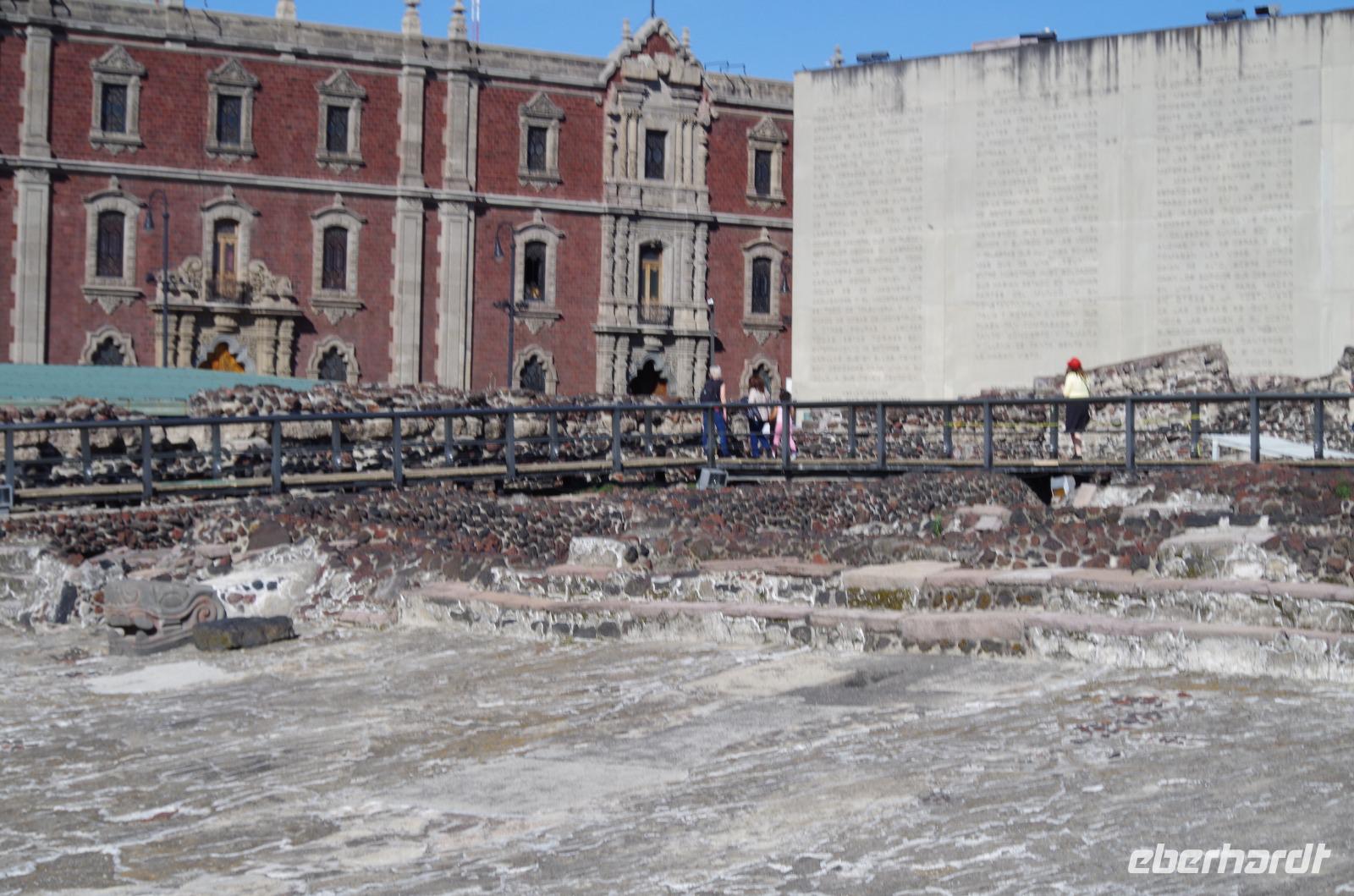 Nun machten uns dann auf den Weg in das Stadtzentrum. Zunächst besuchten wir das Mueseo de Sittio und besichtigten dann nahe des Zócalos Ausgrabungen, die noch von den Azteken stammen