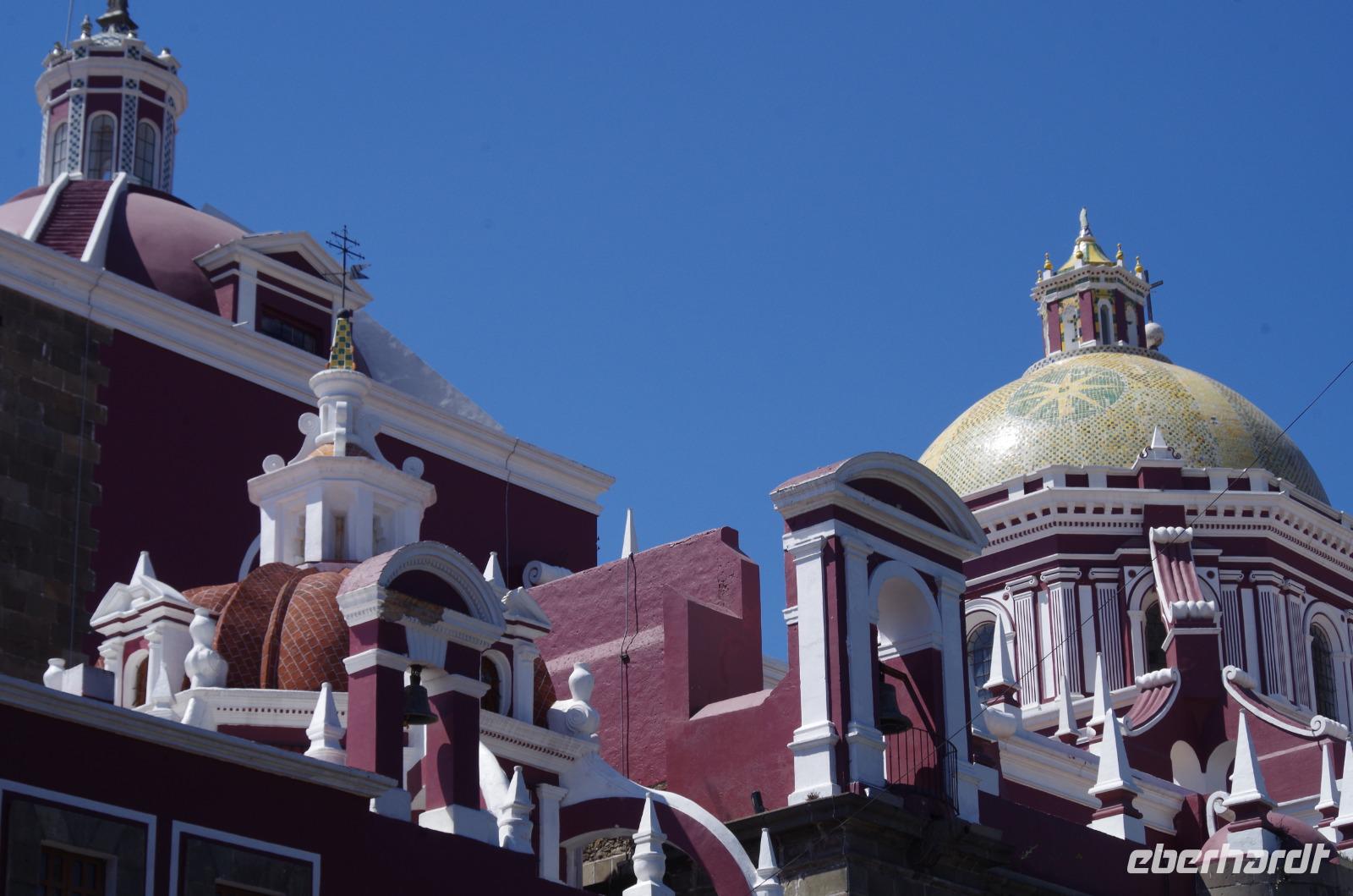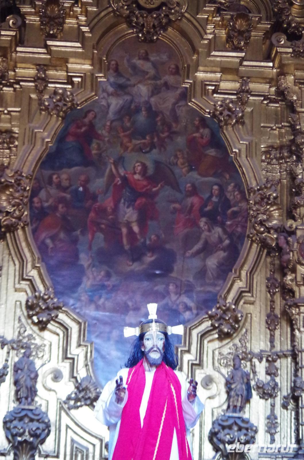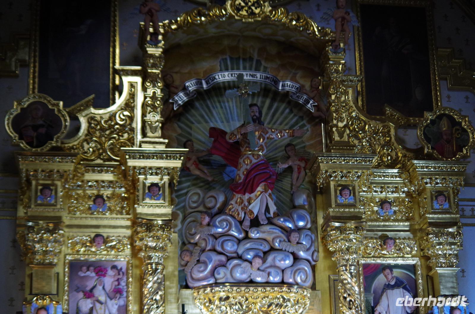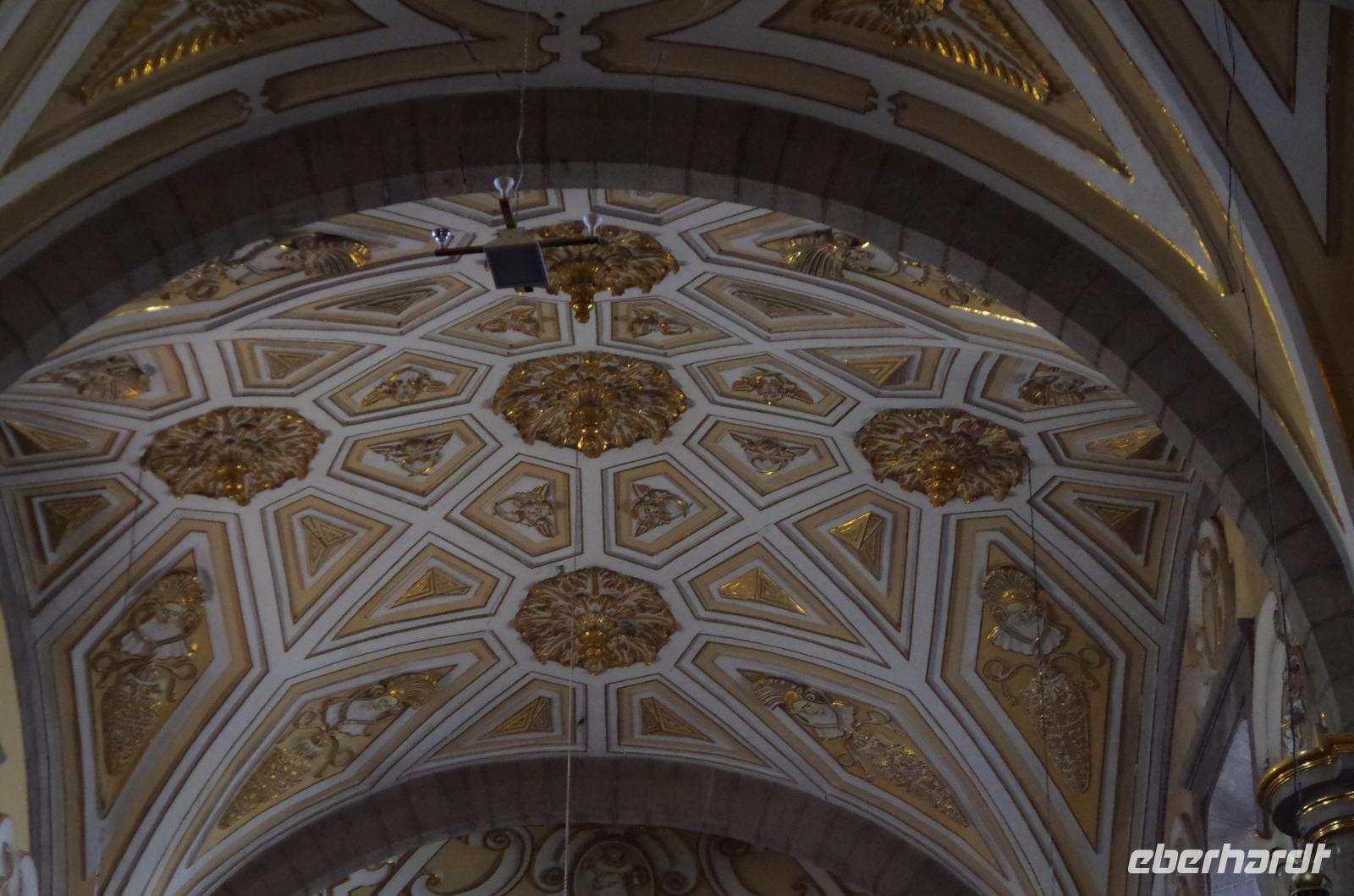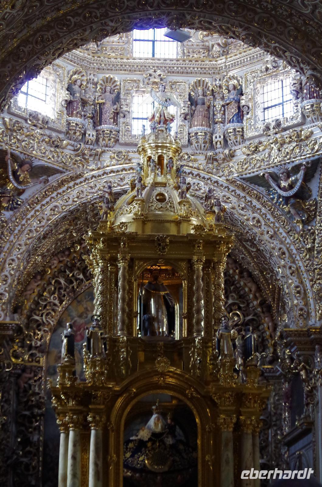 In Puebla angekommen, besuchten wir zunächst die Rosenkranzkapelle in der Dominikanerkirche, welche einst zum Dominikanerkloster gehörte. Sie ist wirklich sehr prunkvoll mit Gold verziert. Die Gemälde in der Kapelle zeigen die Geschichte von Jesus.