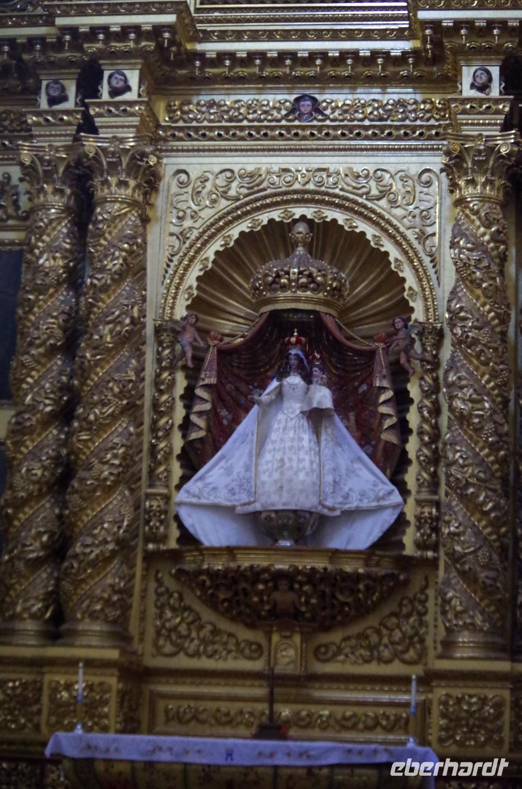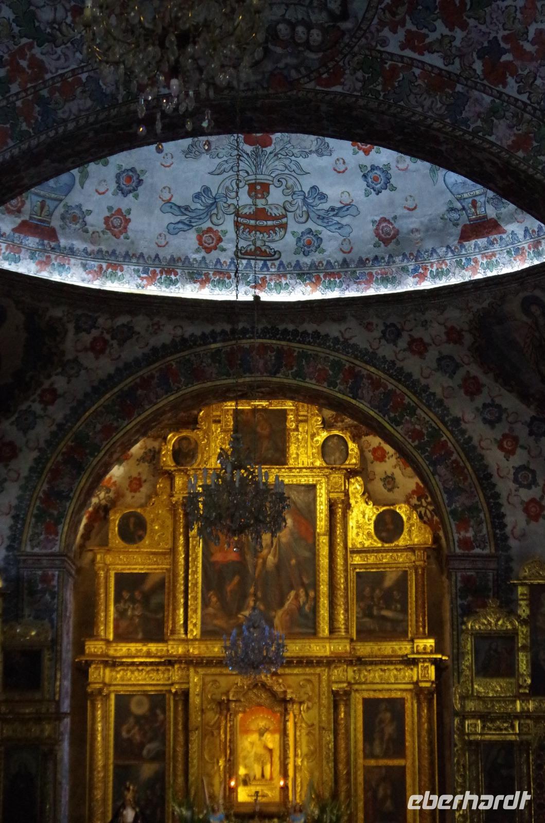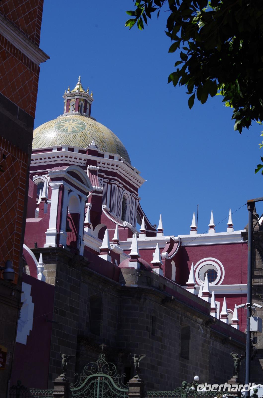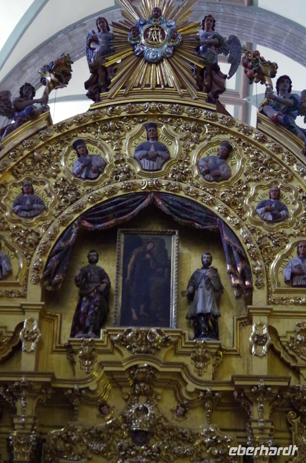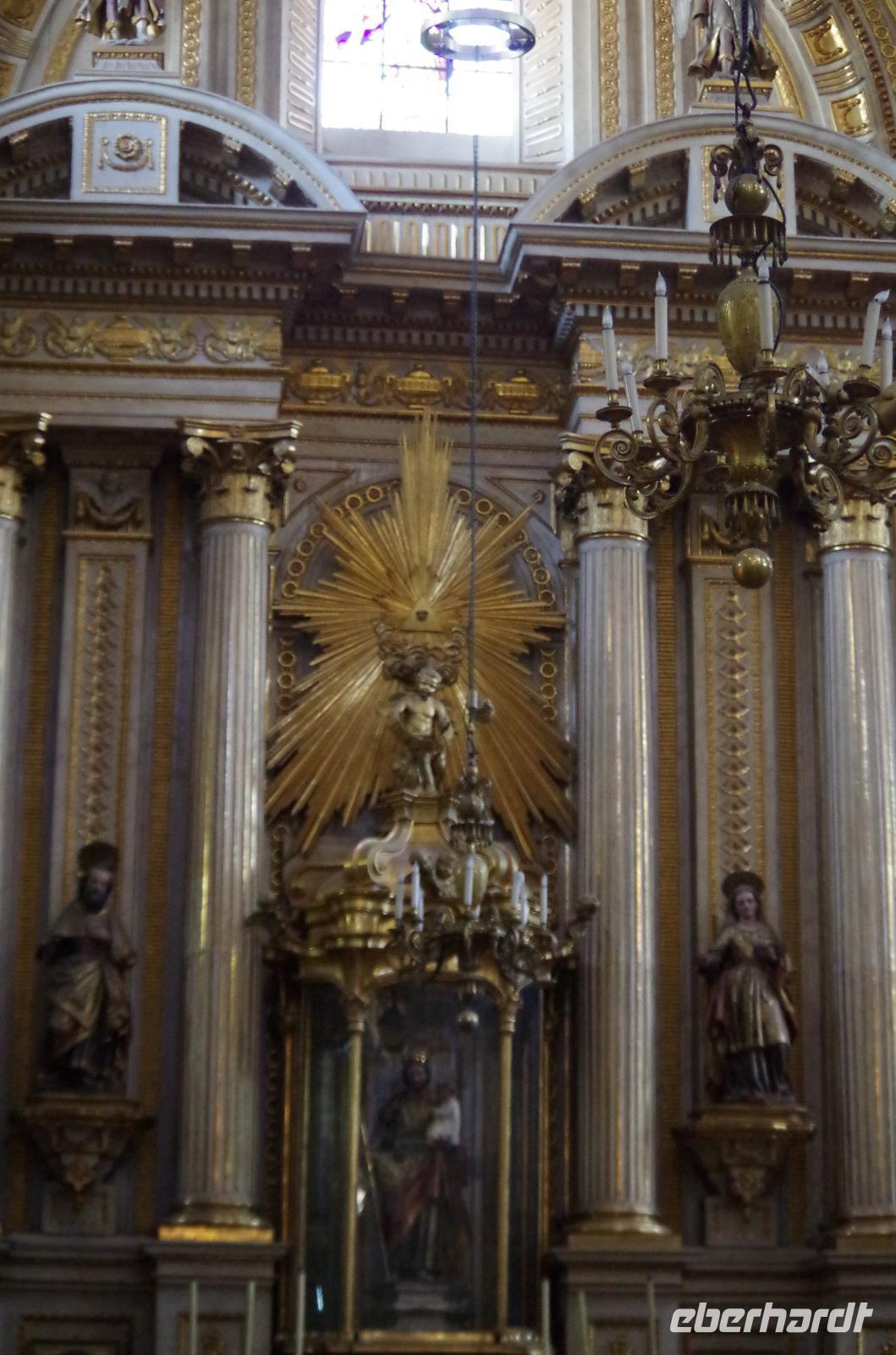 In Puebla angekommen, besuchten wir zunächst die Rosenkranzkapelle in der Dominikanerkirche, welche einst zum Dominikanerkloster gehörte. Sie ist wirklich sehr prunkvoll mit Gold verziert. Die Gemälde in der Kapelle zeigen die Geschichte von Jesus.