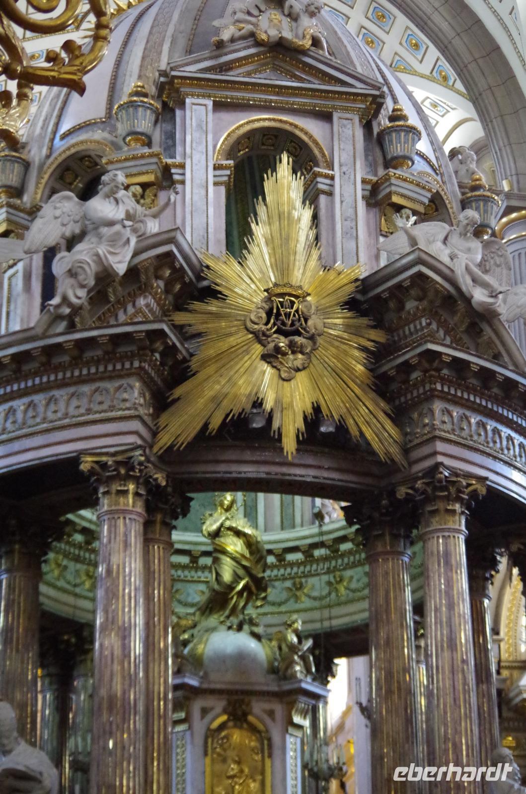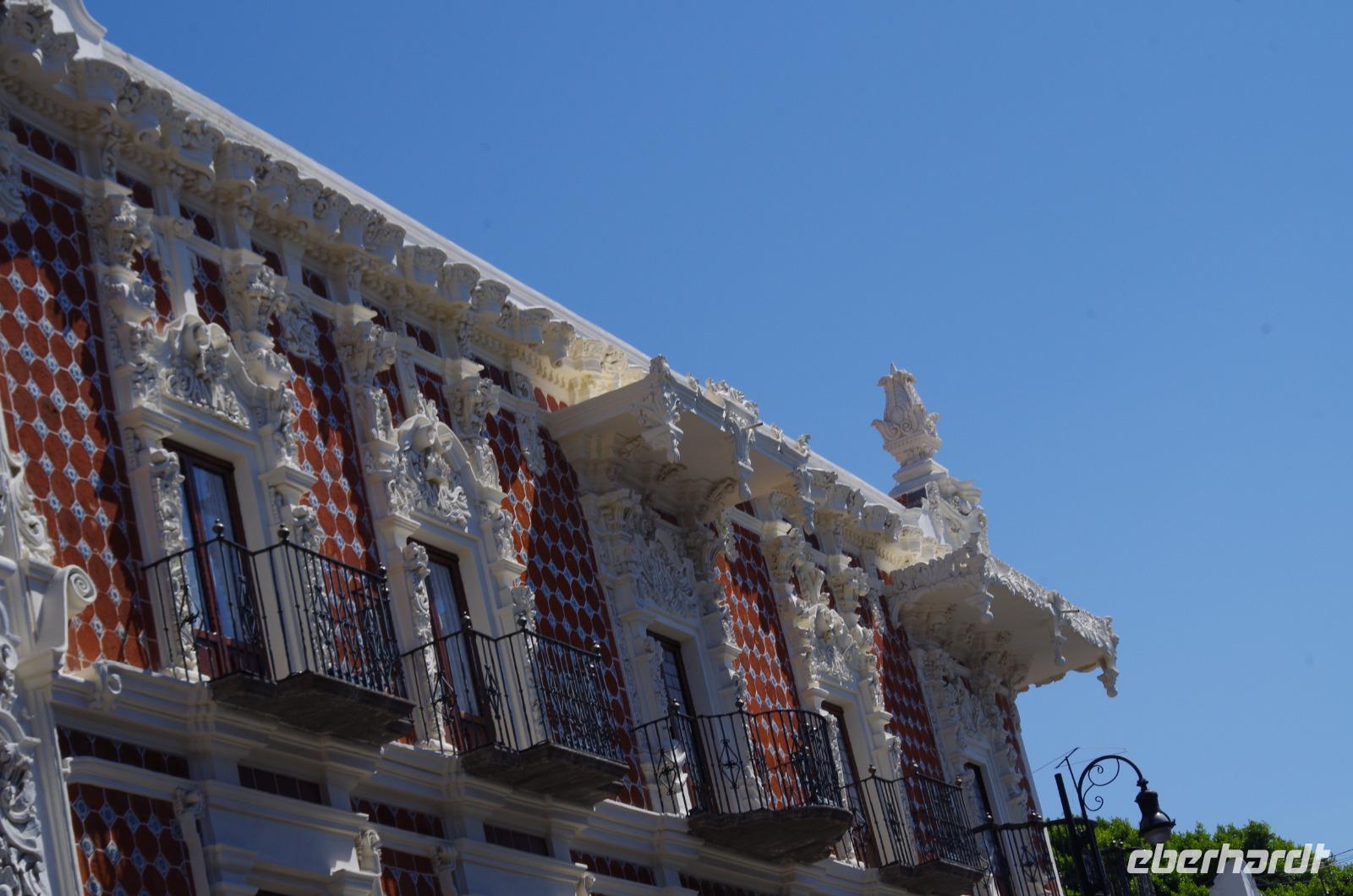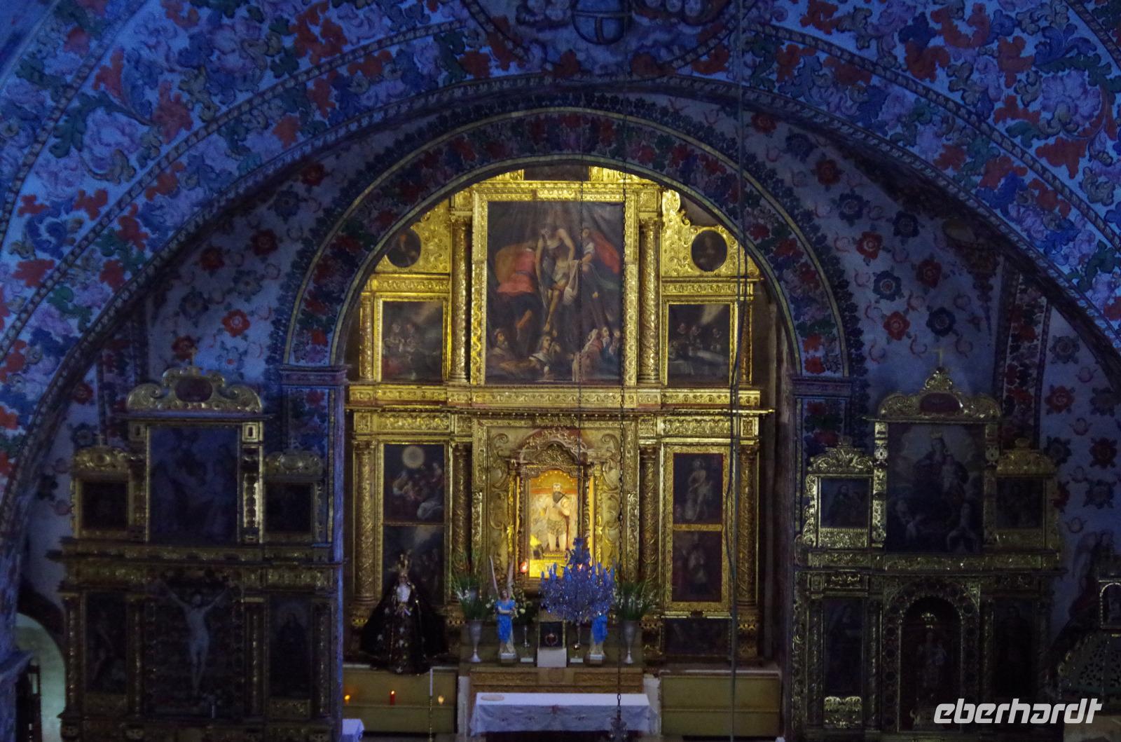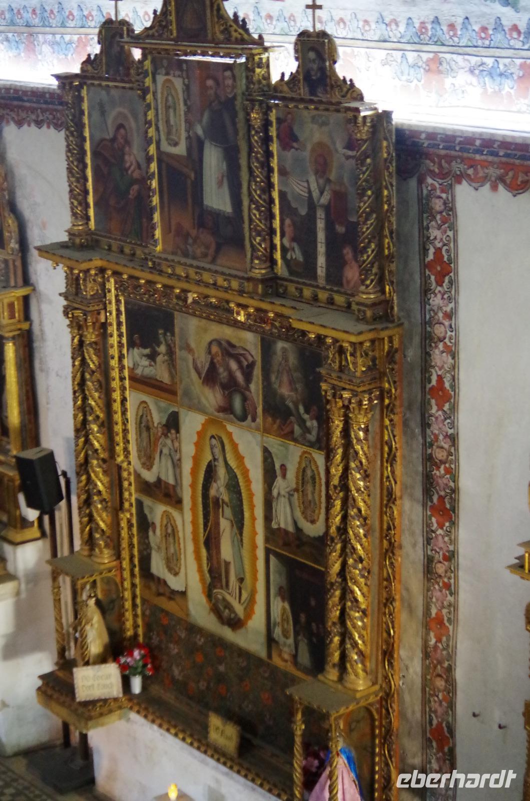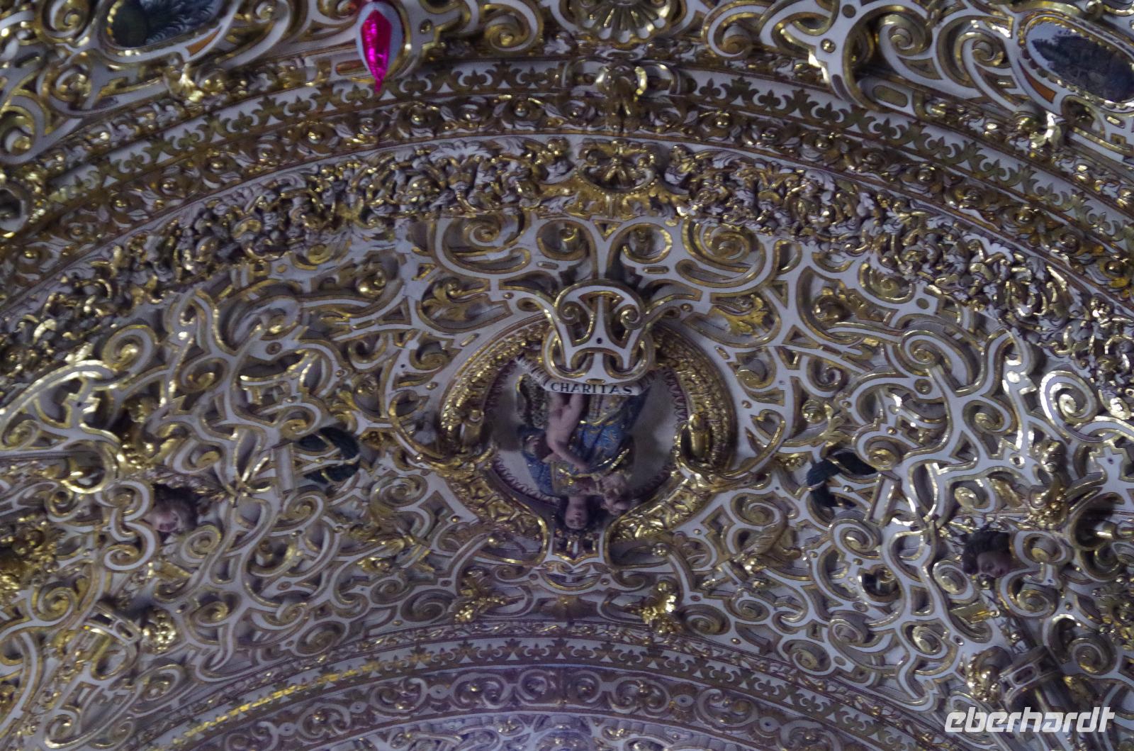 In Puebla angekommen, besuchten wir zunächst die Rosenkranzkapelle in der Dominikanerkirche, welche einst zum Dominikanerkloster gehörte. Sie ist wirklich sehr prunkvoll mit Gold verziert. Die Gemälde in der Kapelle zeigen die Geschichte von Jesus.