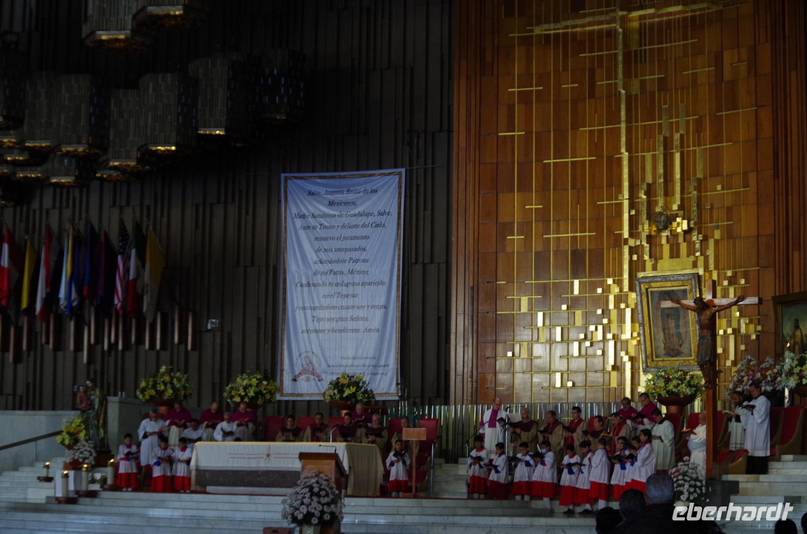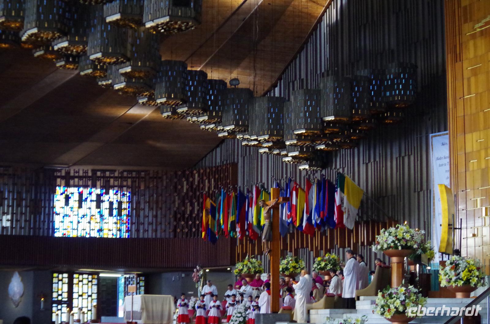 Heute machten wir uns zunächst auf den Weg zur Basilika Notre Dame von Guadalupe. Sie wurde 1976 neu erbaut. Die ursprüngliche Basilika sank im weichen Boden ab, befindet sich aber noch heute, wenn auch etwas schief, direkt daneben. Gleich zu Beginn unserer Besichtigung konnten wir das Gnadenbild betrachten. Damit es keinen Stau gibt und sich jeder das Bild anschauen kann, gibt es dort extra ein Rollband. Wir waren beeindruckt vom Inneren der Kirche, sie ist wirklich riesig und auch eine der Größten der Welt. Während wir dem Gesang eines Chores zuhörten, konnten wir das Innere der Kirche bestaunen.