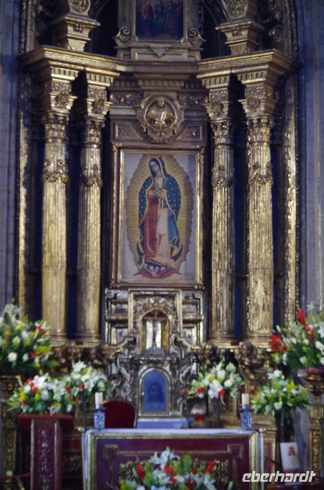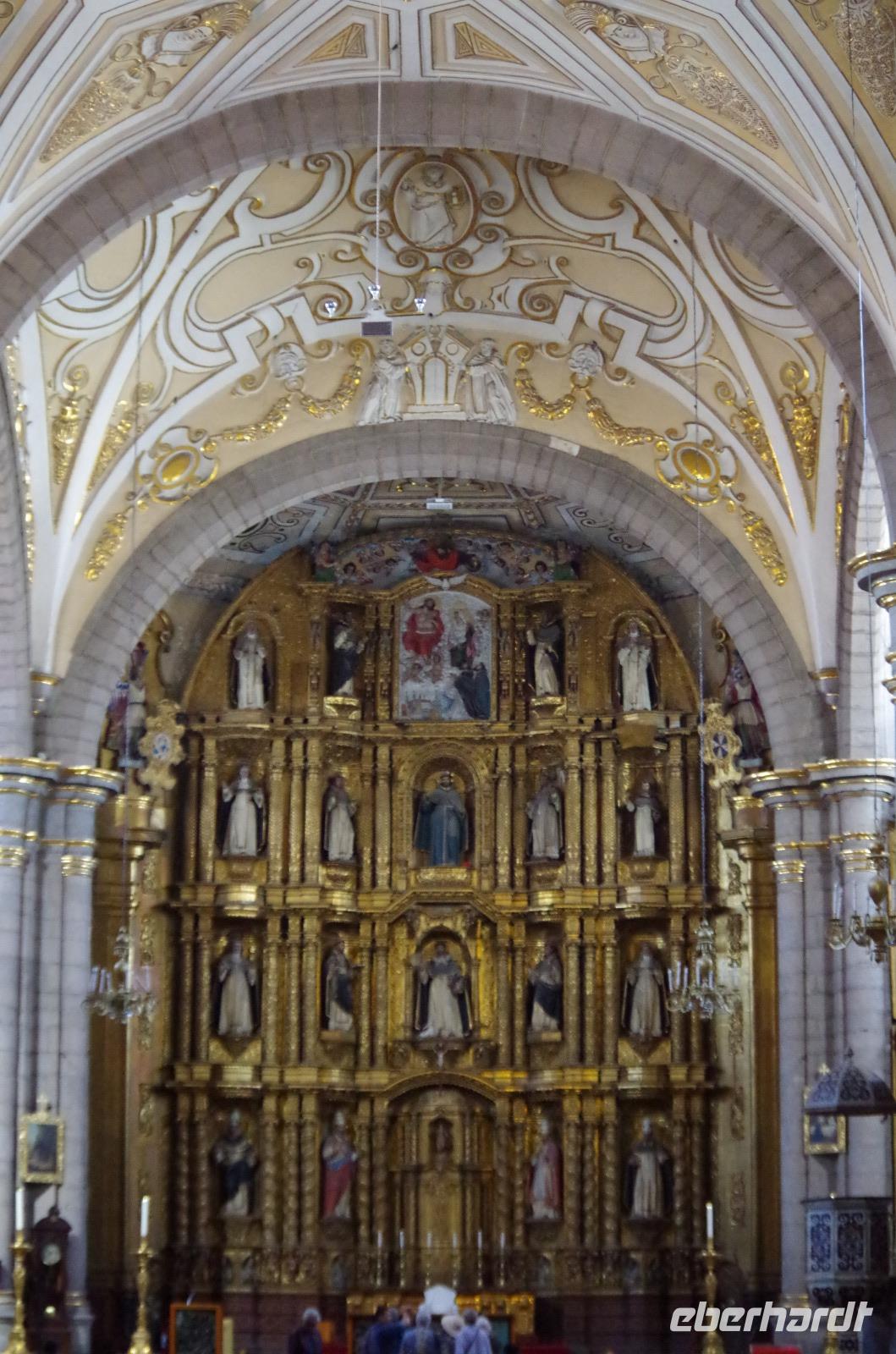 Am Zocalao besichtigten wir noch die Kathedrale der Stadt, auch diese war sehr beeindruckend und hat mit 74 Metern die höchsten Glockentürme Mexikos. Im Inneren sahen wir zum Beispiel den Hauptaltar, den prunkvollen Altar de los Reyes und die Orgel mit ihren 3336 Pfeifen.
