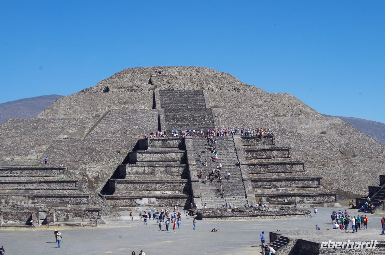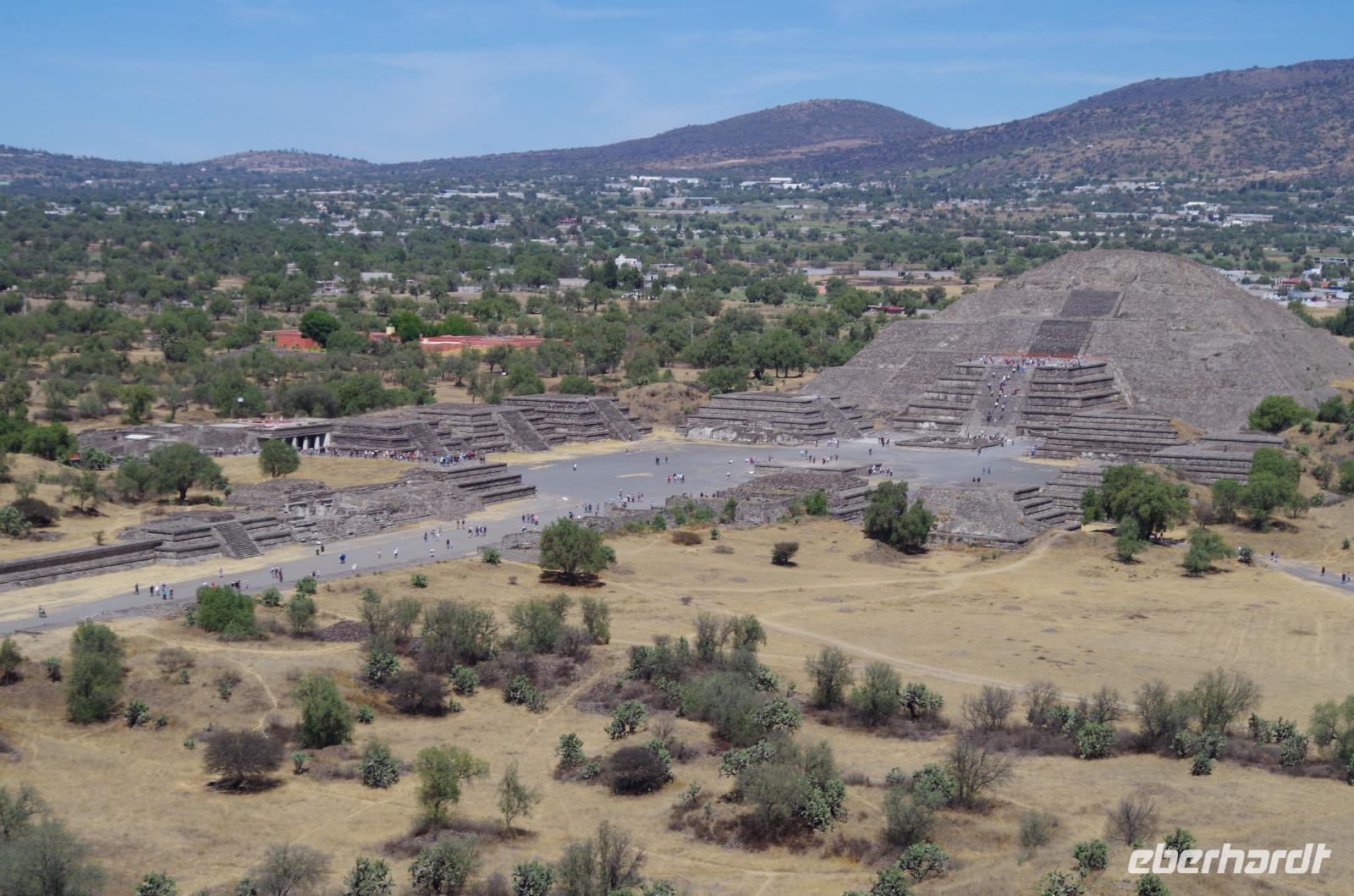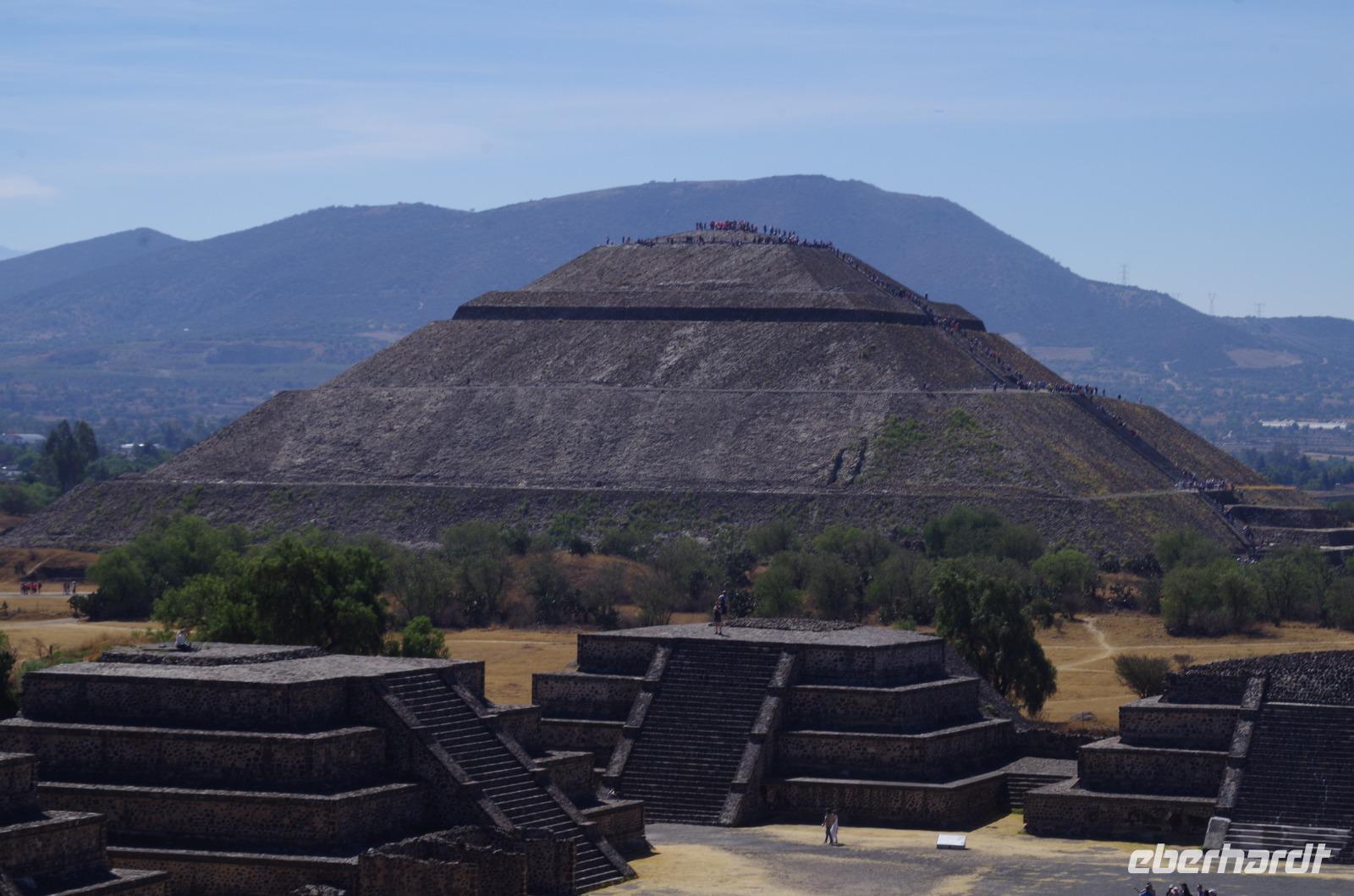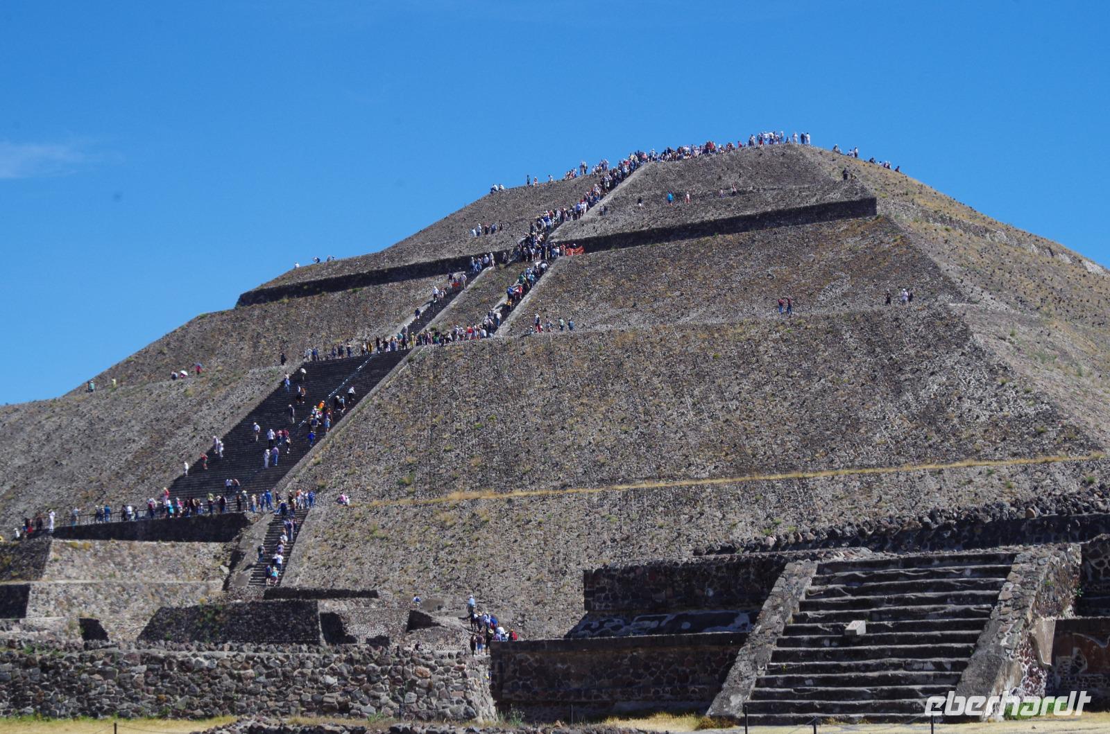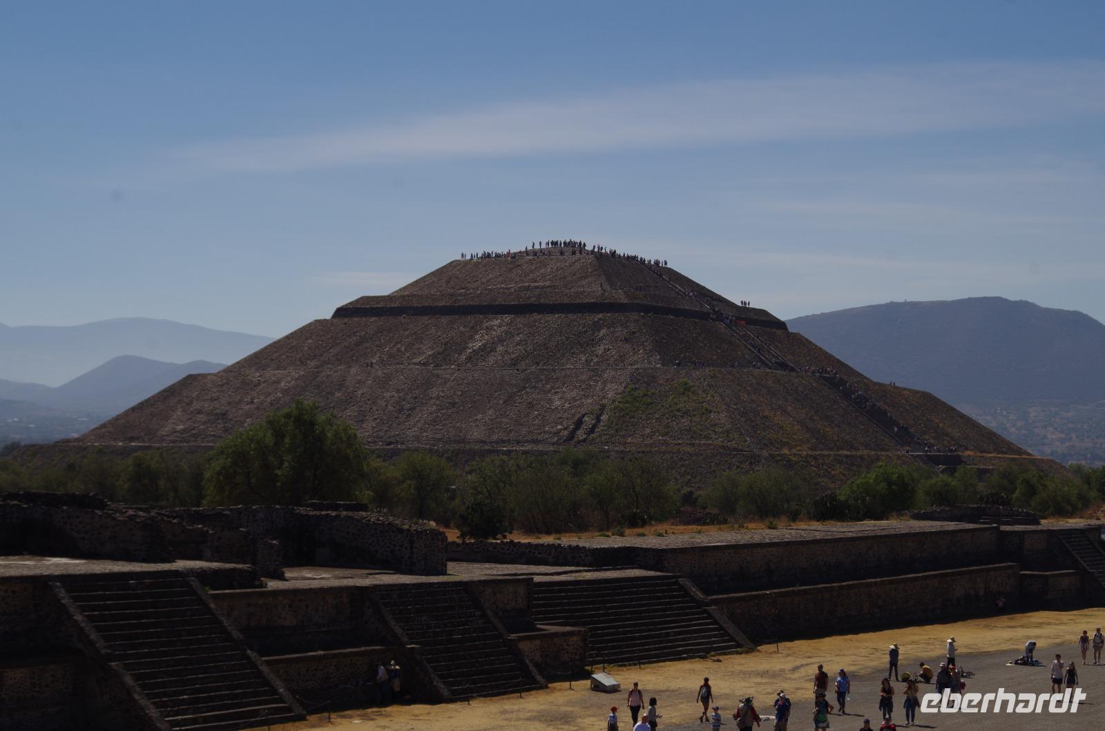 Der Aufstieg zur Sonnenpyramide beanspruchte etwas mehr Zeit, schließlich ist sie mit 66 Metern Höhe auch deutlich größer als die Mondpyramide. Belohnt wurde der Aufstieg von einem tollen Ausblick über die gesamte Anlage.