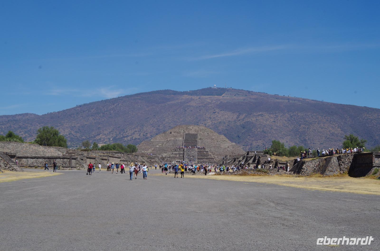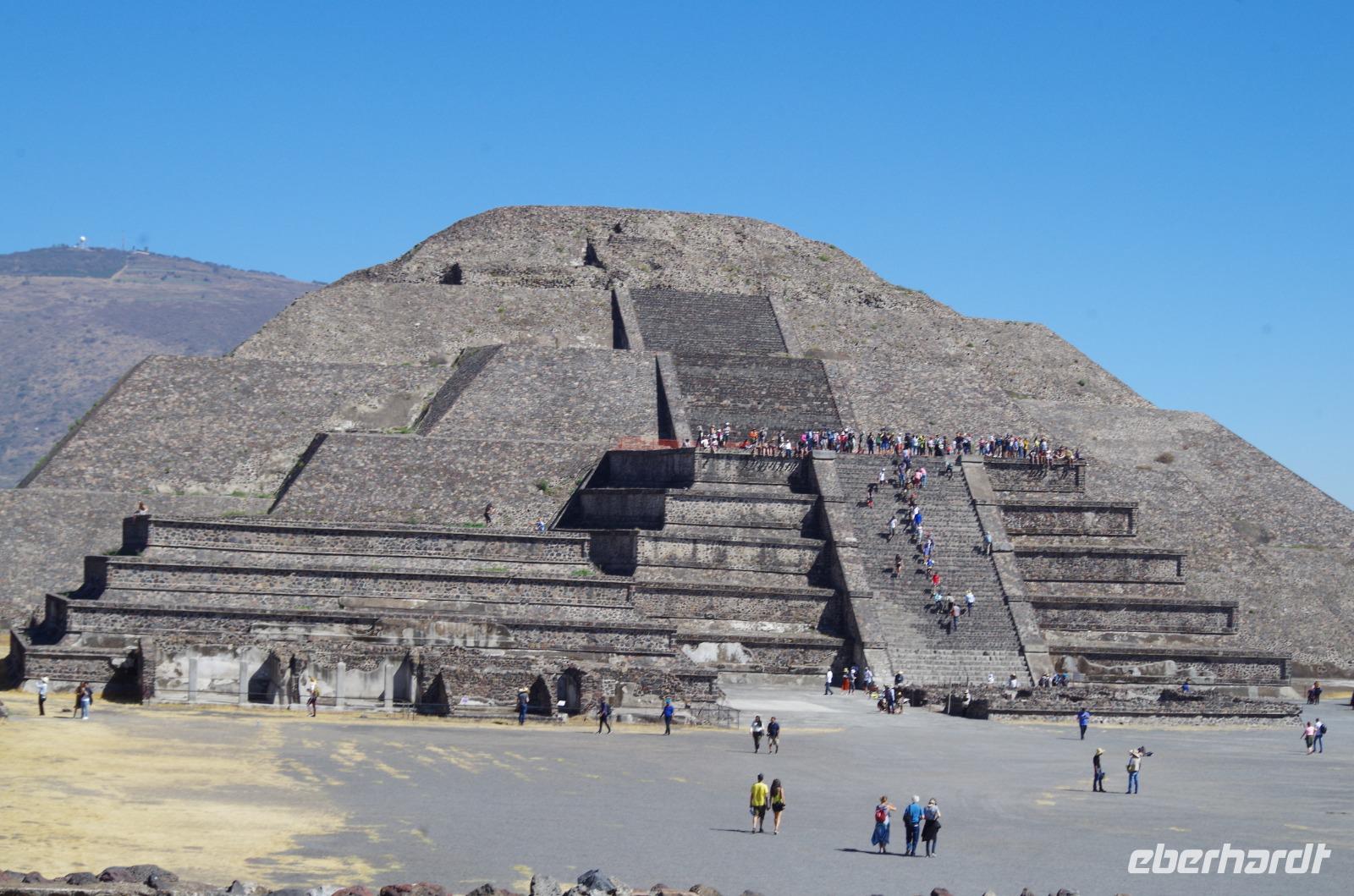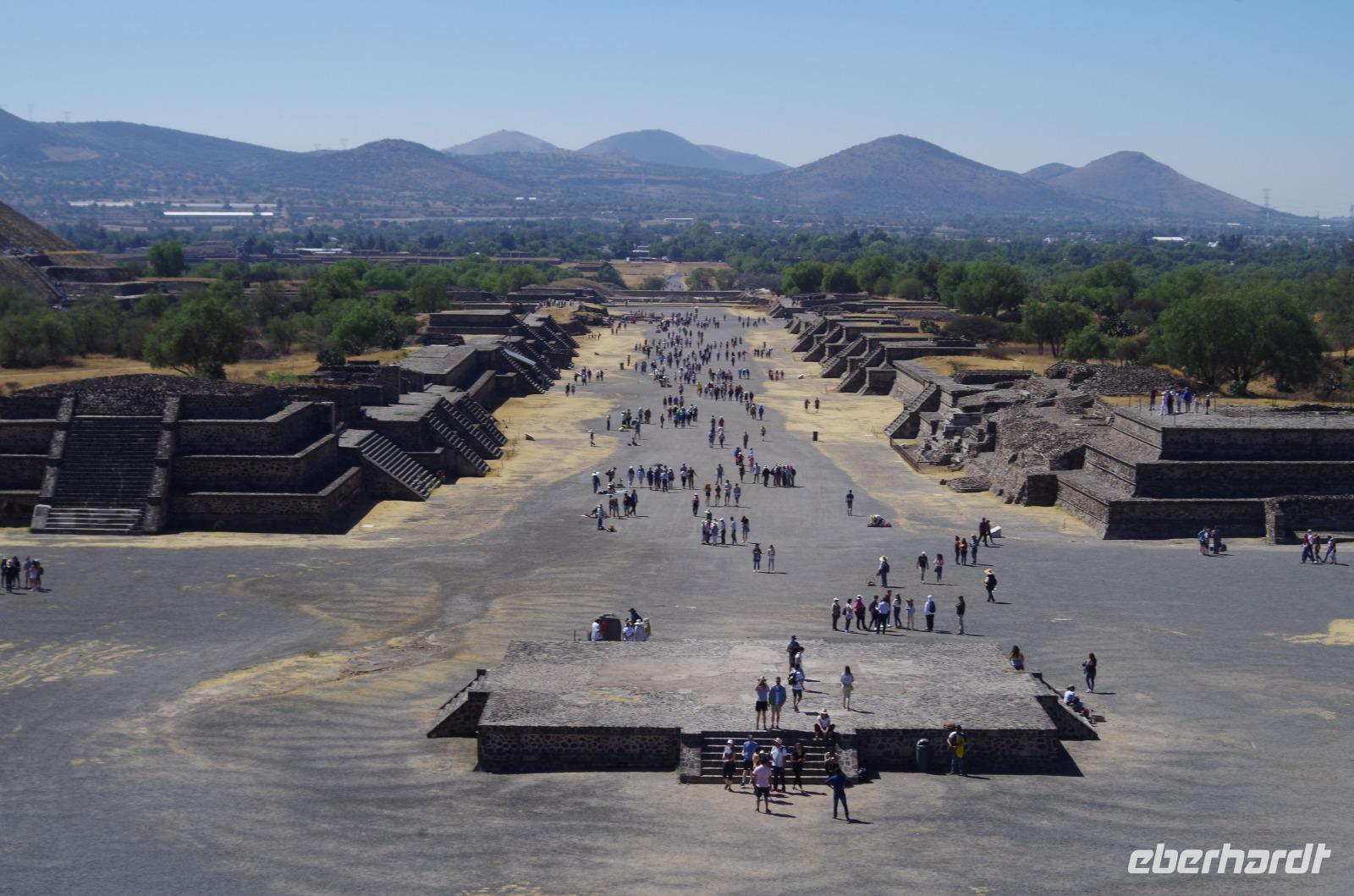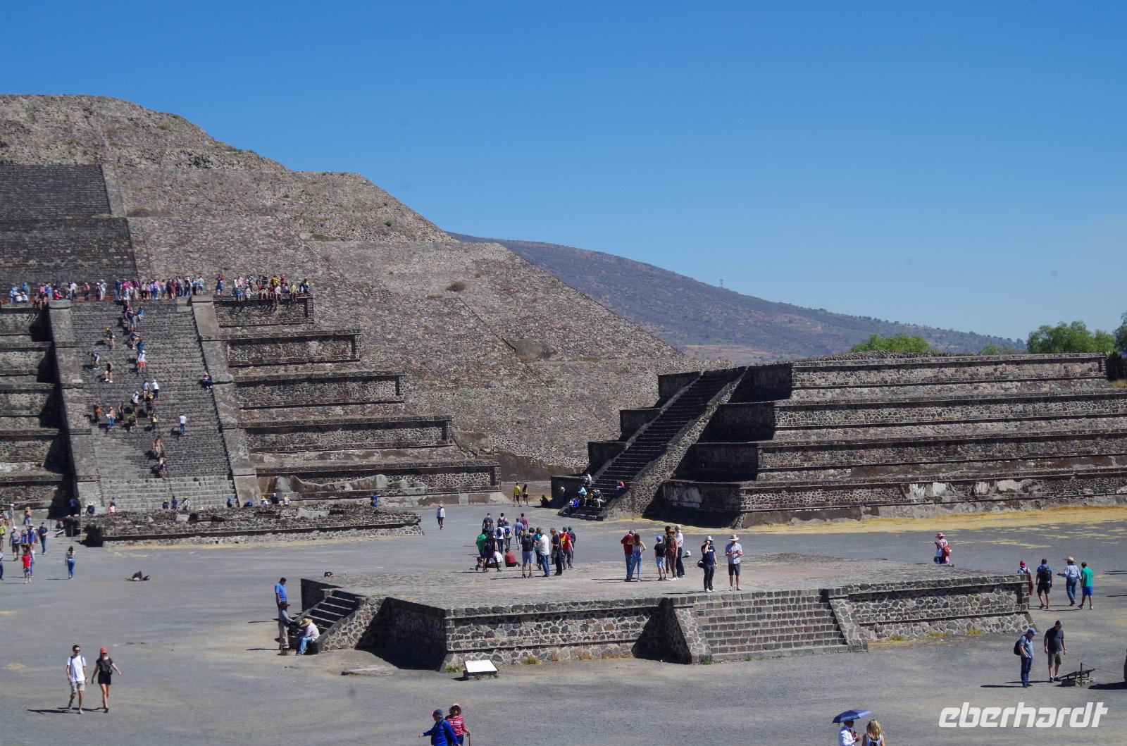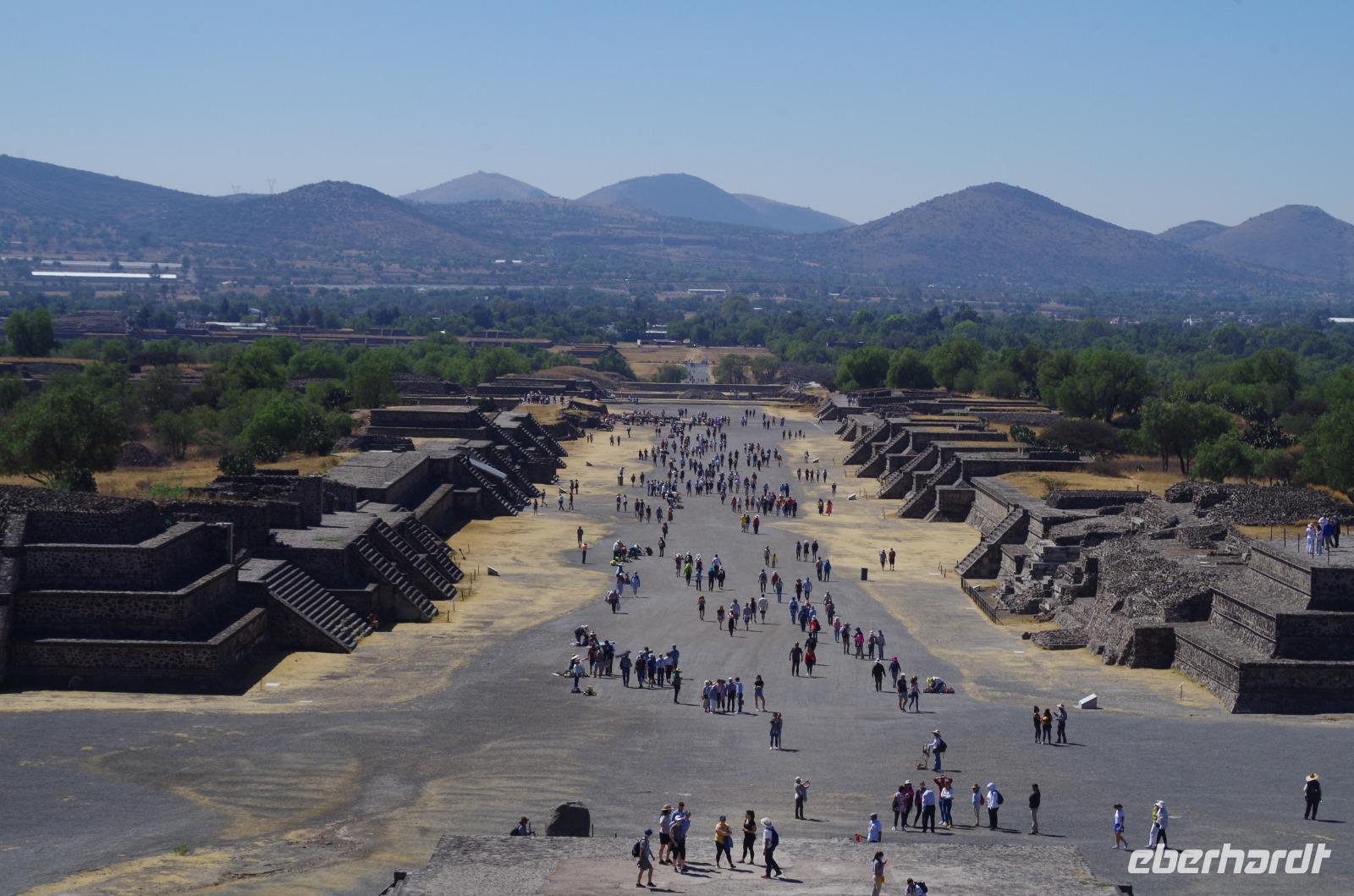 Der Aufstieg zur Sonnenpyramide beanspruchte etwas mehr Zeit, schließlich ist sie mit 66 Metern Höhe auch deutlich größer als die Mondpyramide. Belohnt wurde der Aufstieg von einem tollen Ausblick über die gesamte Anlage.