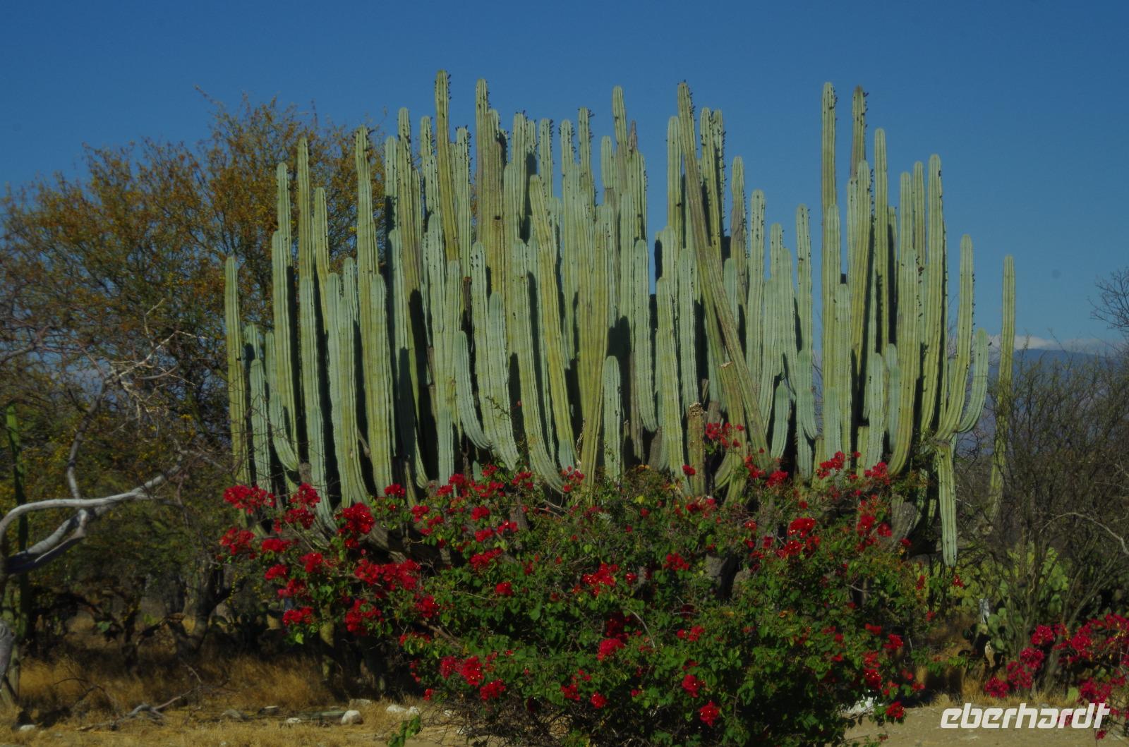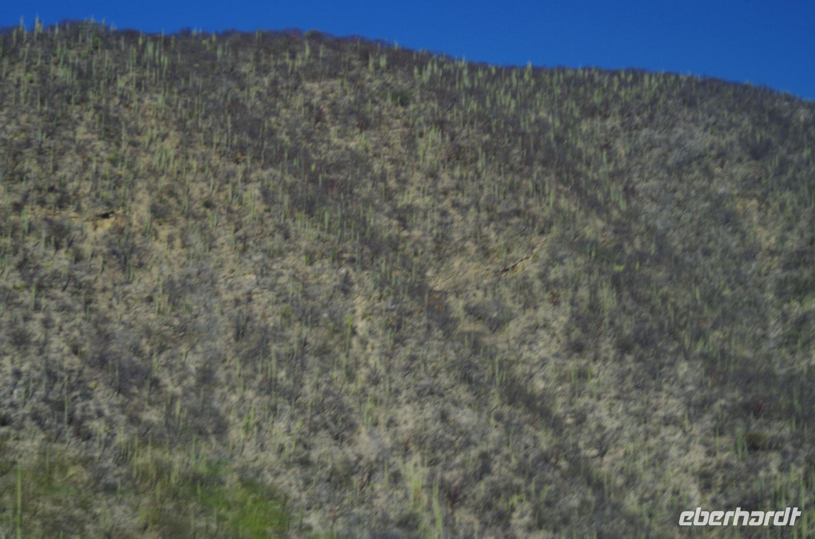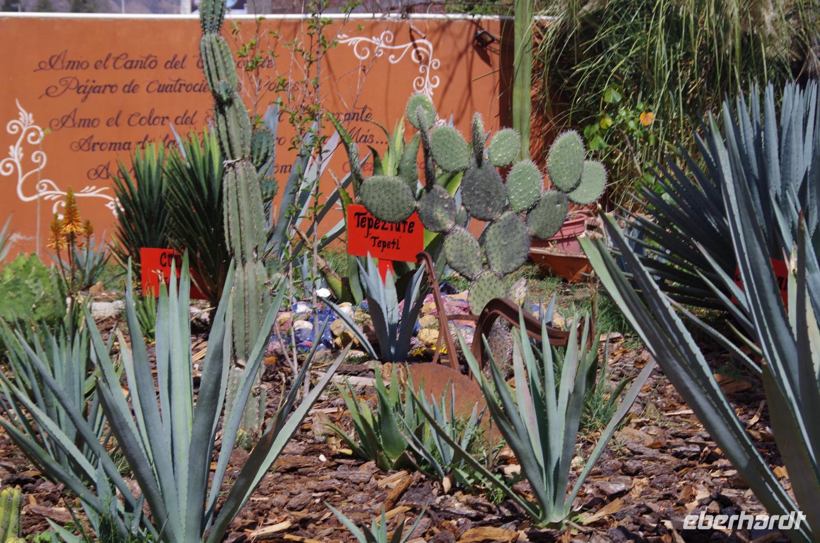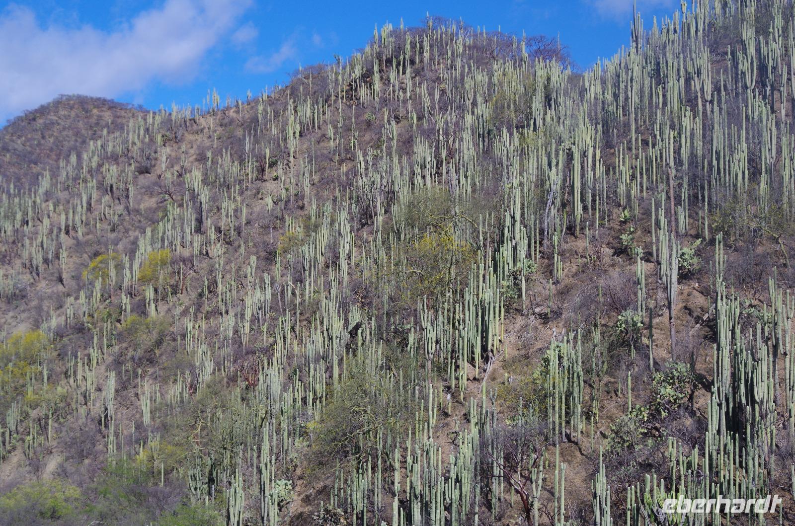 Nach einer Mittagpause stand dann unsere lange Fahrt bis nach Oaxca an. Diese führte uns durch das Gebiet der Korbflechter und später durch Tehuacán. Die Region ist bekannt für das Mineralwasser und für viele Fossilien. Während der Fahrt konnten wir auch unzählige, riesengroße Kakteen betrachten. An ganzen Kakteenwäldern fuhren wir vorbei.