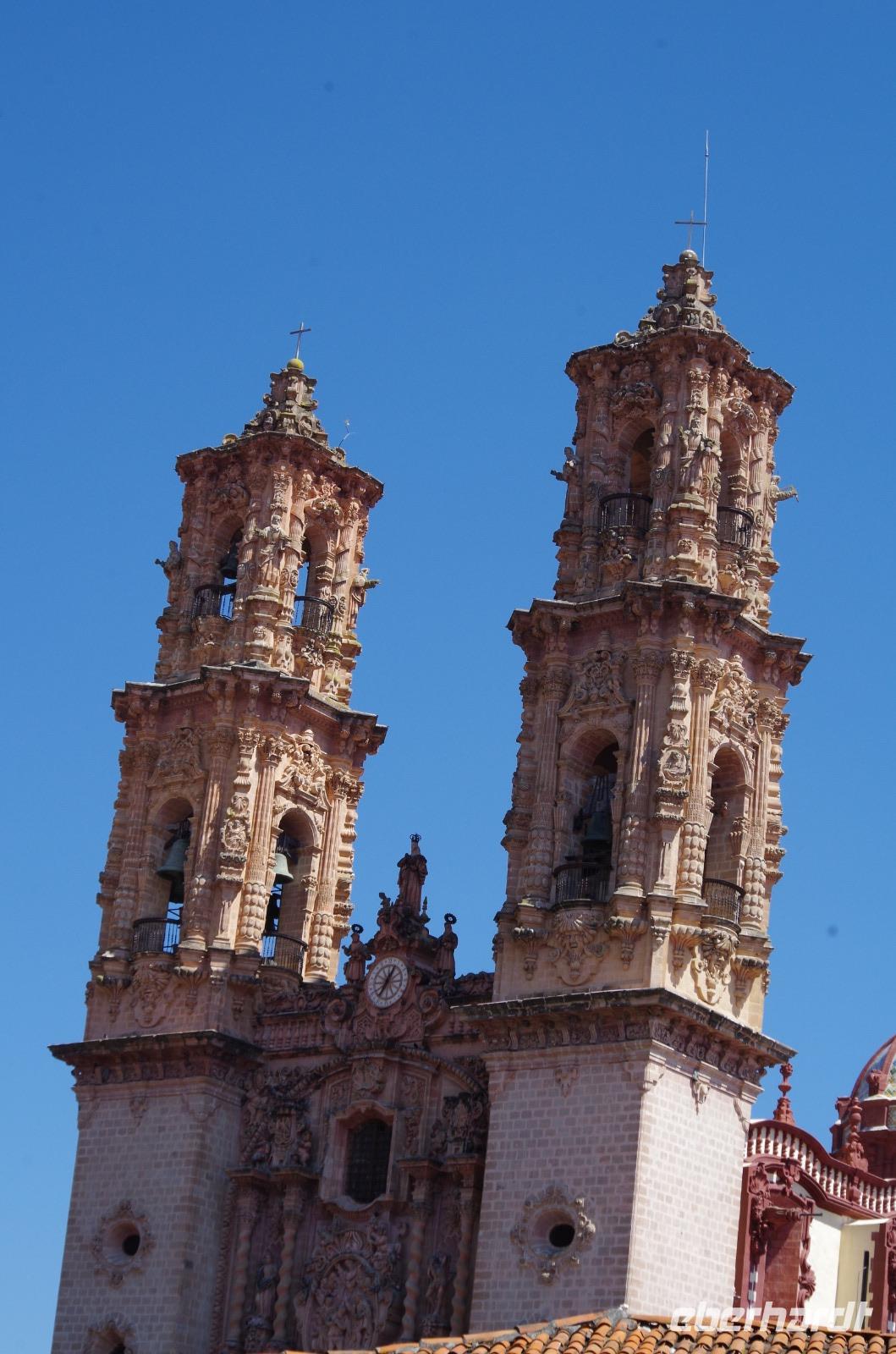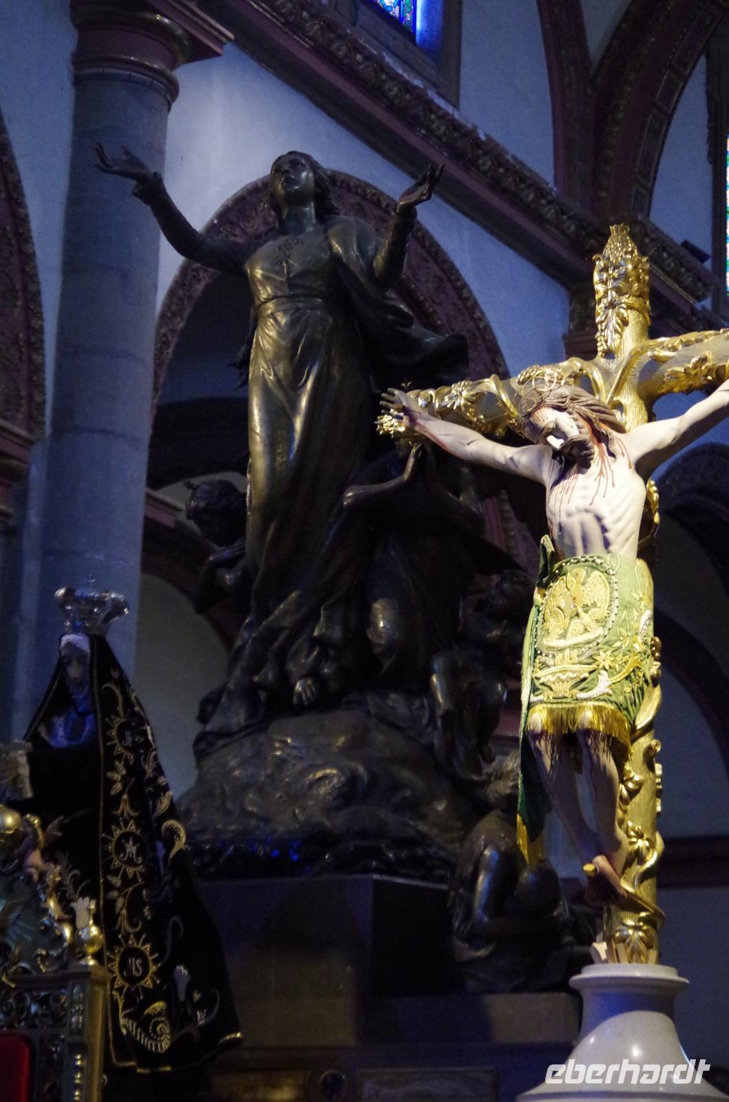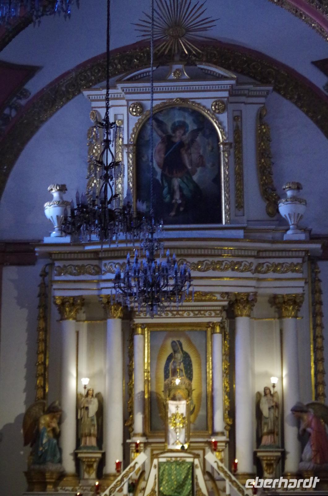 Zu Fuß spazierten wir zum Zócalo und lernten das Flair der wirklich schönen, kleinen Stadt kennen. In den vielen, kleinen Gassen blühten bunte Blumen. Wir besuchten dann noch die Kirche von Taxco. Interessant ist, dass in den Kirchen in Mexiko sehr häufig Joachim und Anna, die Eltern von Maria abgebildet werden, so auch in dieser Kirche. In den europäischen Kirchen ist das nicht zu finden.