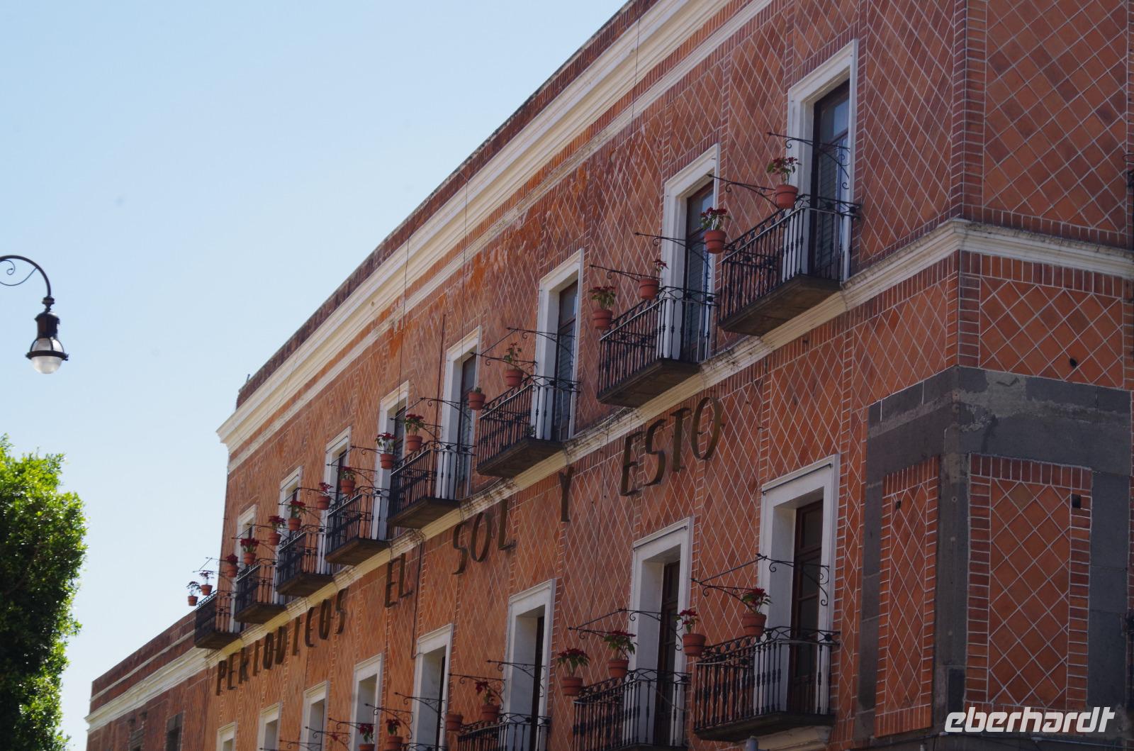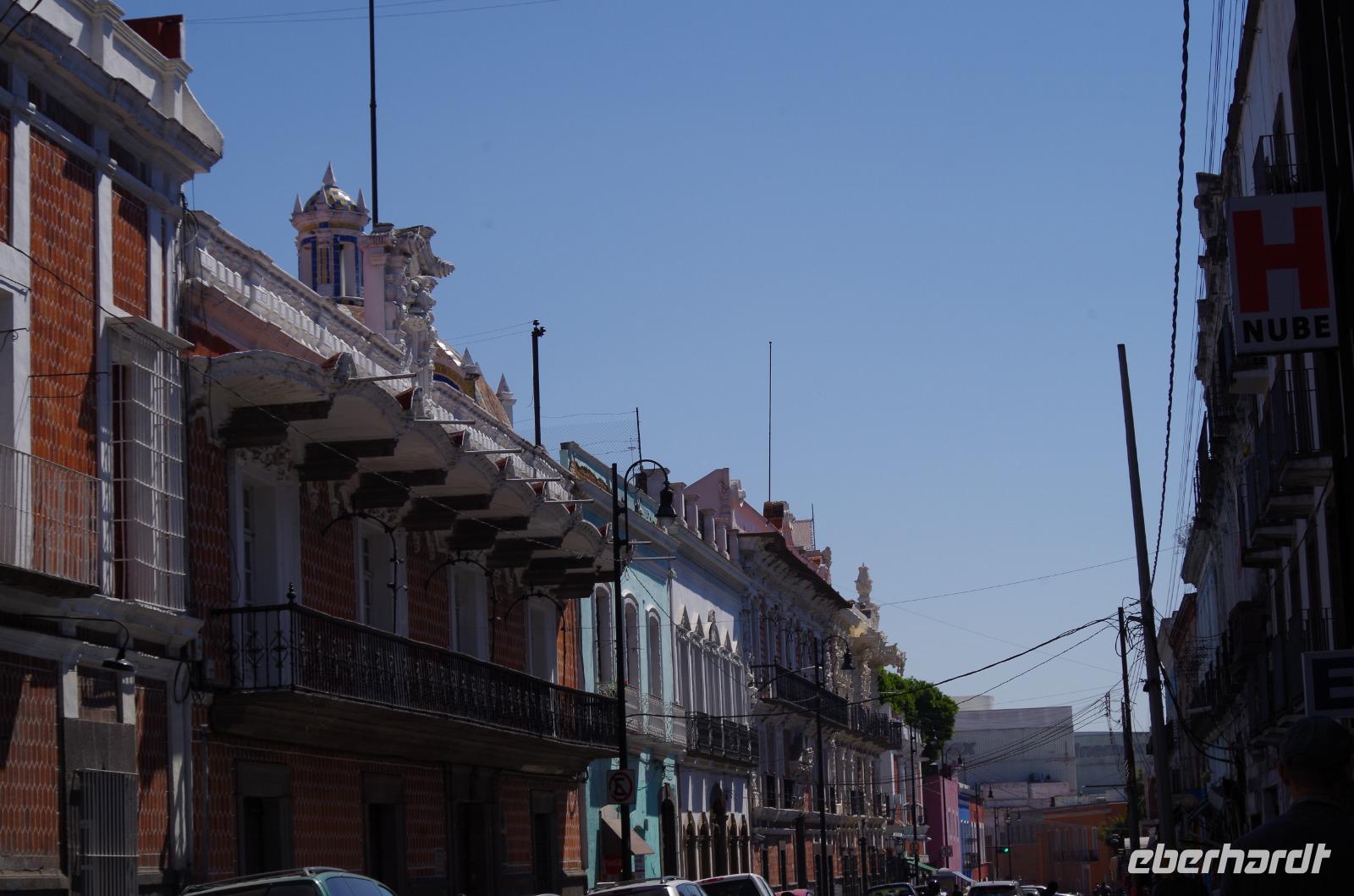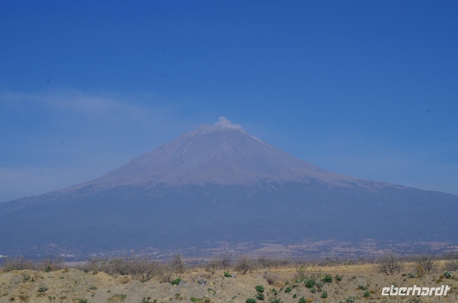 Am Morgen mussten wir schon wieder Abschied von der schönen Hacienda nehmen. Ein langer Fahrtag stand bevor. Zunächst fuhren wir nach Puebla. Auf dem Weg dahin zeigte sich der Popokatepetel von seiner besten Seite. Während unseres Fotostopps qualmte er sogar.
