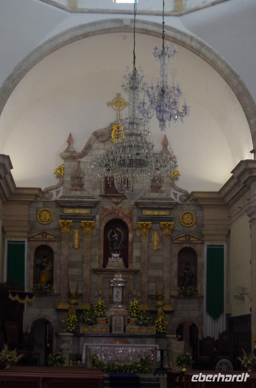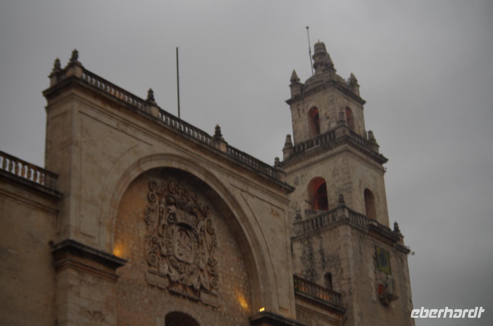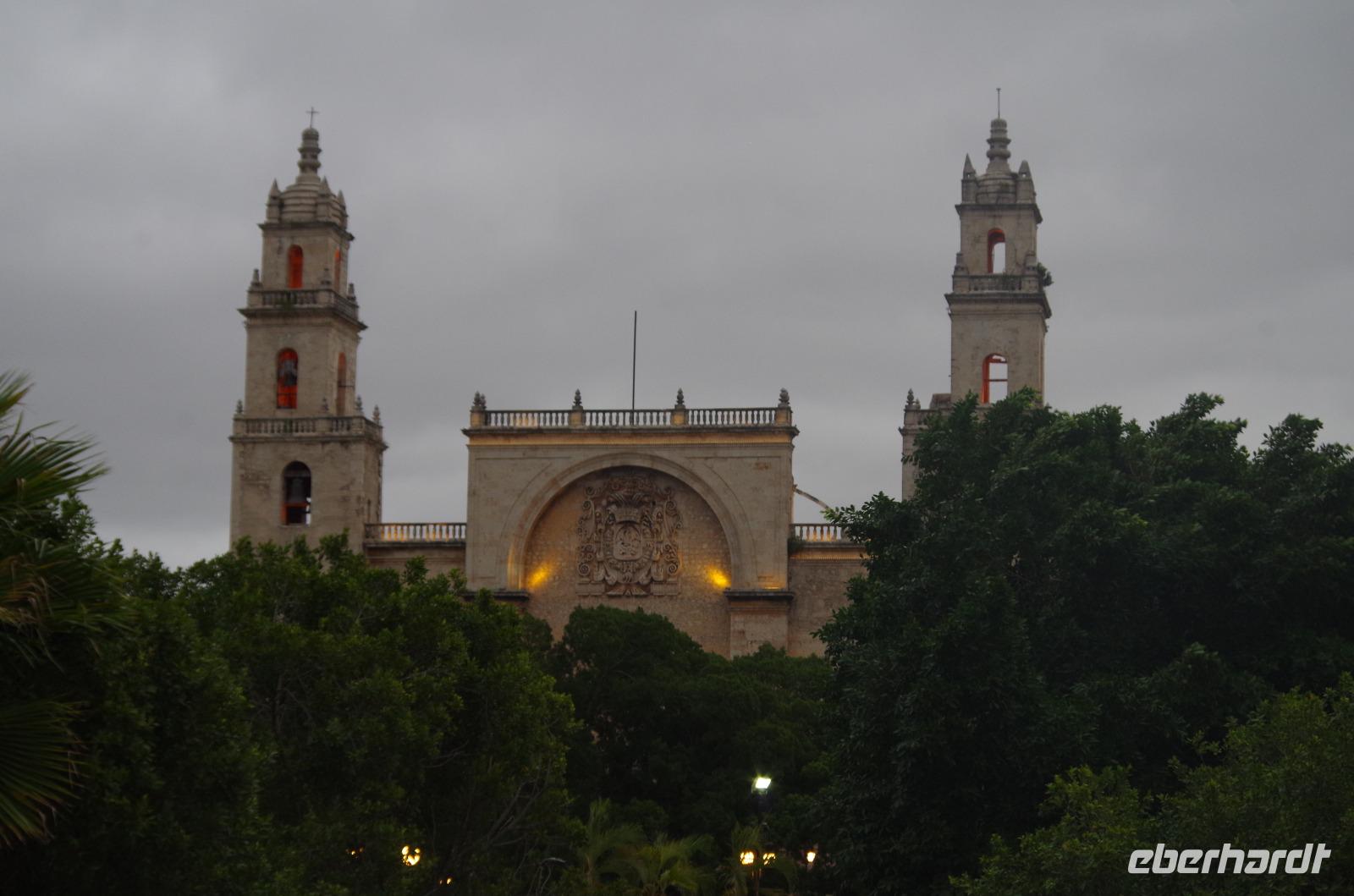 Pünktlich zum Ende unseres Rundganges war ein Ende mit der unglaublichen Hitze in Sicht, es fing ein wenig an zu regnen. Nach einer Mittagspause machten wir uns auch auf den Weg nach Mérida, der Hauptstadt des Bundesstaates Yucatán. Wir unternahmen noch einen kleinen Stadtrundgang und betrachteten beispielsweise das Stadttheater, das Rathaus, den Regierungsplast und den Zócalo. Die dortige Kathedrale San Idefonso ist im Inneren relativ schlicht gehalten.