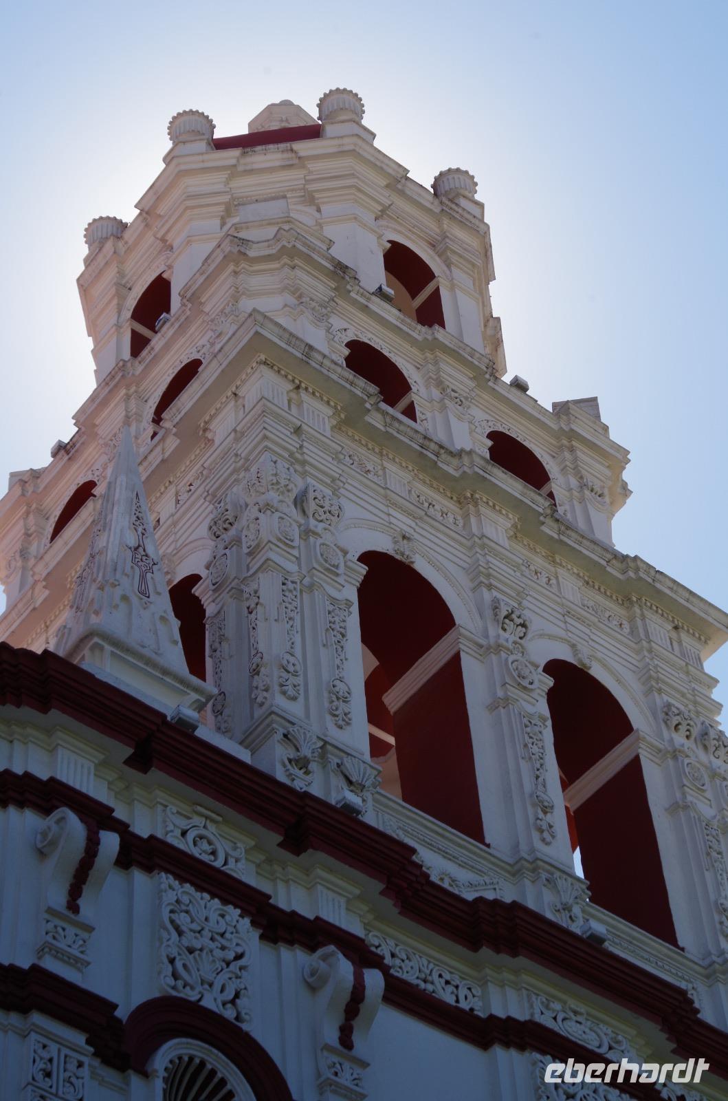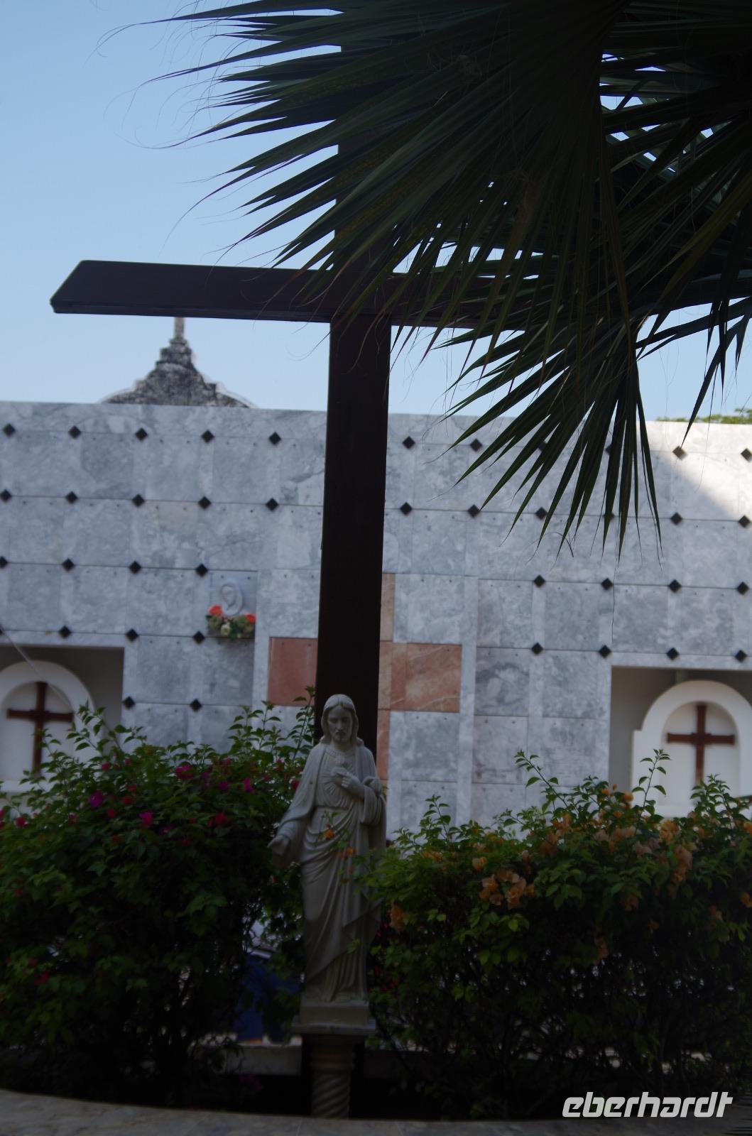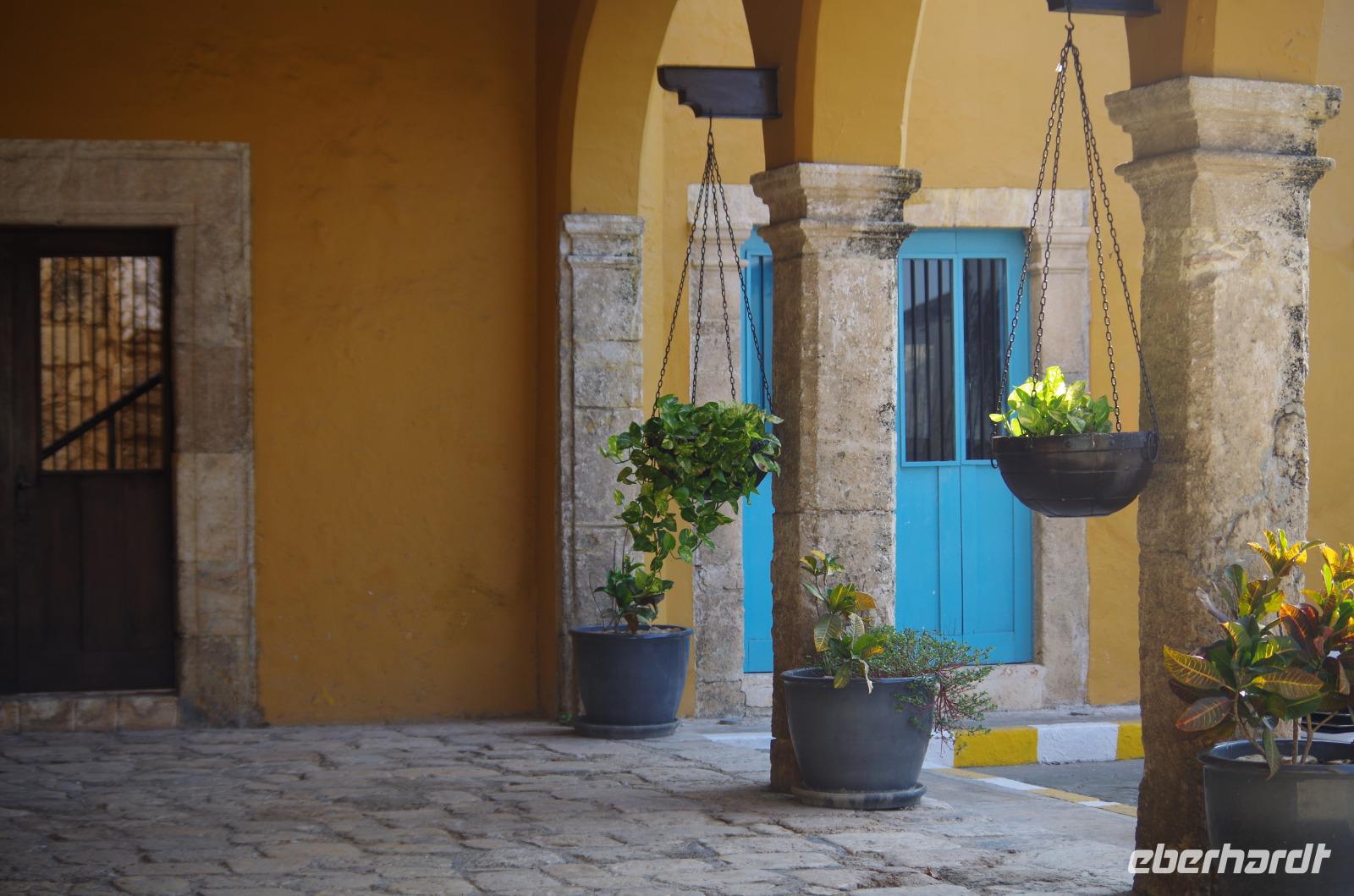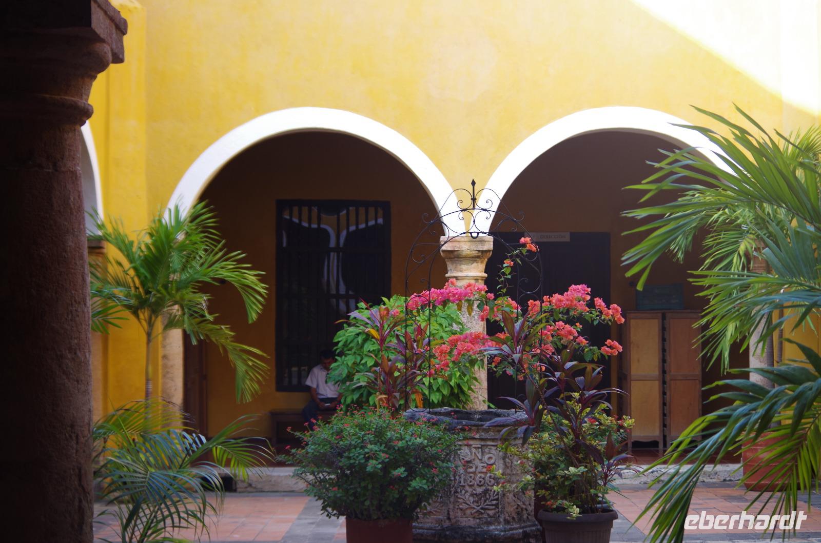 Pünktlich zum Ende unseres Rundganges war ein Ende mit der unglaublichen Hitze in Sicht, es fing ein wenig an zu regnen. Nach einer Mittagspause machten wir uns auch auf den Weg nach Mérida, der Hauptstadt des Bundesstaates Yucatán. Wir unternahmen noch einen kleinen Stadtrundgang und betrachteten beispielsweise das Stadttheater, das Rathaus, den Regierungsplast und den Zócalo. Die dortige Kathedrale San Idefonso ist im Inneren relativ schlicht gehalten.