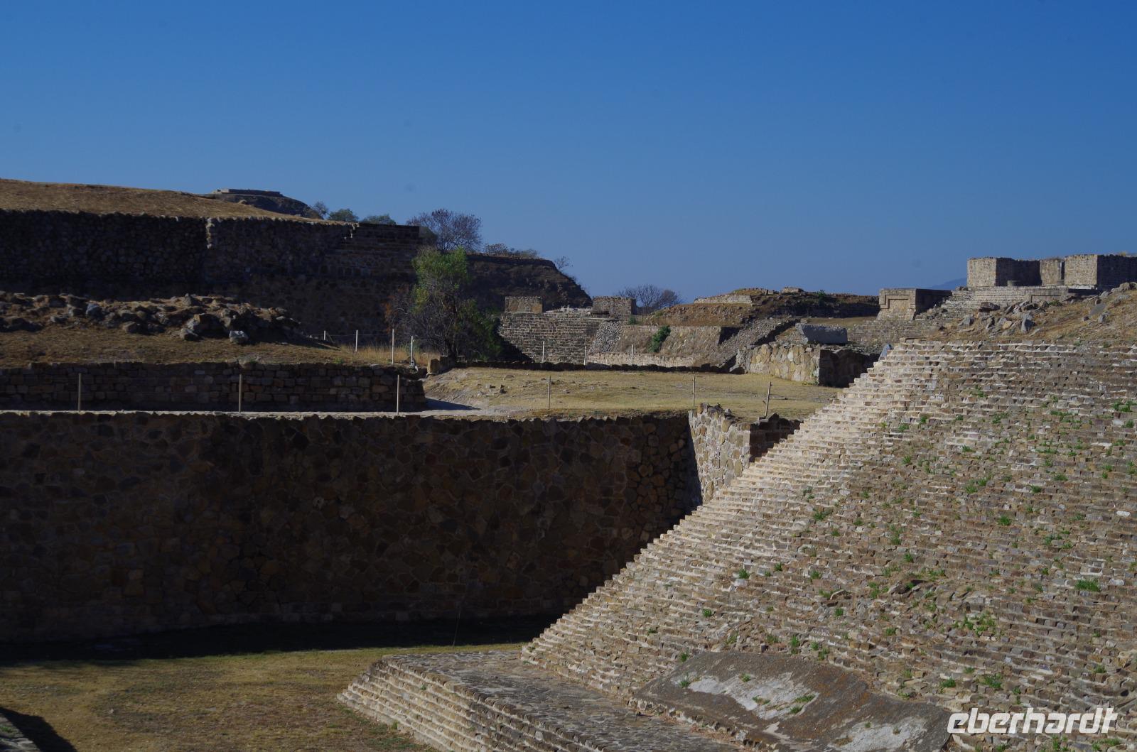 Heute starteten wir zu der unweit von unserem Hotel gelegenen Ausgrabungsstätte Monte Alban. Sie wurde bereits im Jahr 500 vor Christus gegründet und erreichte dann ihre Blütezeit unter der Herrschaft der Zapotheken von 250 bis 750 nach Christus. Es lebten über 250.000 Menschen in der Anlage. Dann wurde Monte Alban aus unerklärlichen Gründen verlassen und die Mixteken nutzen den Ort für die Totenbestattung.