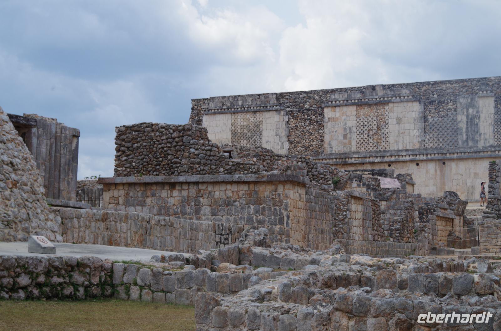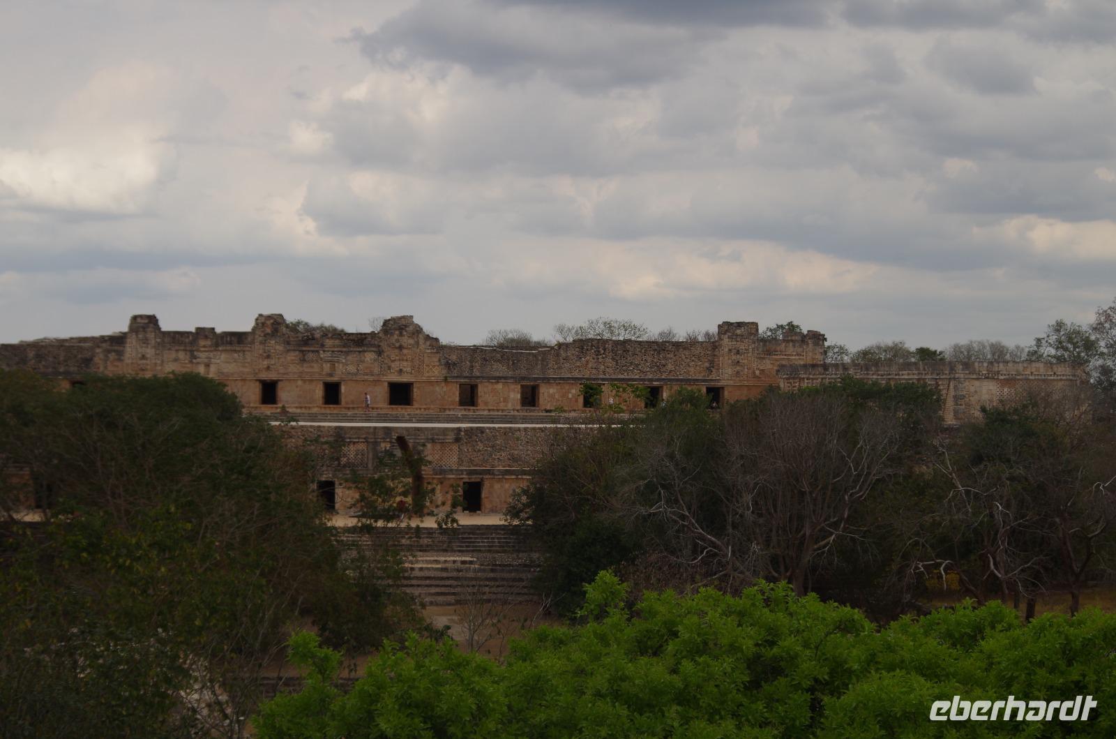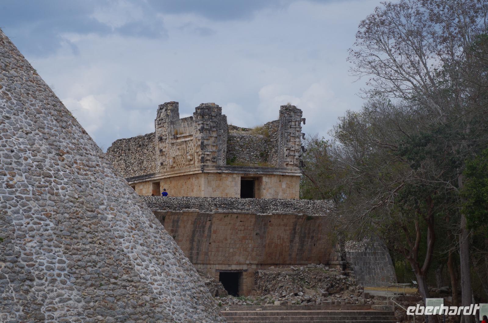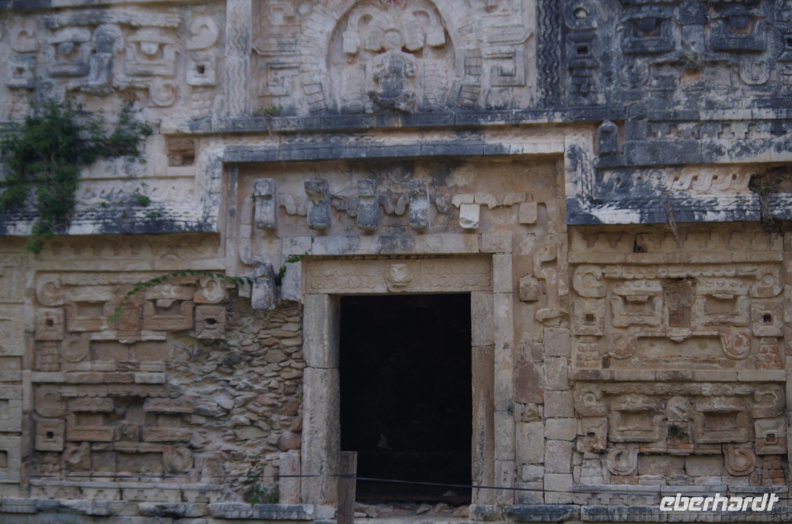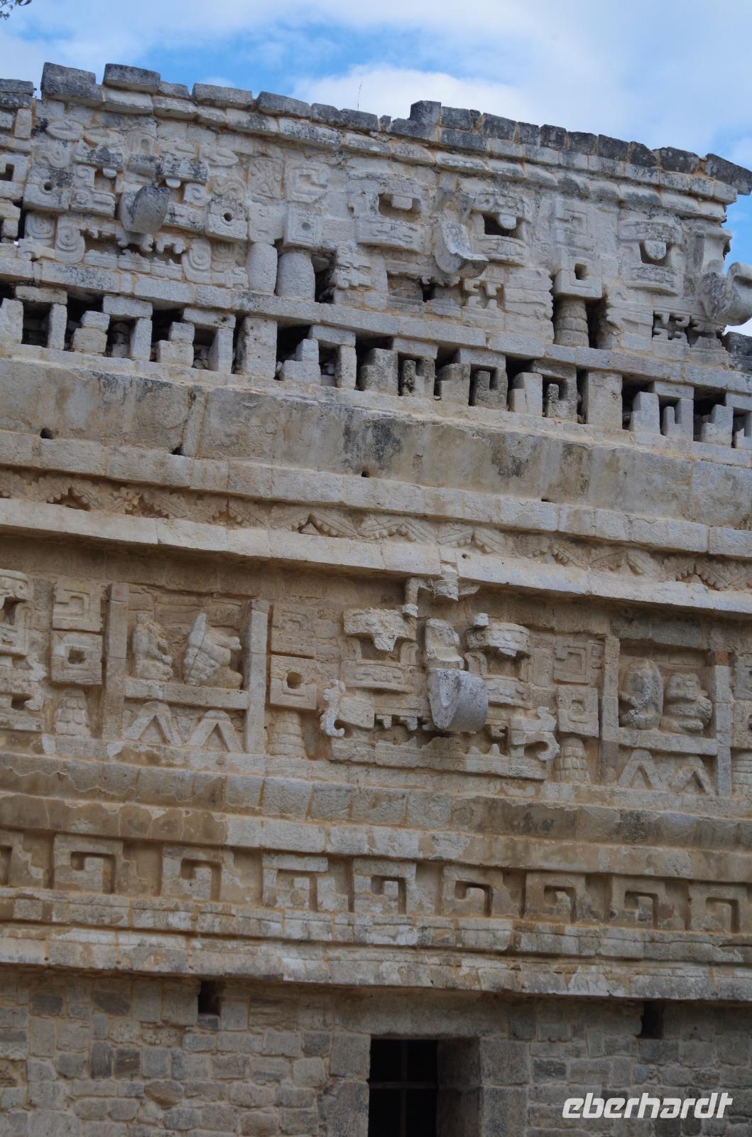 Wir bestiegen dann den Palast, wo wir viele Fenster in Form des Buchstabens T sehen konnten. Fenster in Gebäuden waren in der mesoamerikanischen Zeit sehr ungewöhnlich. Von hier aus konnten wir auch den Turm des Palastes mit dem Altar sehen.