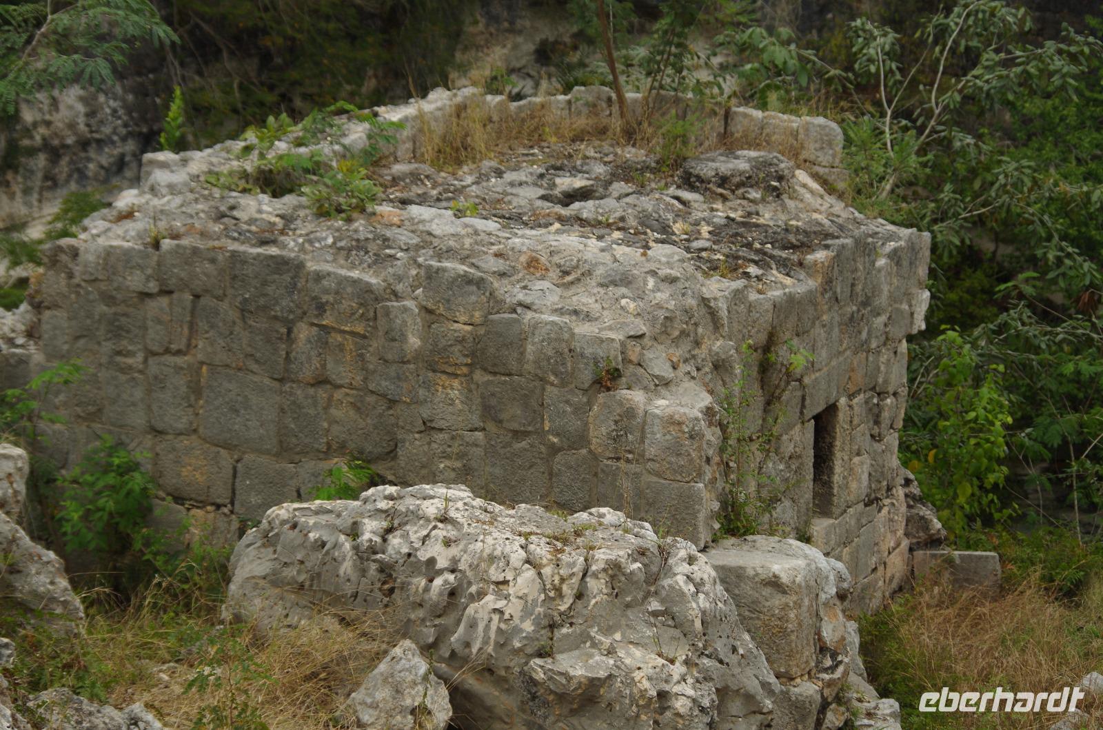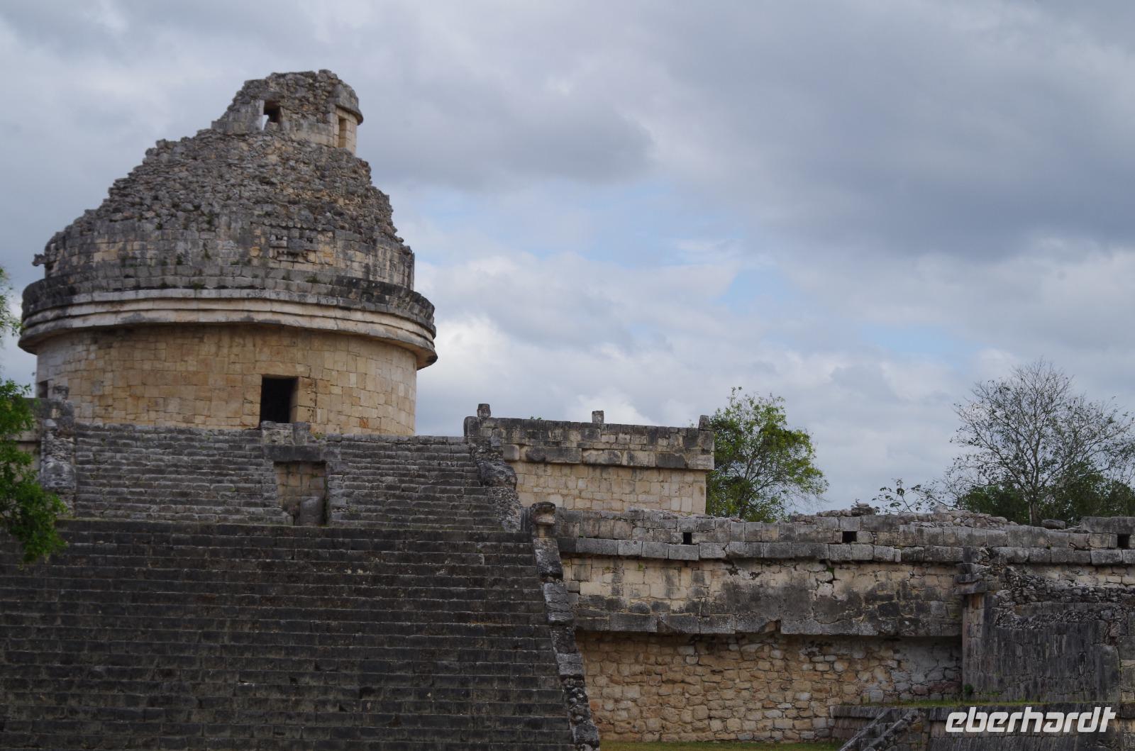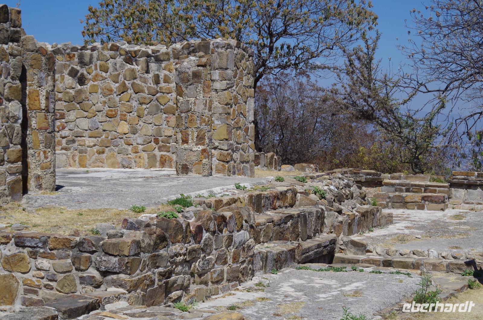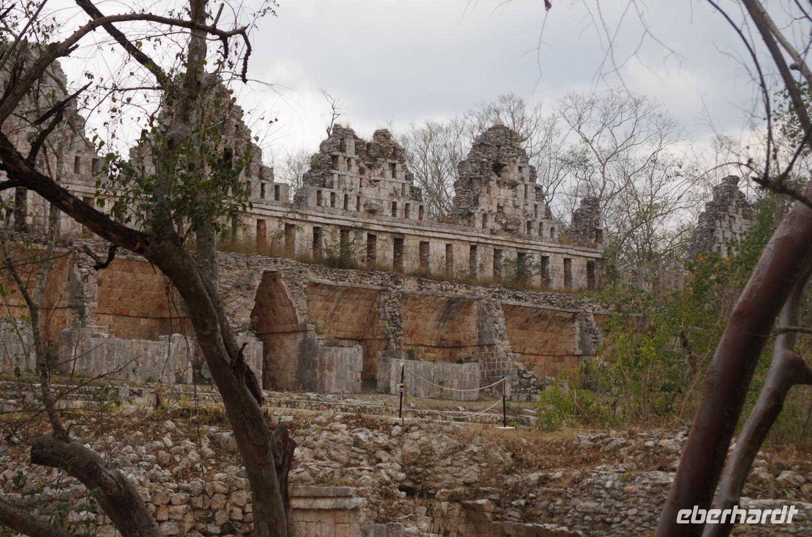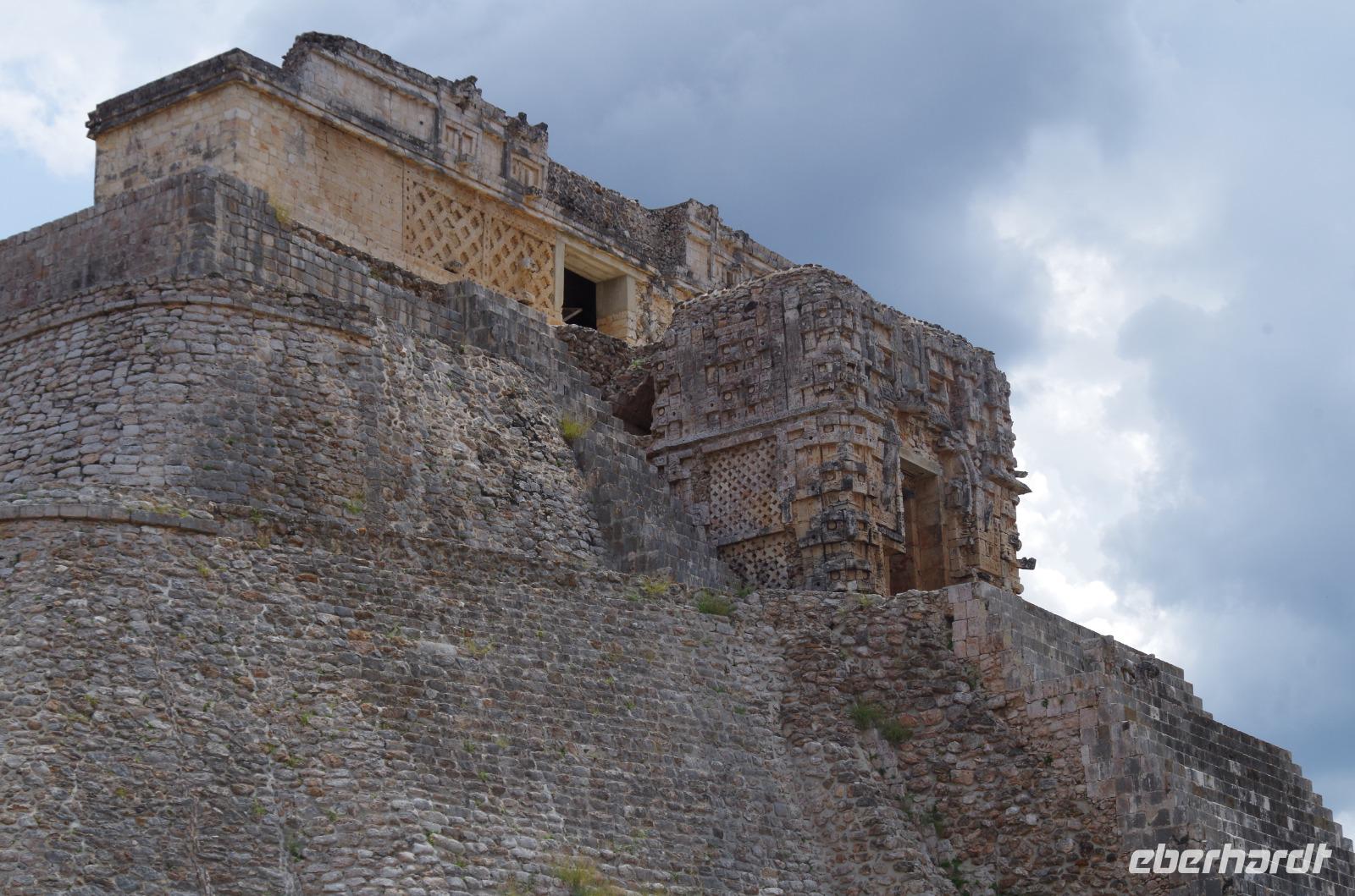 Wir bestiegen dann den Palast, wo wir viele Fenster in Form des Buchstabens T sehen konnten. Fenster in Gebäuden waren in der mesoamerikanischen Zeit sehr ungewöhnlich. Von hier aus konnten wir auch den Turm des Palastes mit dem Altar sehen.